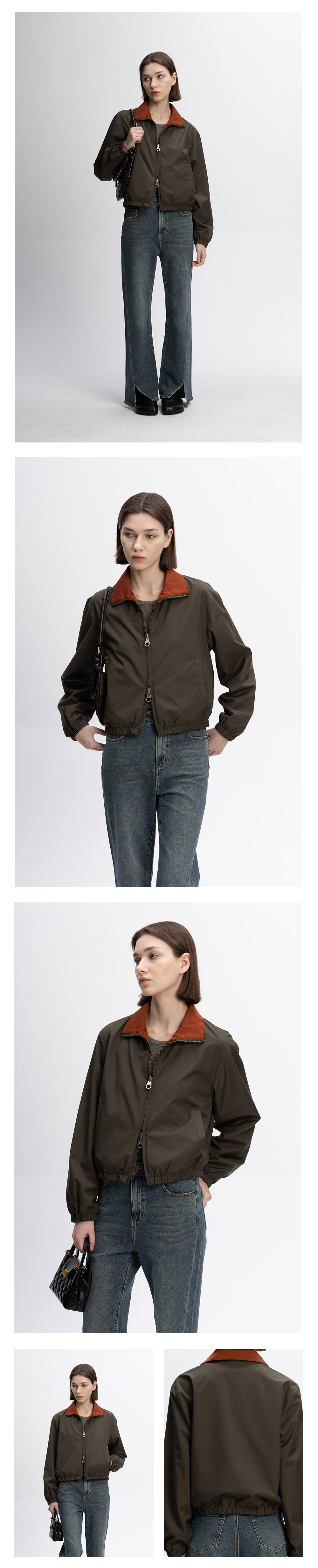 COCO ZONE&刘一一双面穿立领秋季双短款百搭夹克长袖外套23C29659