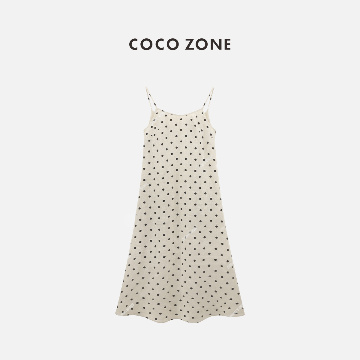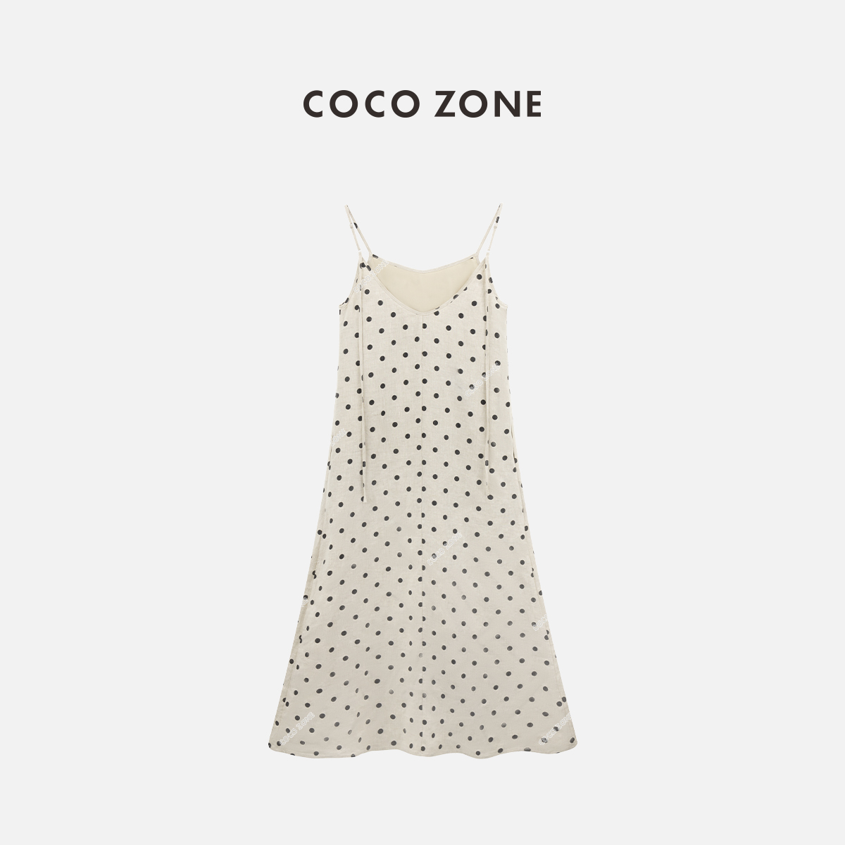 COCO ZONE“一一自留”复古法式波点撞色吊带连衣裙女显瘦气质长裙CC1B0939