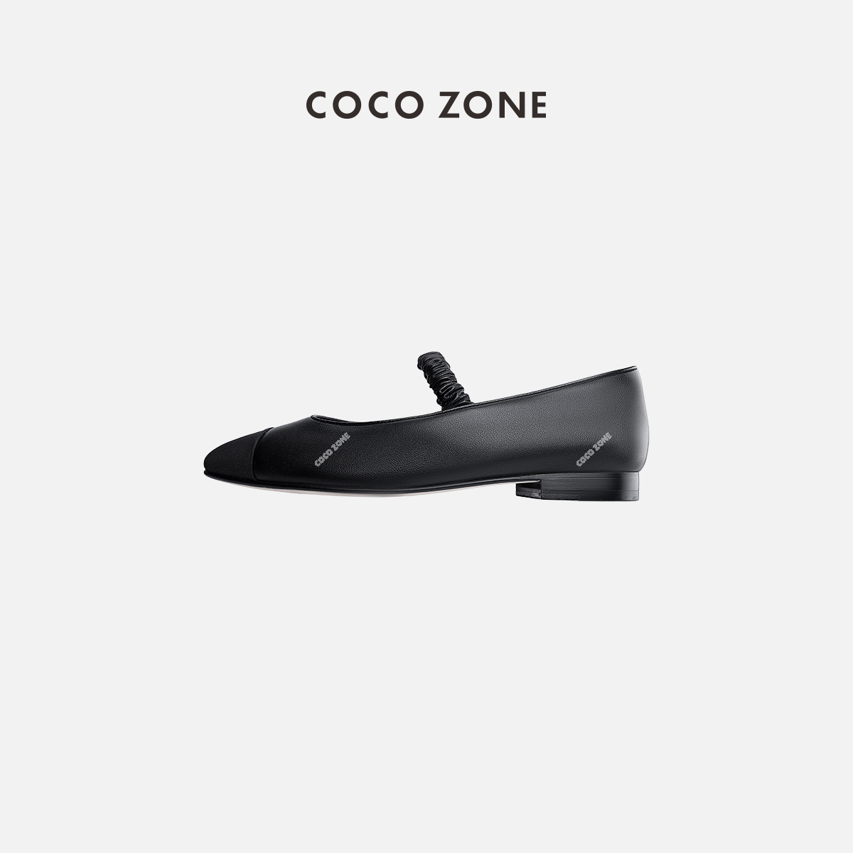 COCO ZONE小香风百搭一字带平底齐浅口芭蕾单鞋24C60007