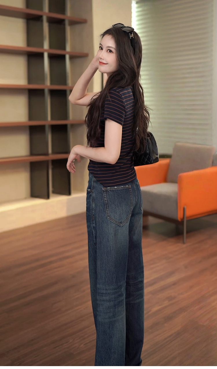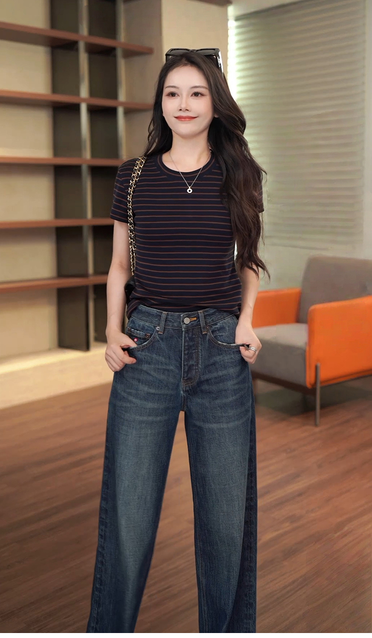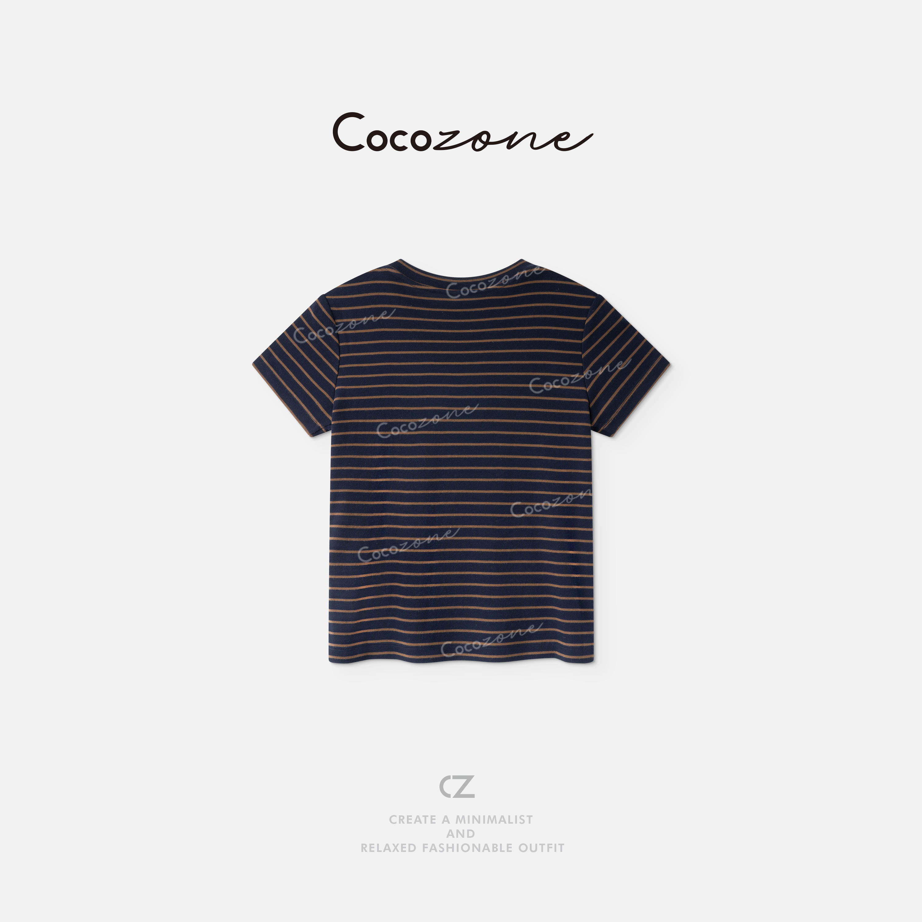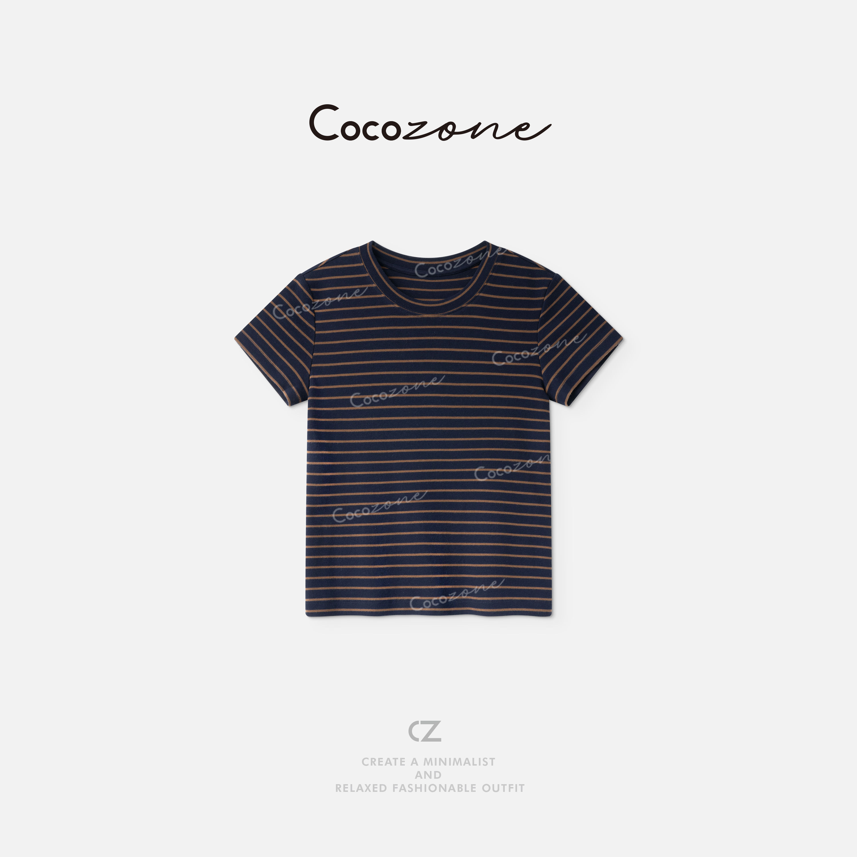 COCO ZONE 刘一一 【莱赛尔混纺】小圆领经典撞色条纹T恤 CD2A1659