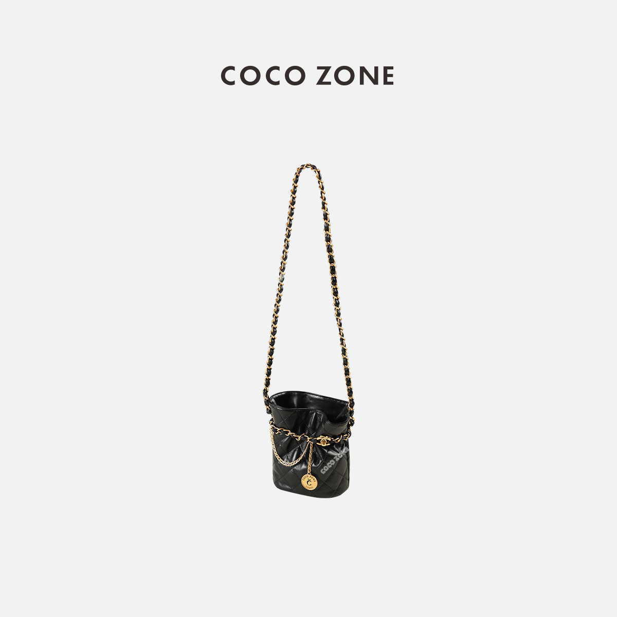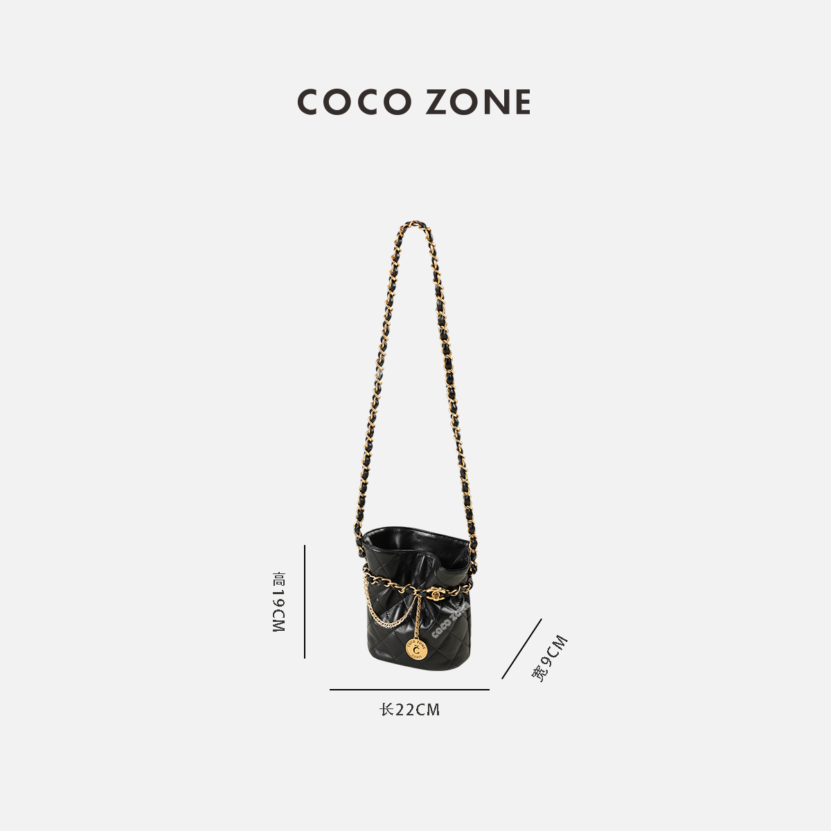 刘一一&COCO ZONE“真牛皮”斜挎包小香风设计链条水桶包23C29536