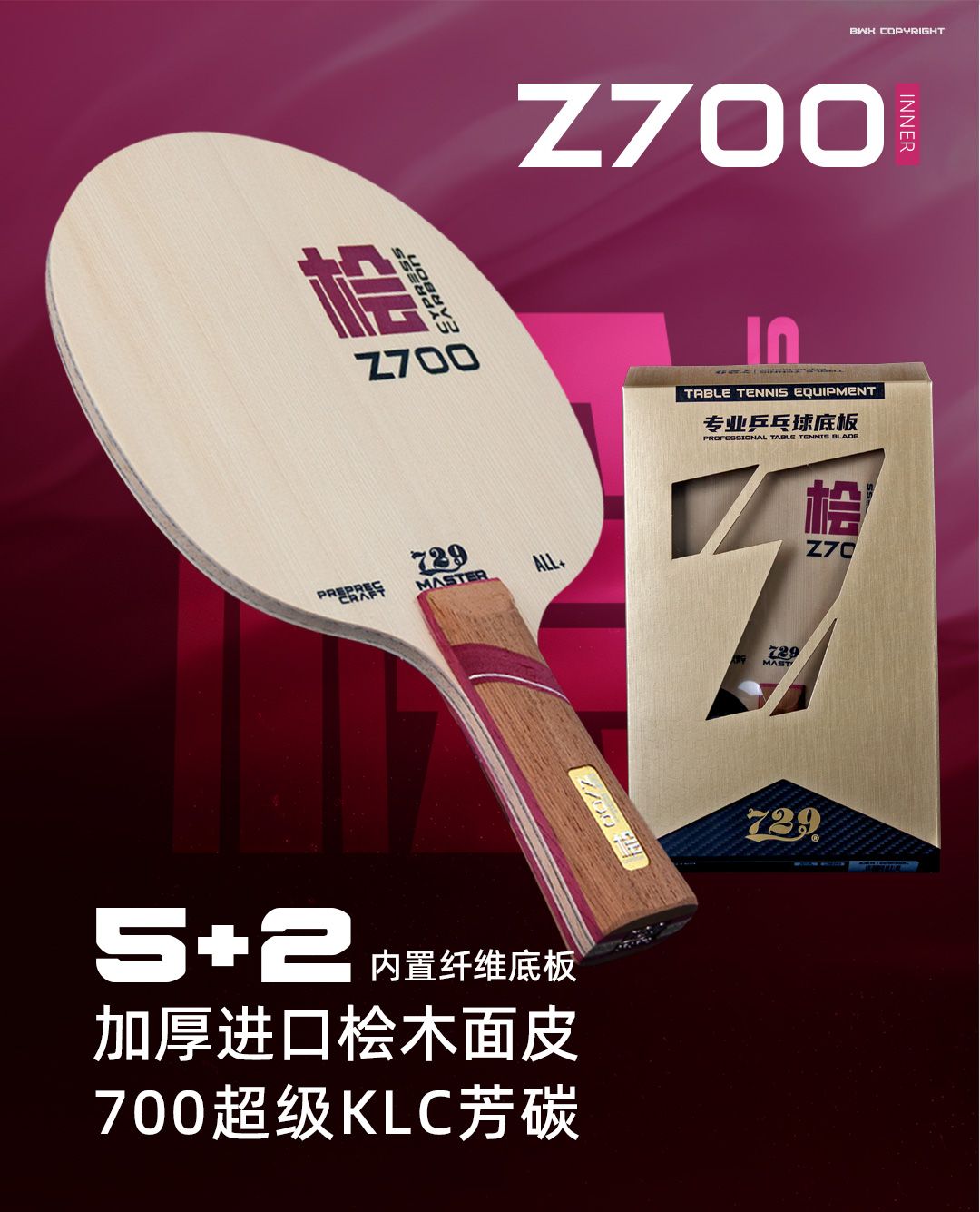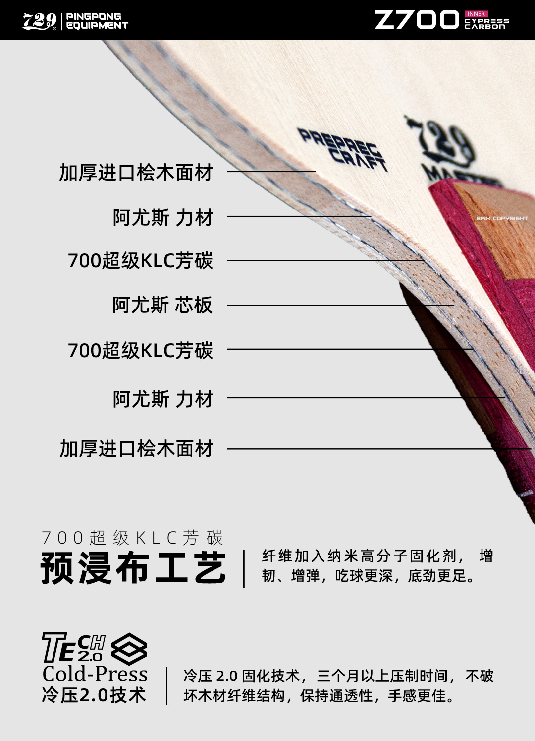 [新品首发] 友谊729 Z700桧碳内置乒乓球底板 5+2超级kLC纤维底板