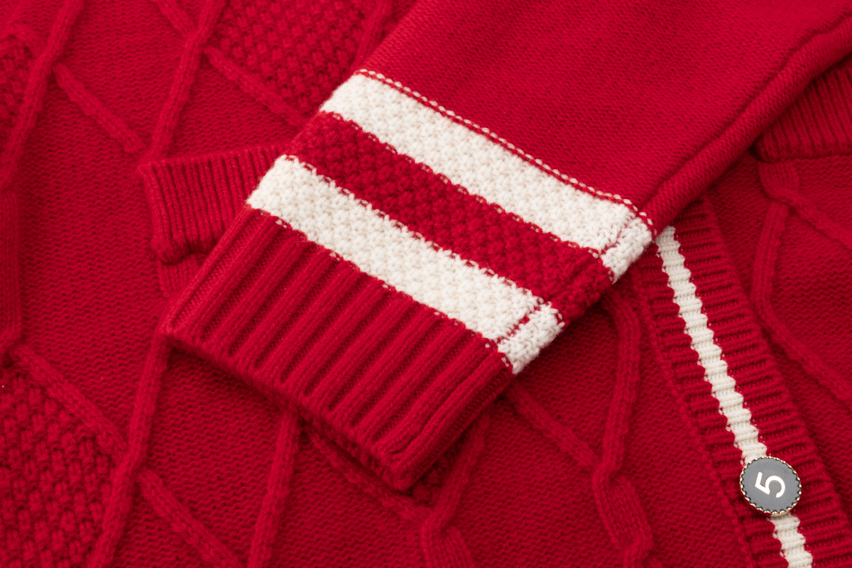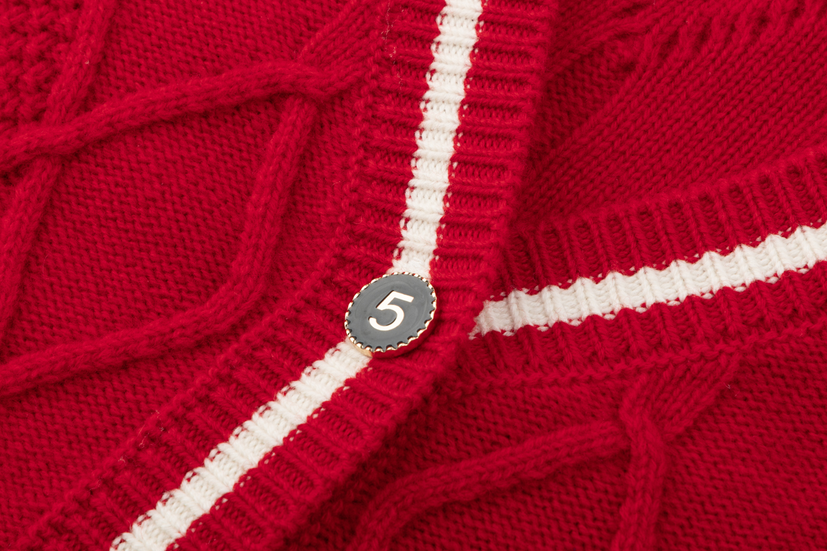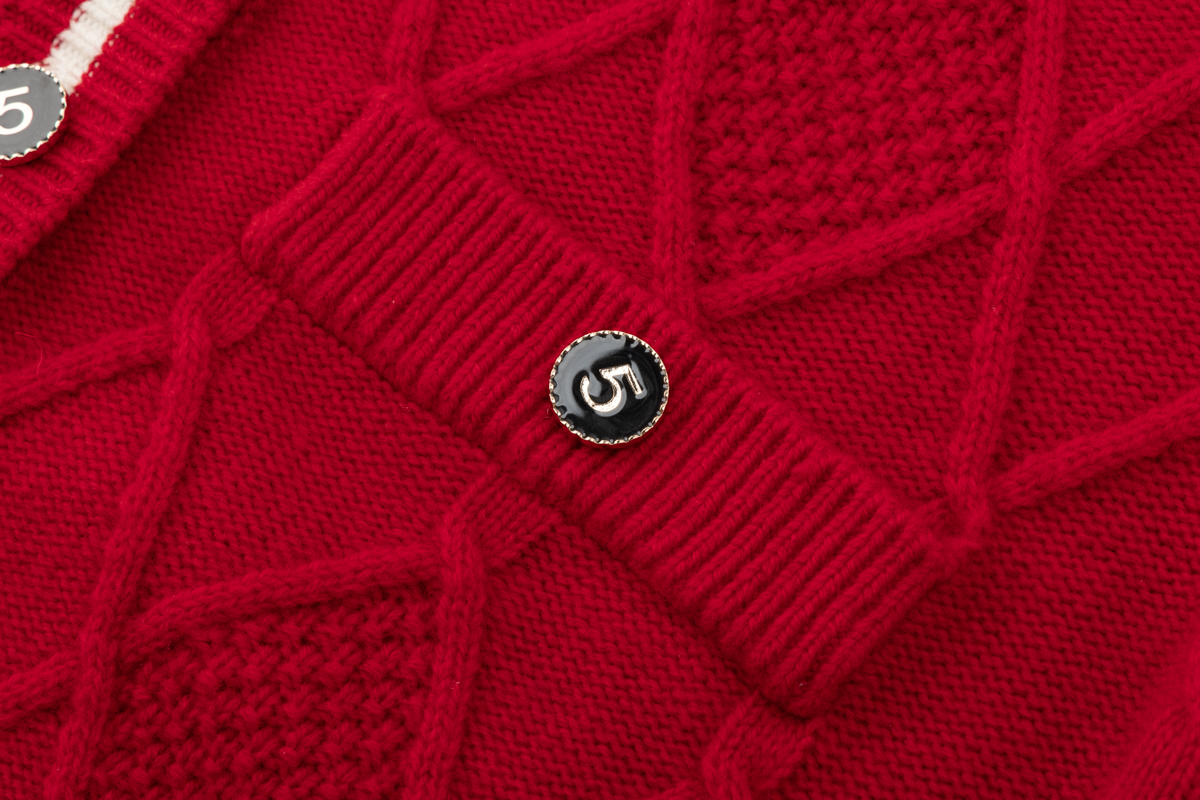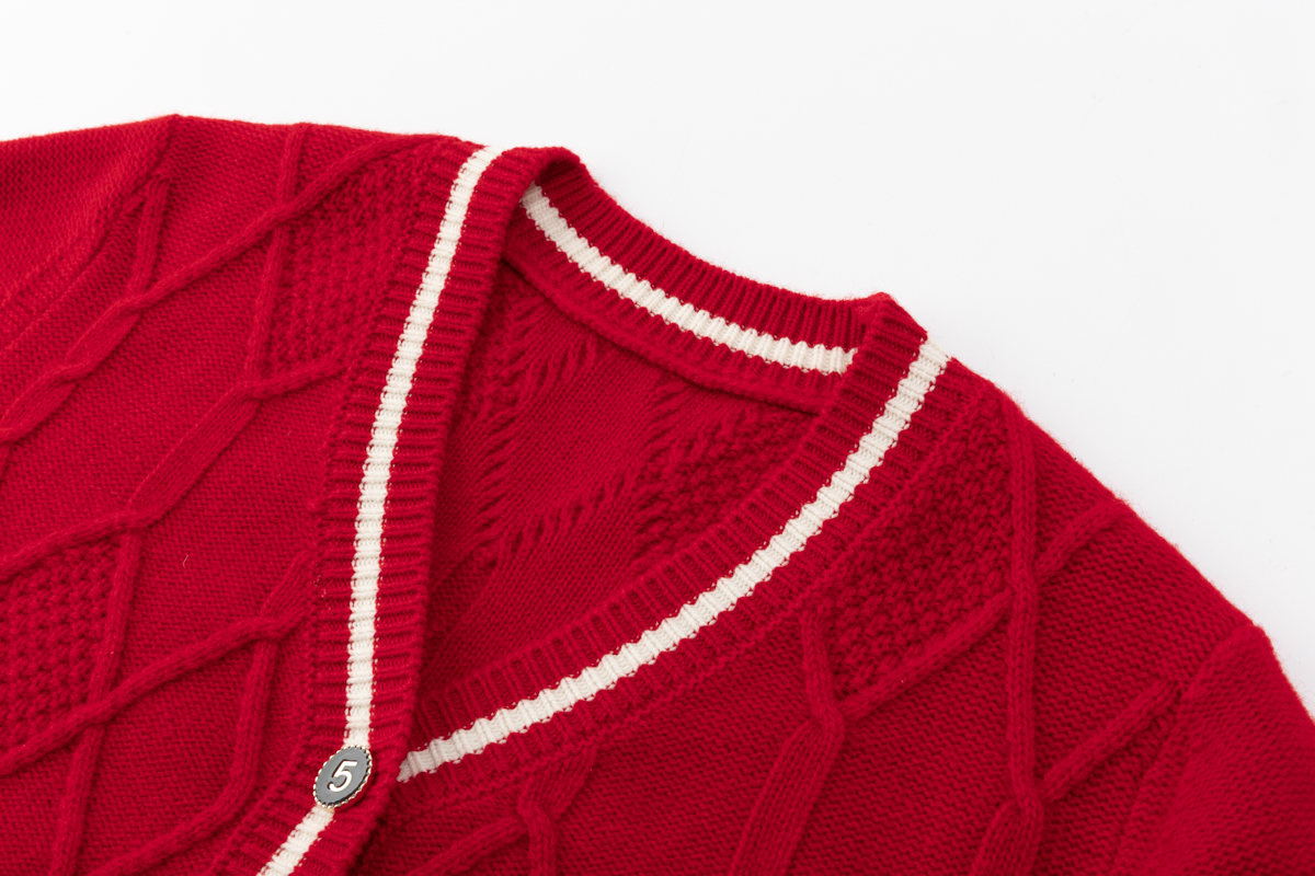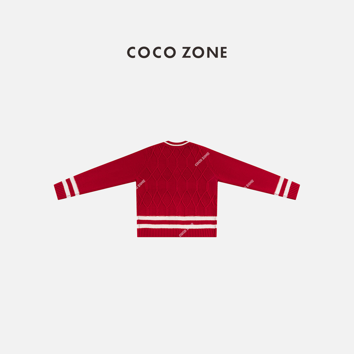 COCO ZONE 冬季慵懒风拼色菱格V领排扣针织开衫CC2D3315