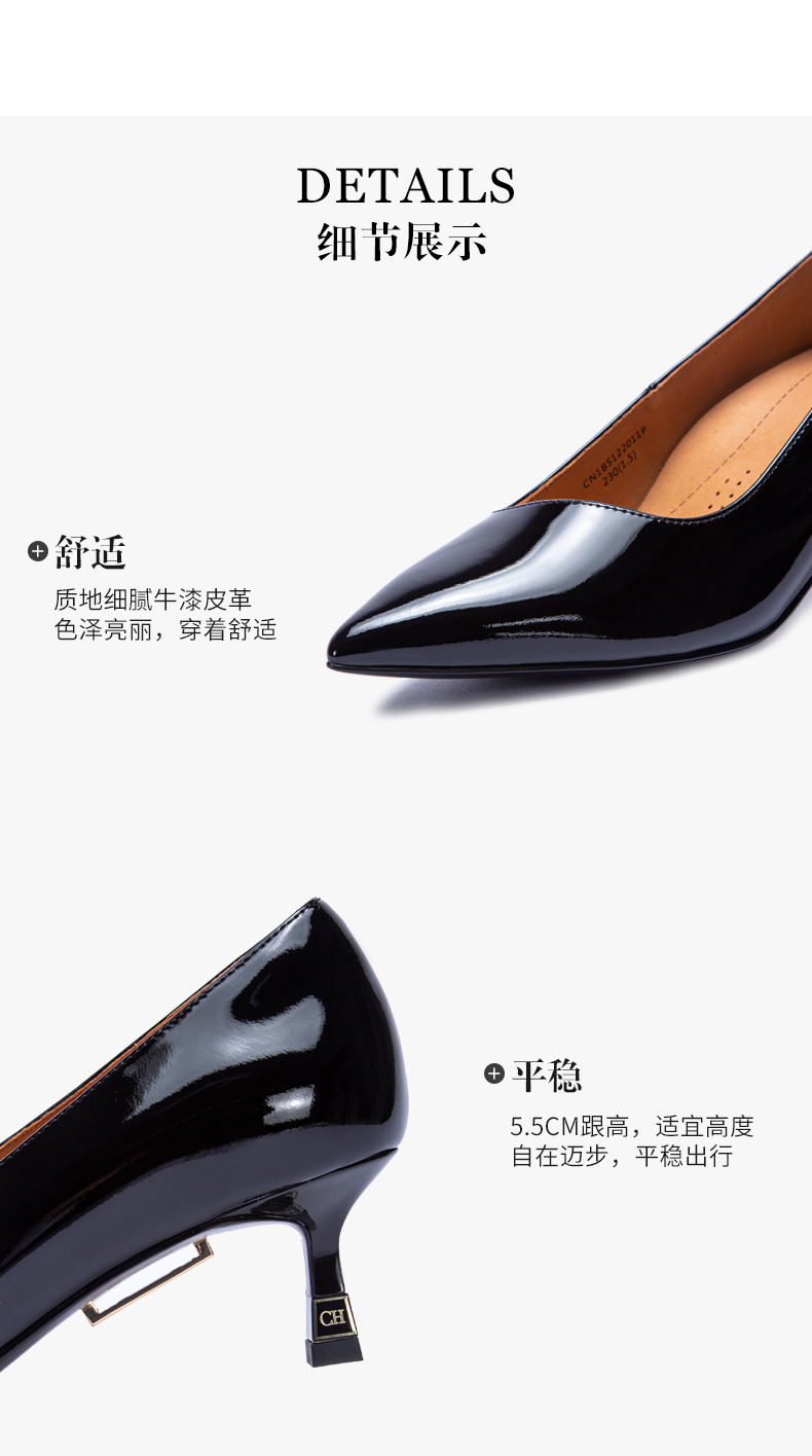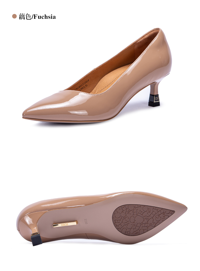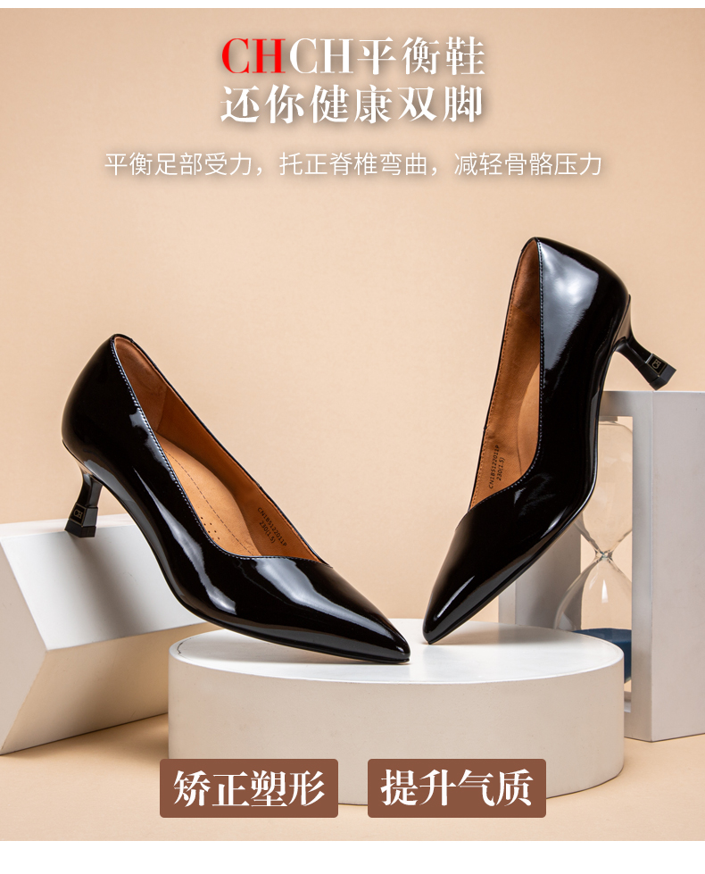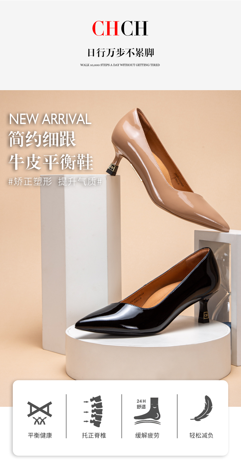 CHCH平衡鞋牛漆皮高跟时尚浅口女鞋舒适羊皮内里CM1B5311