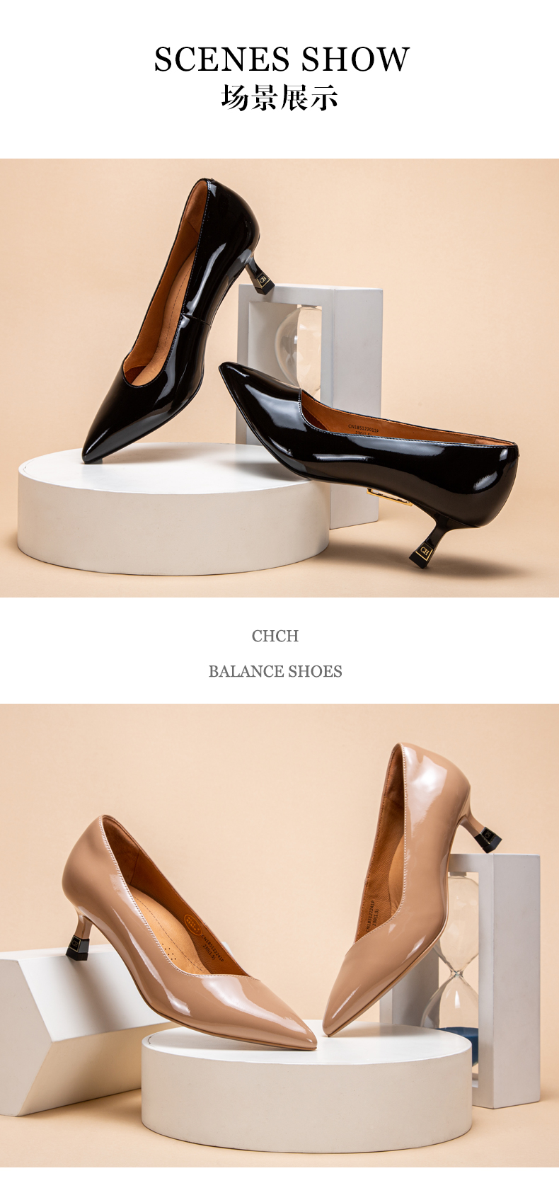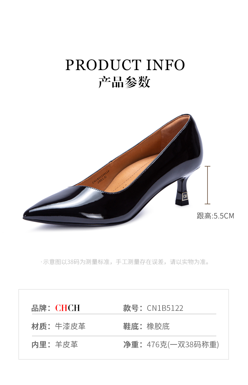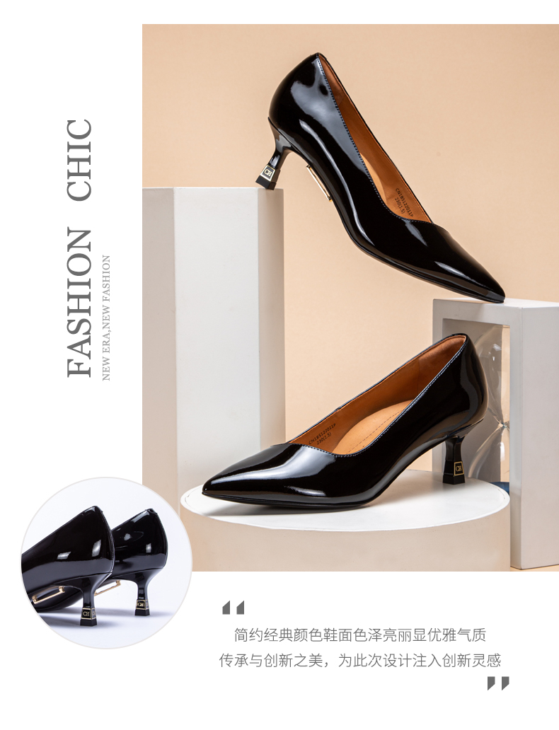 CHCH平衡鞋牛漆皮高跟时尚浅口女鞋舒适羊皮内里CM1B5311