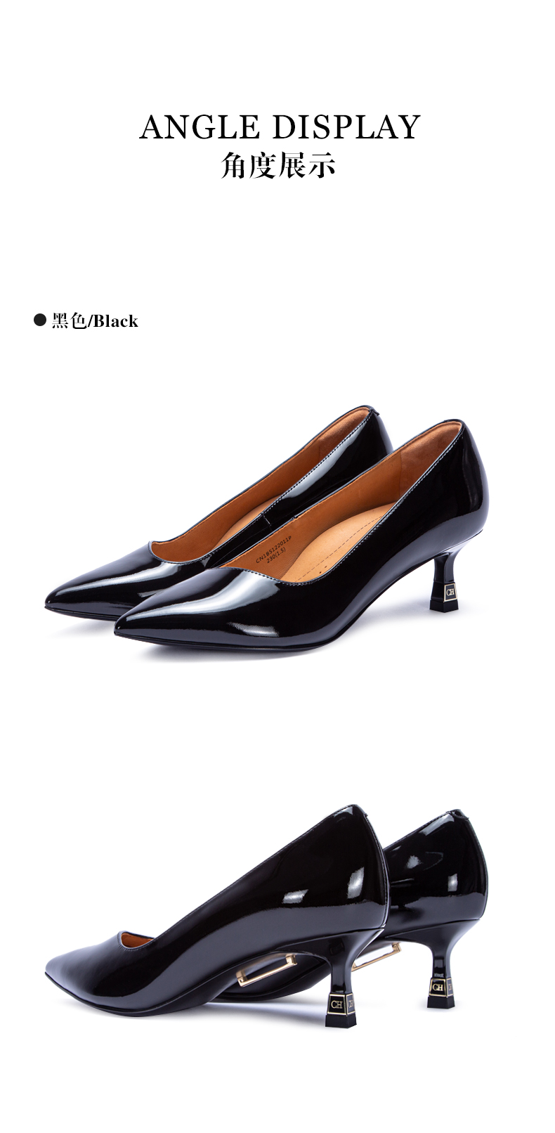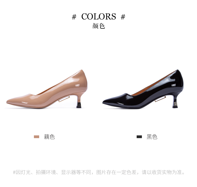 CHCH祈祈拼色设计感气质时尚反皮牛皮面料细跟尖头女士单鞋CM1B5691