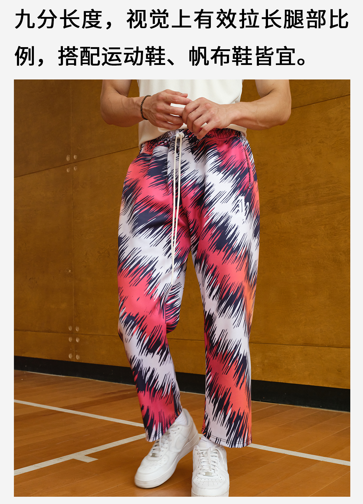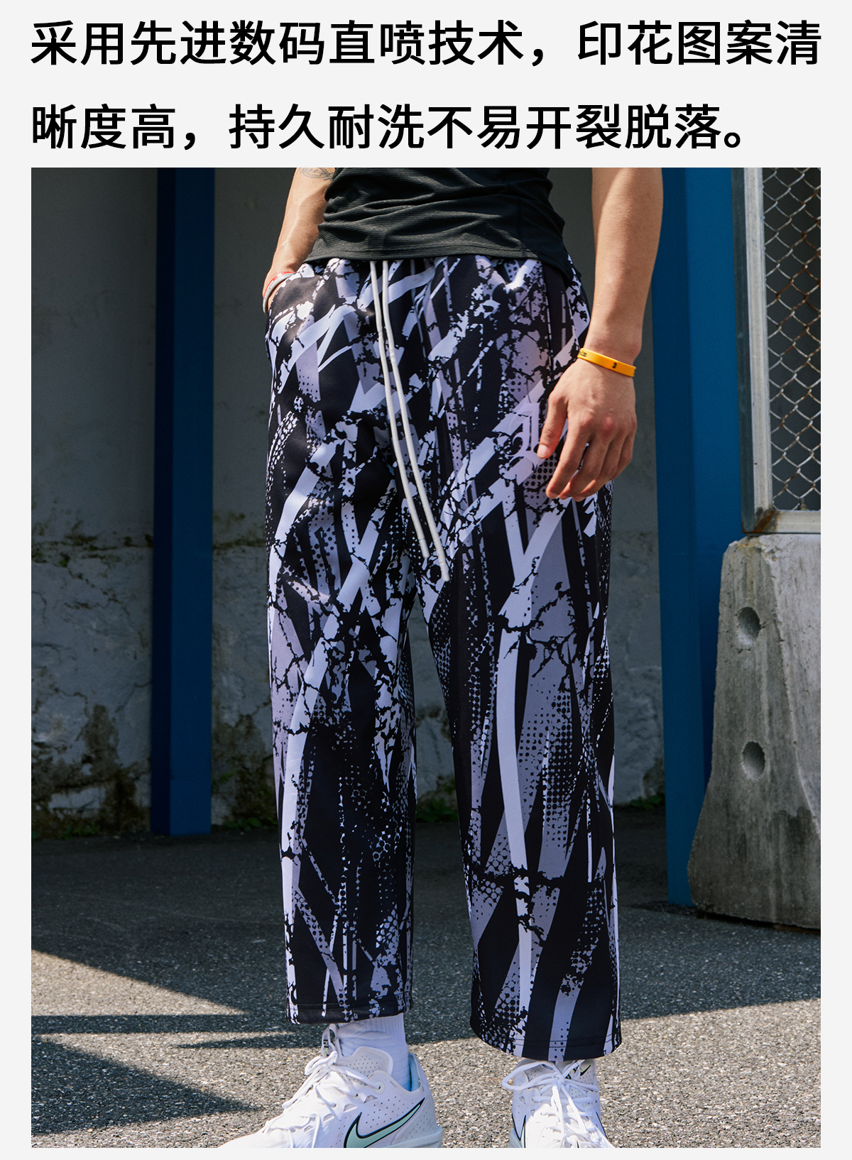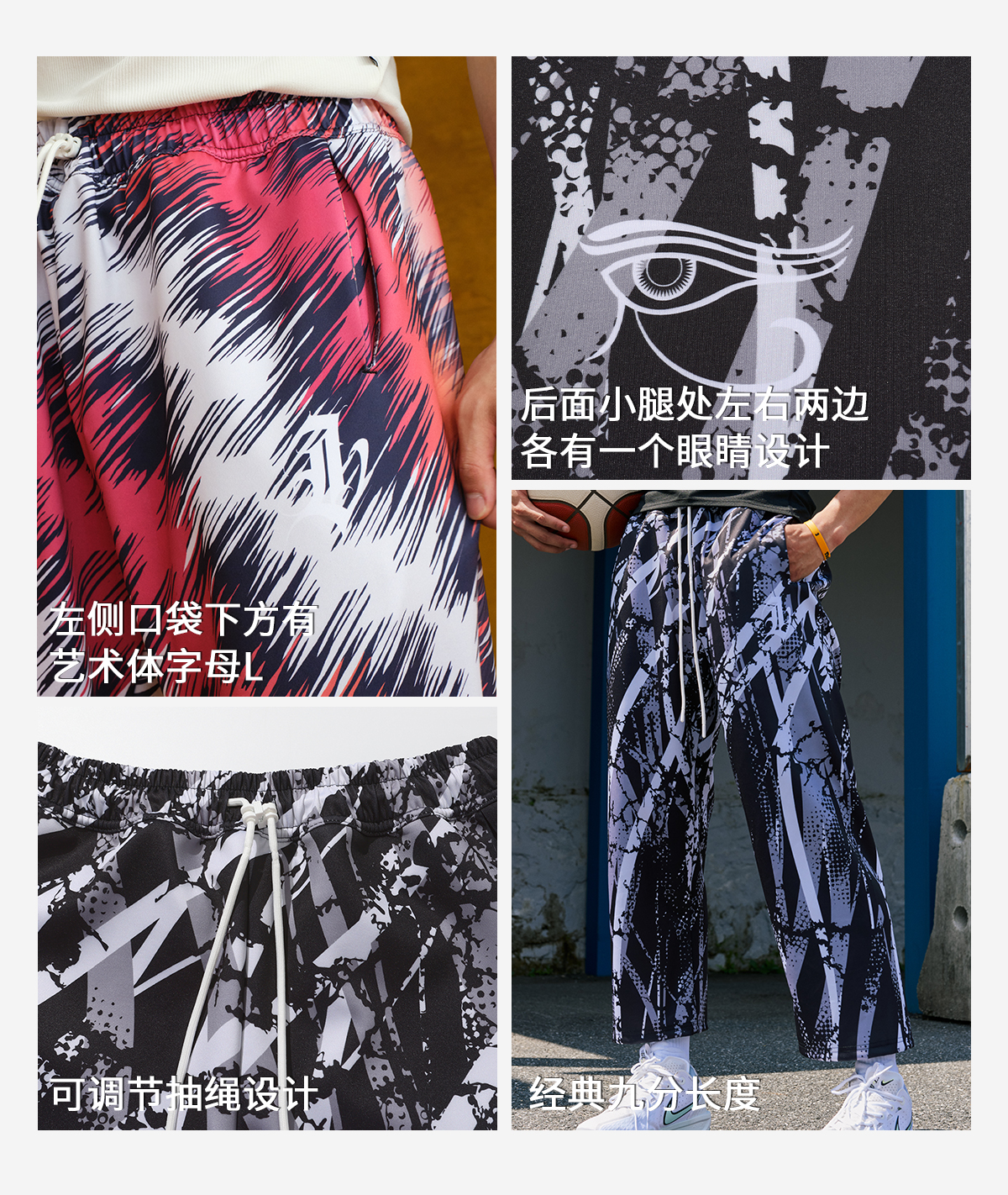 录士LUSHISI混境美式街头满印速干运动街头潮流九分长裤篮球休闲