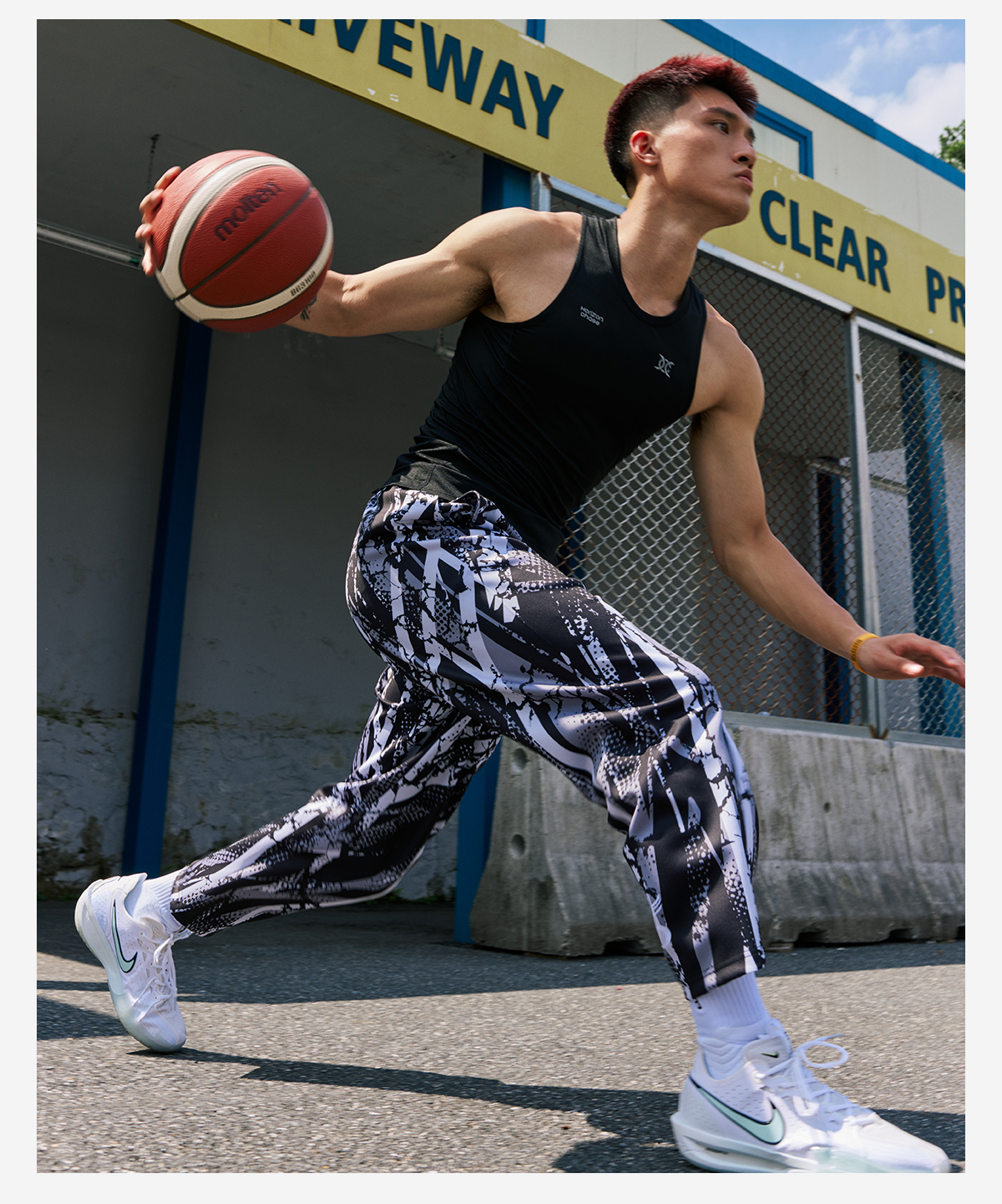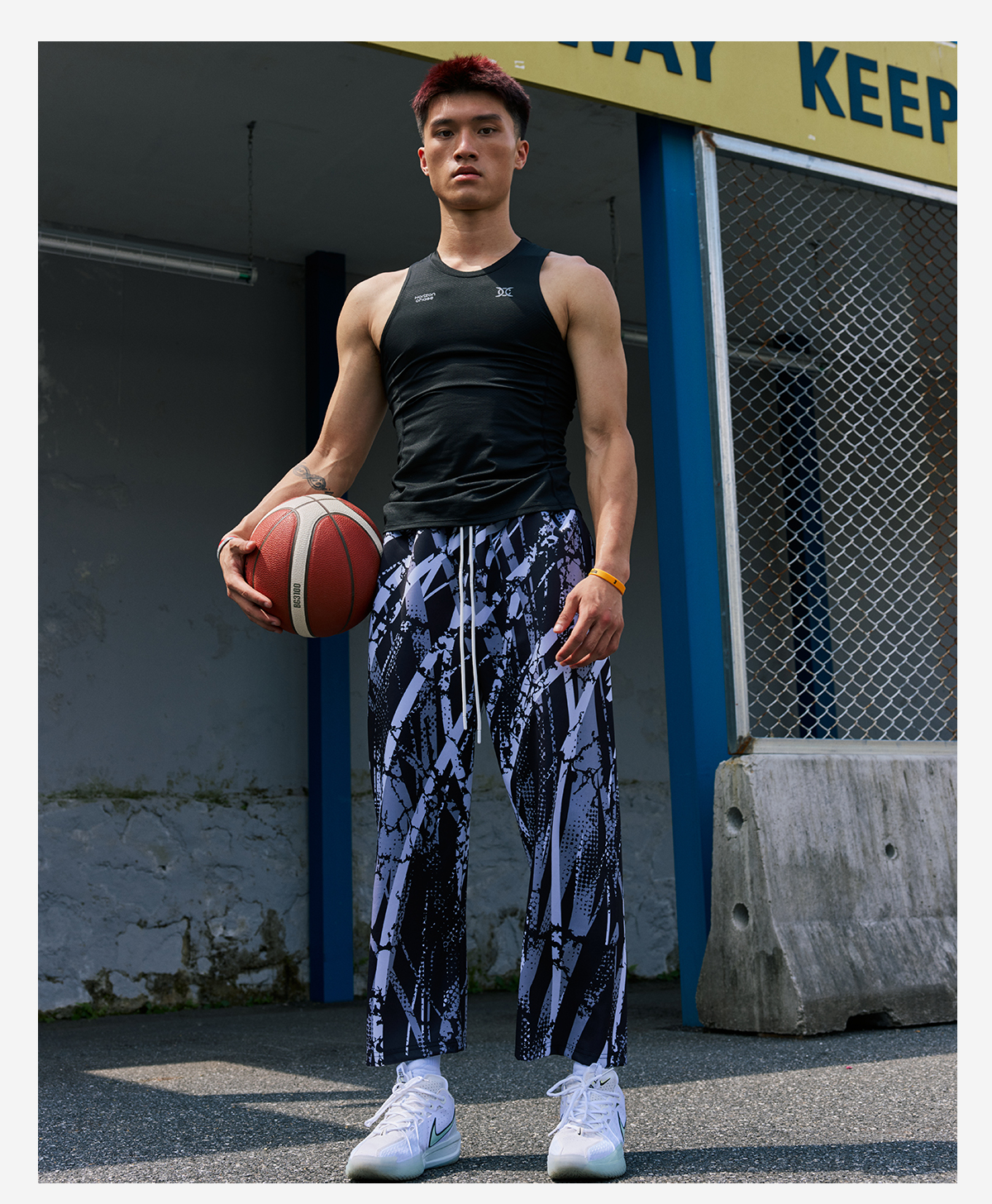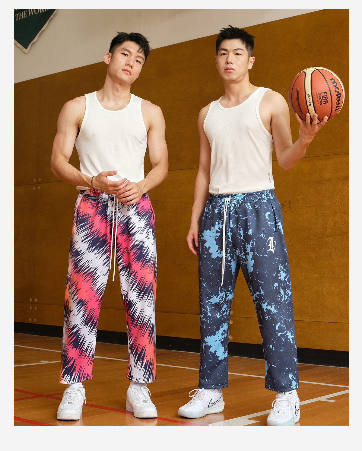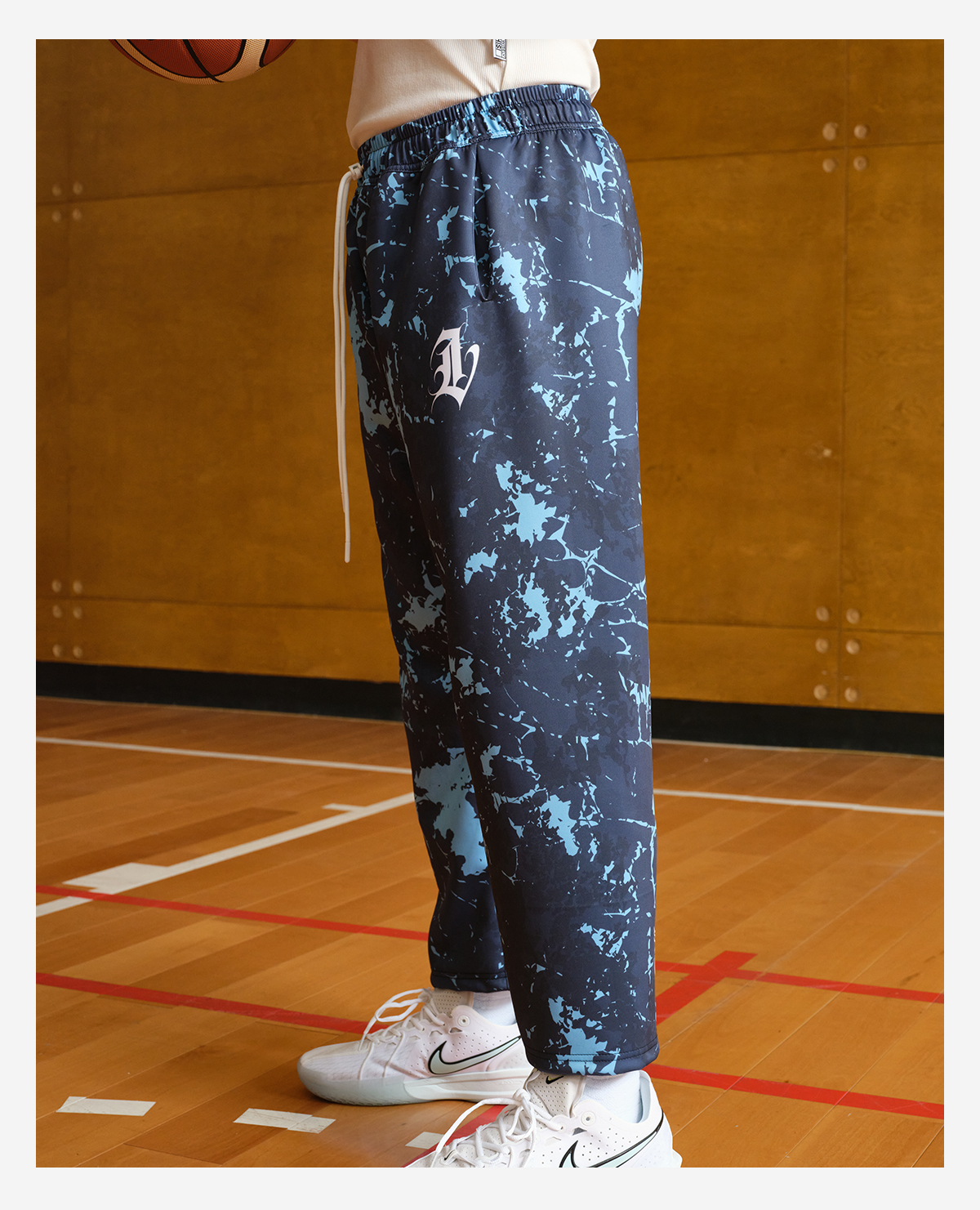 录士LUSHISI混境美式街头满印速干运动街头潮流九分长裤篮球休闲