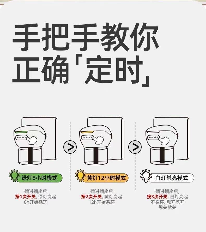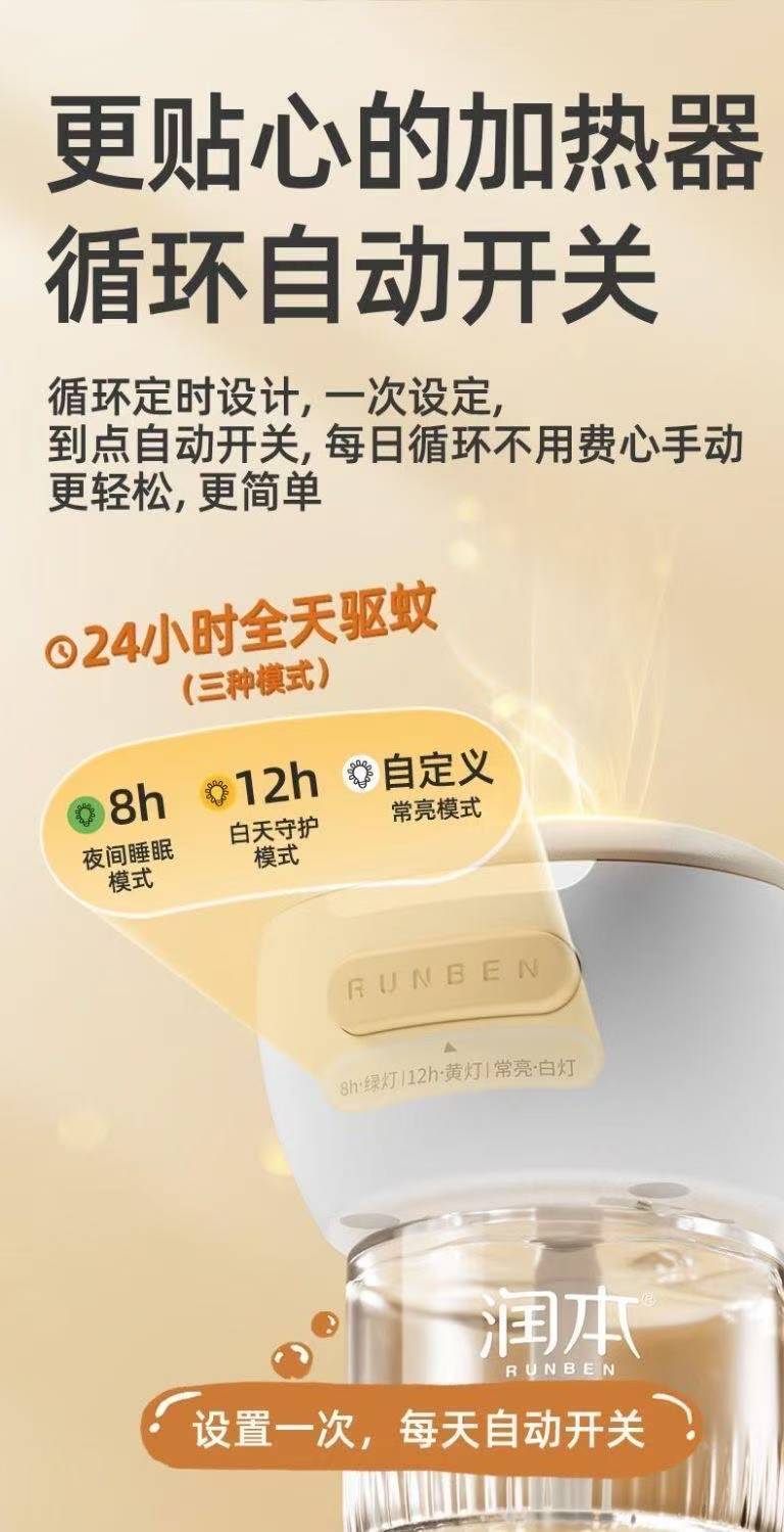 润本电热蚊香液定时温和驱蚊插电式无味灭蚊防蚊水婴幼儿童止痒膏