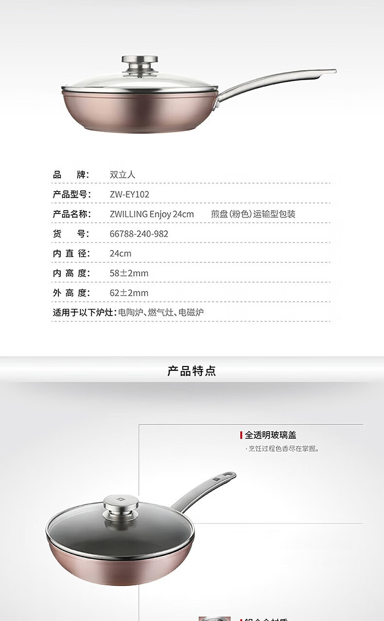 双立人Enjoy不粘煎盘运输型包装粉色24cm ZW-EY102/1017291