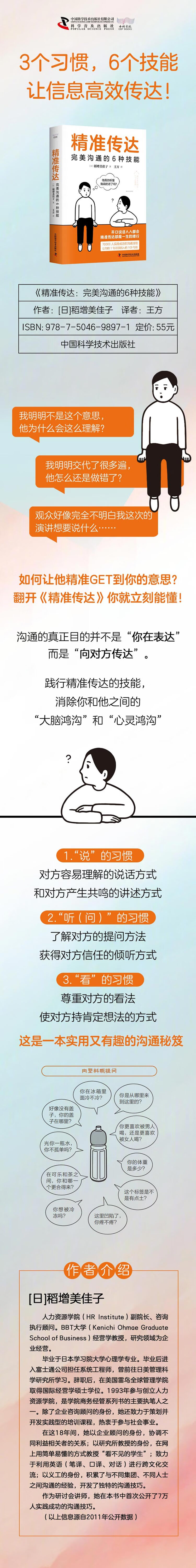 我们常常会因为无法准确传达信息而烦恼。无论多么优秀的商务人士,如果想法和信息无法准确传达给对方或无法得到周围人的认同,也就无法达成卓越的工作成就。本书用图文结合的形式,从“说”“听(问)”“看”三个方面,介绍了准确将信息传达给对方的六种技能,这也是我们在日常生活中应该养成的沟通习惯。本书将助你在工作和生活中,更有条理地说话、做事,能够在任何场合精准地将信息传达给任何人。