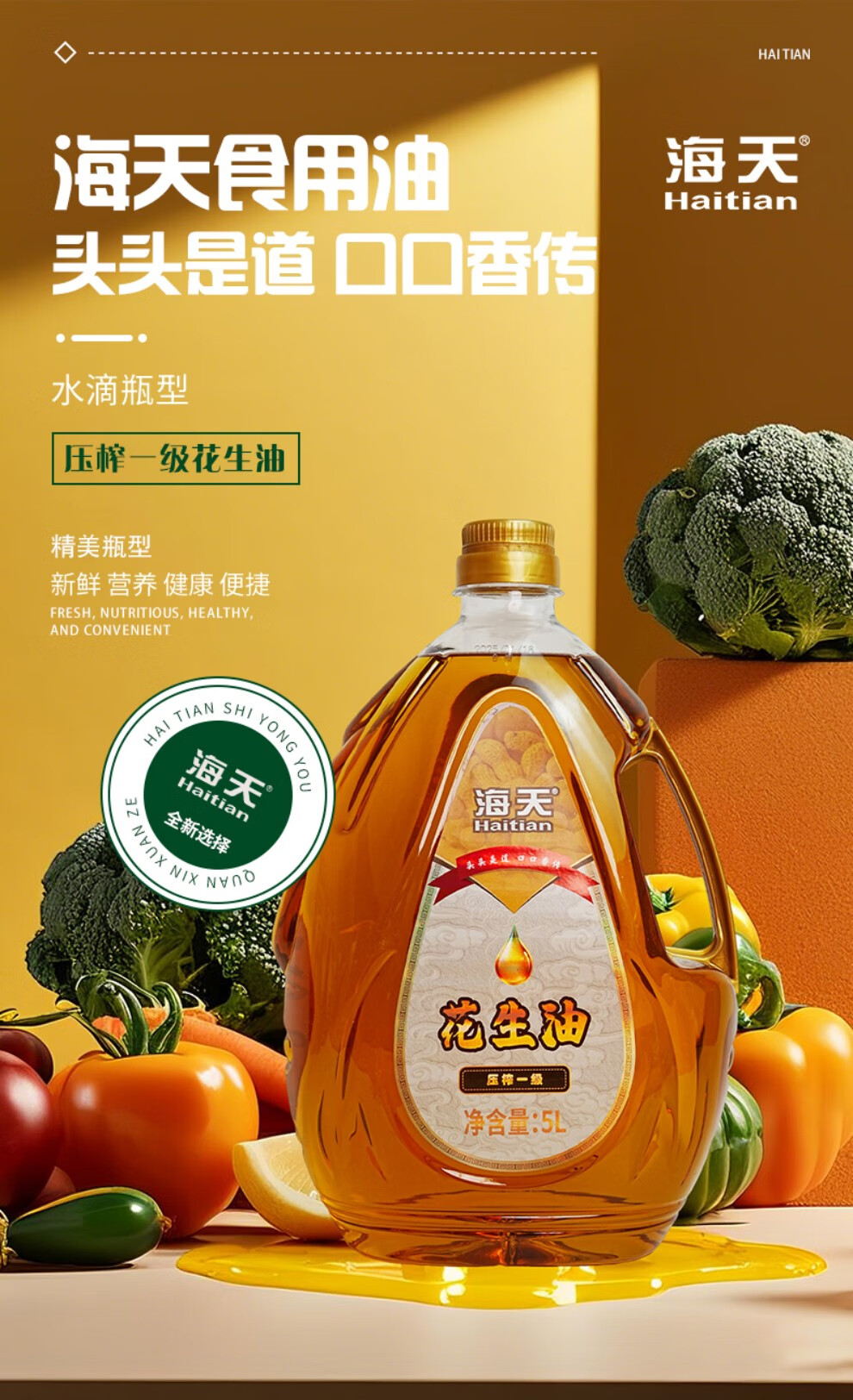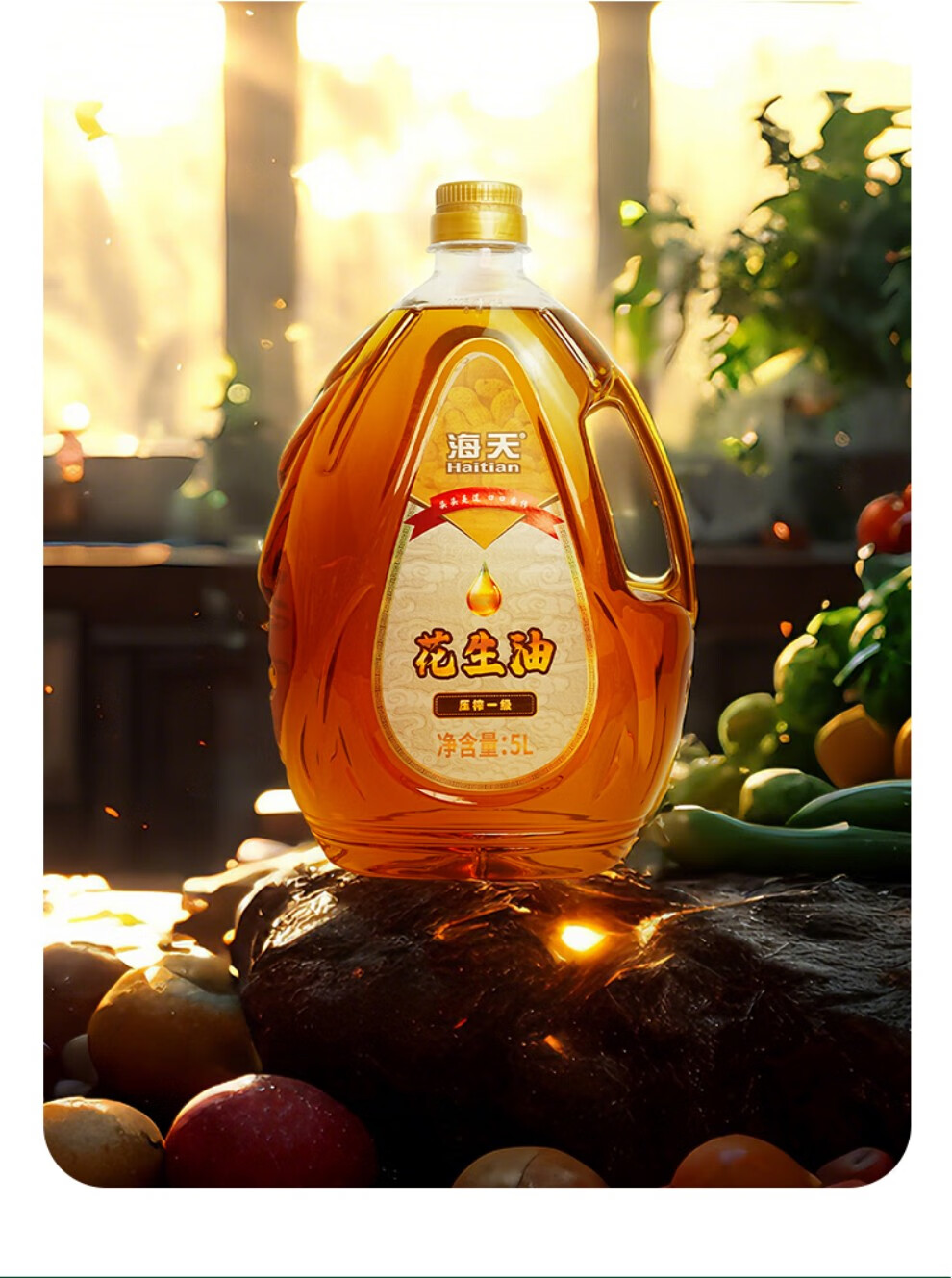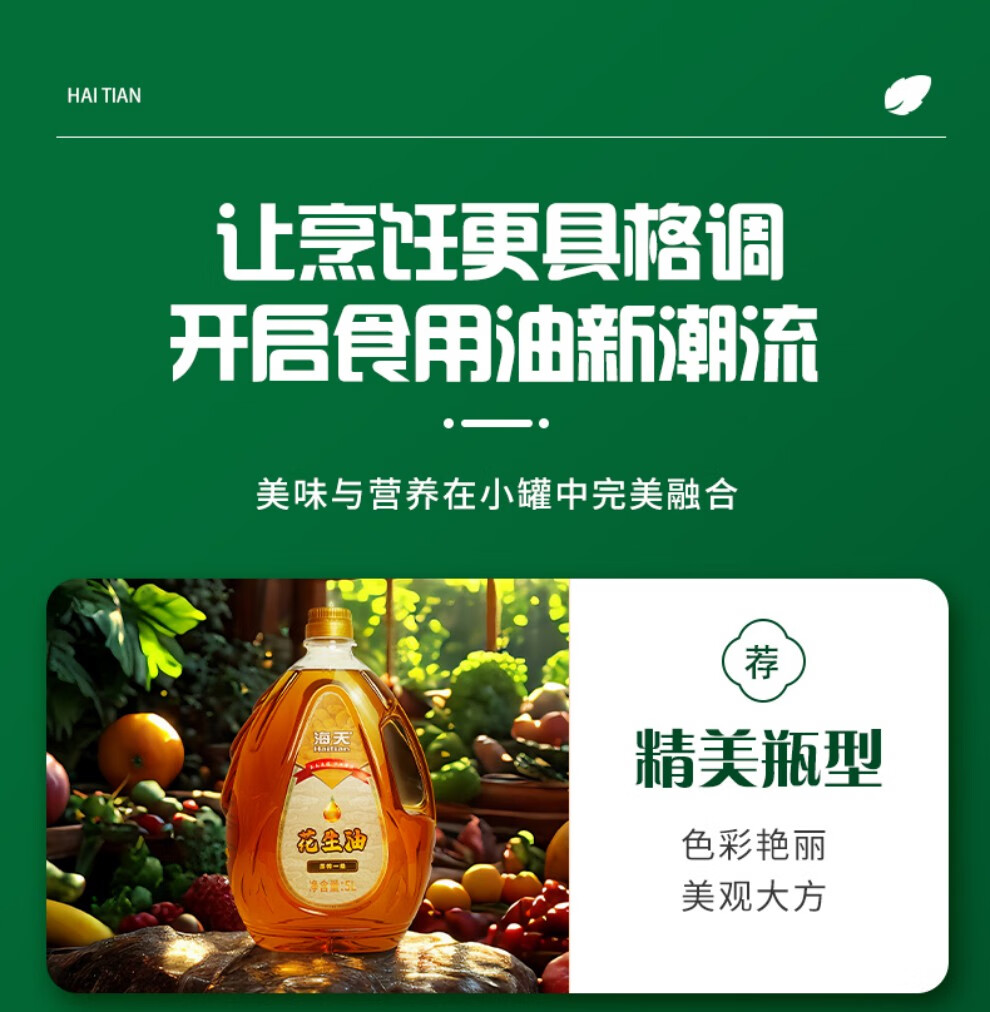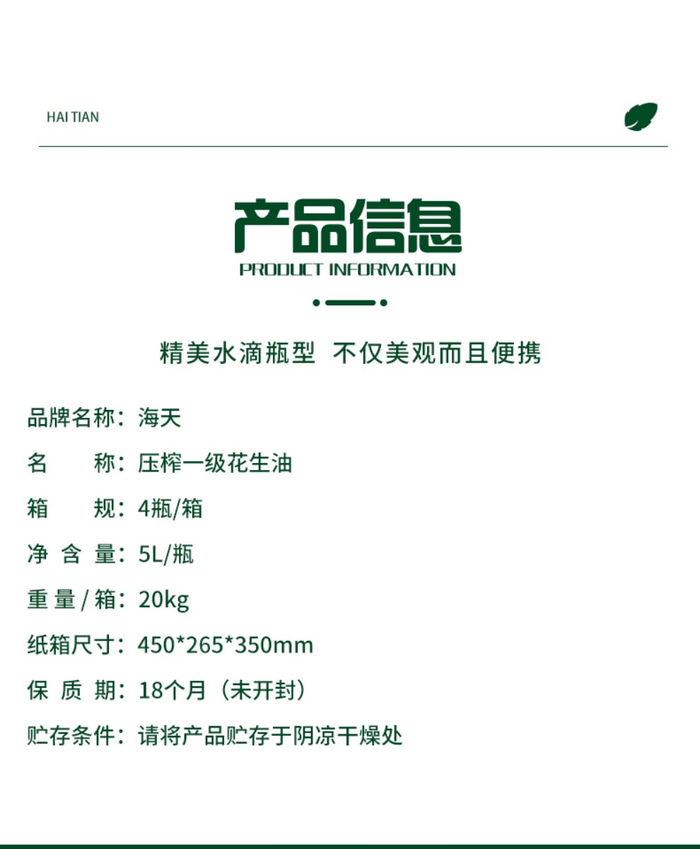 海天压榨一级花生油5L水滴壶
