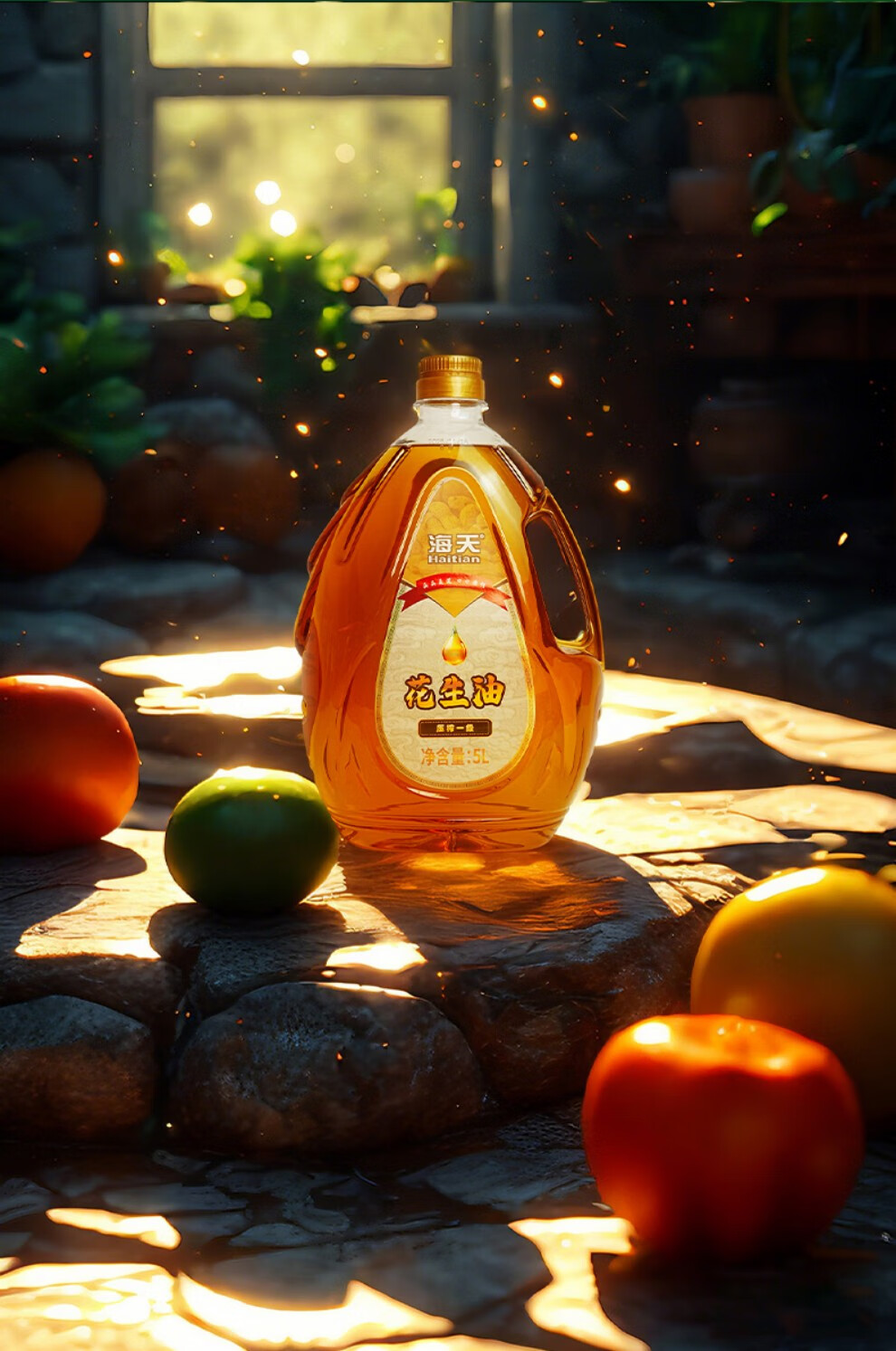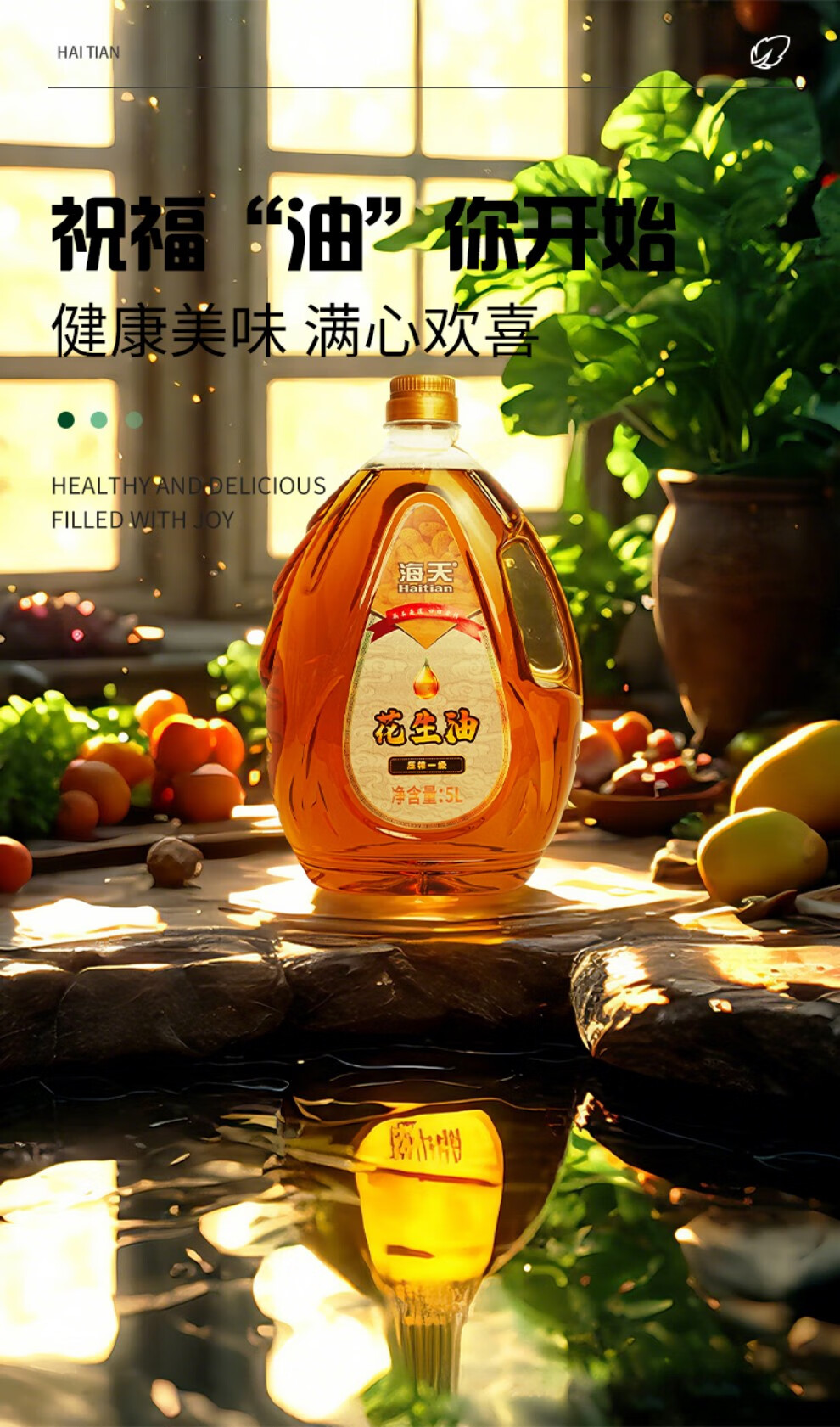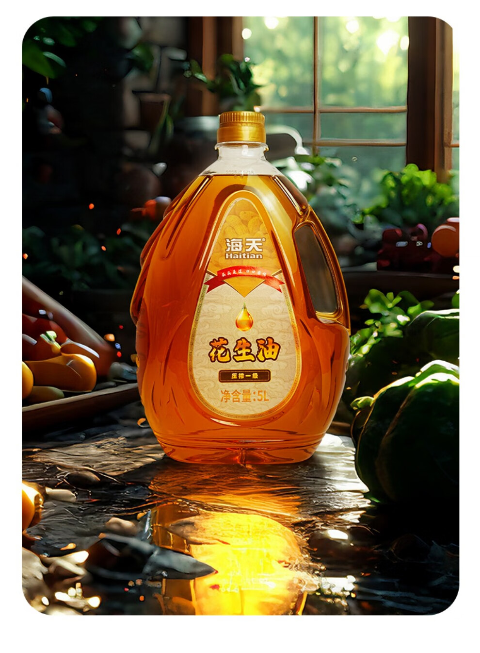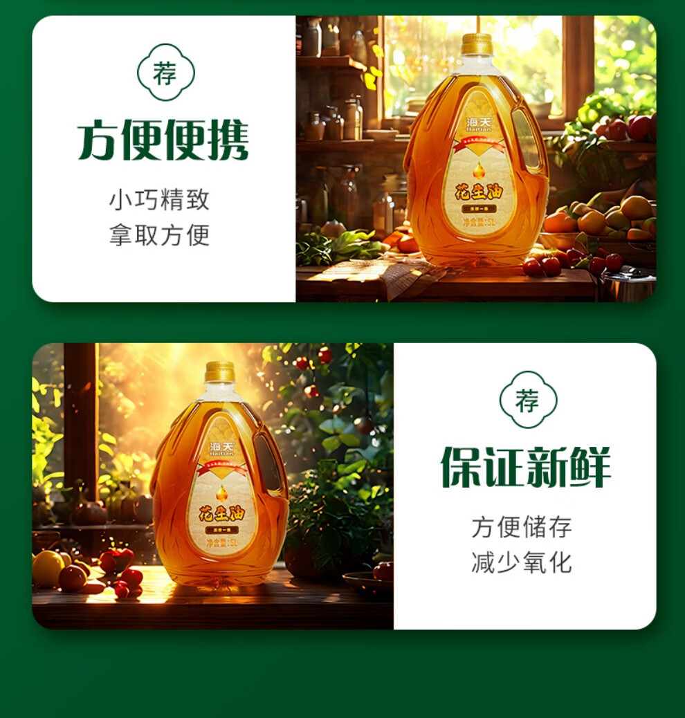 海天压榨一级花生油5L水滴壶