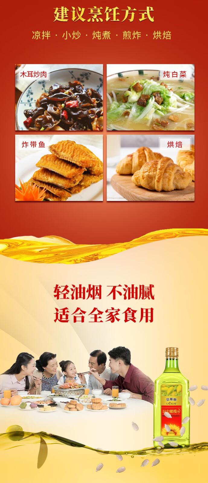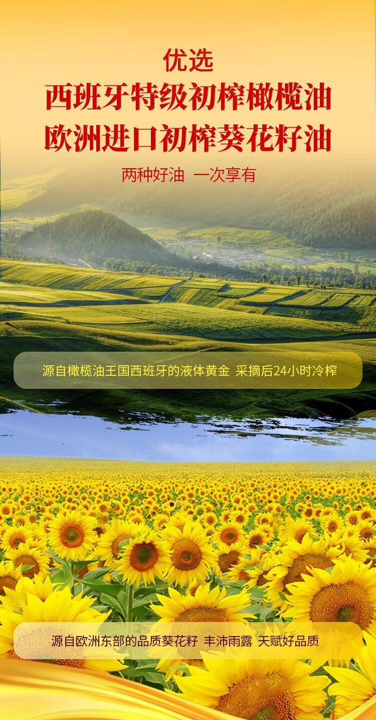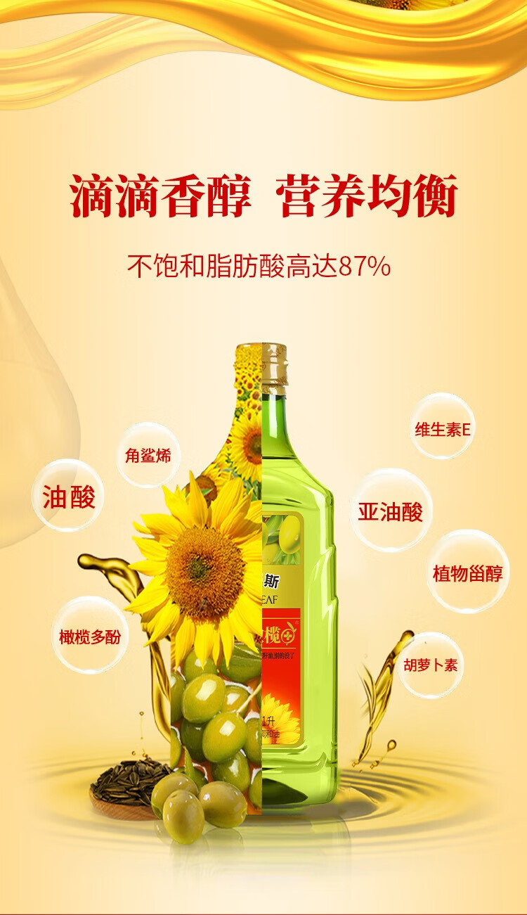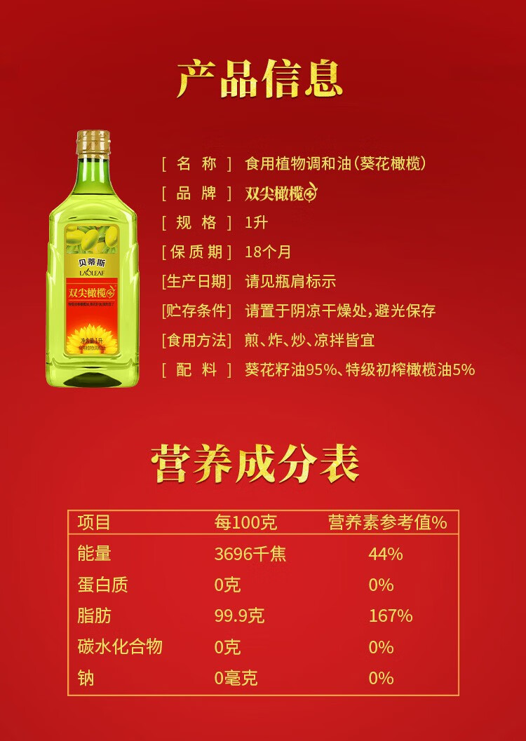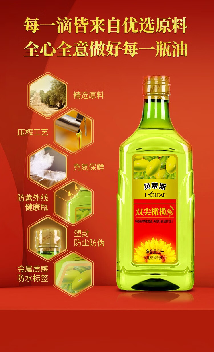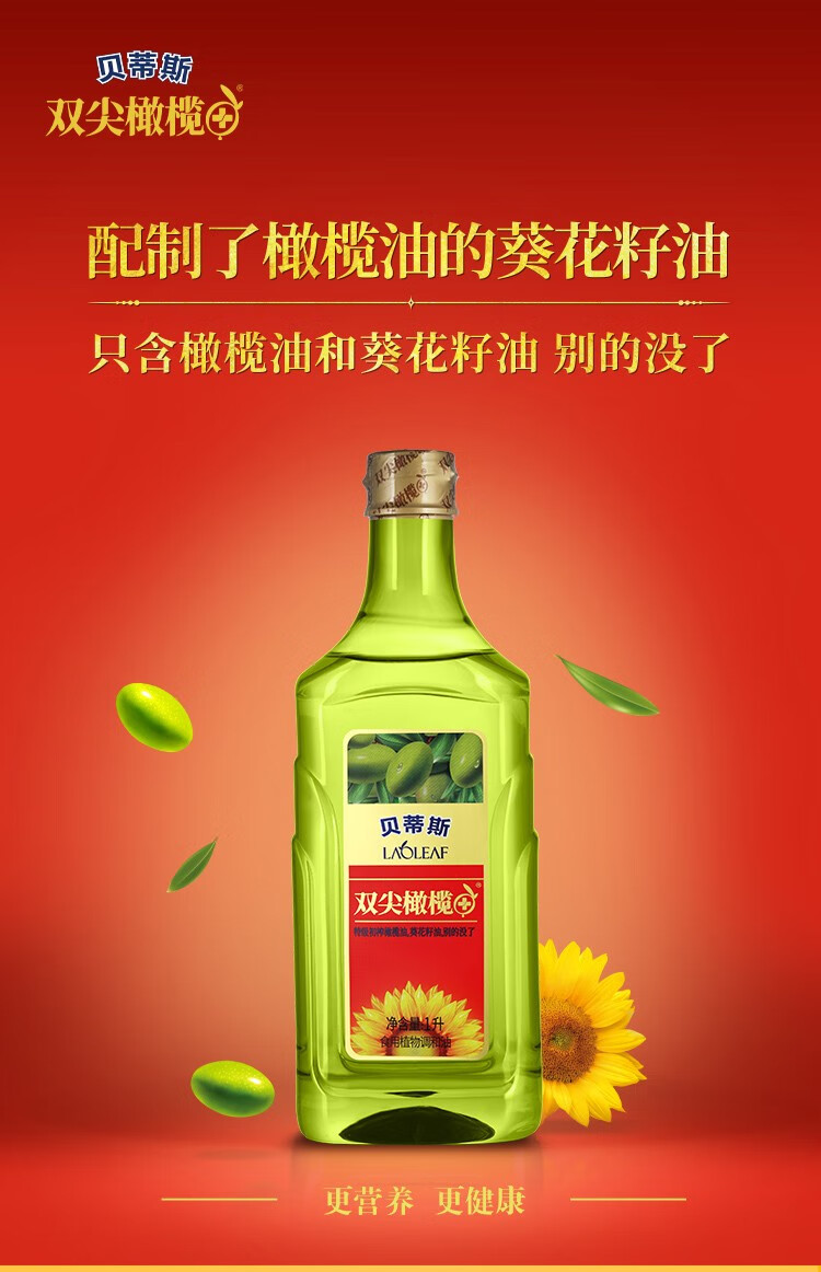 贝蒂斯双尖橄榄葵花油1L吉庆版