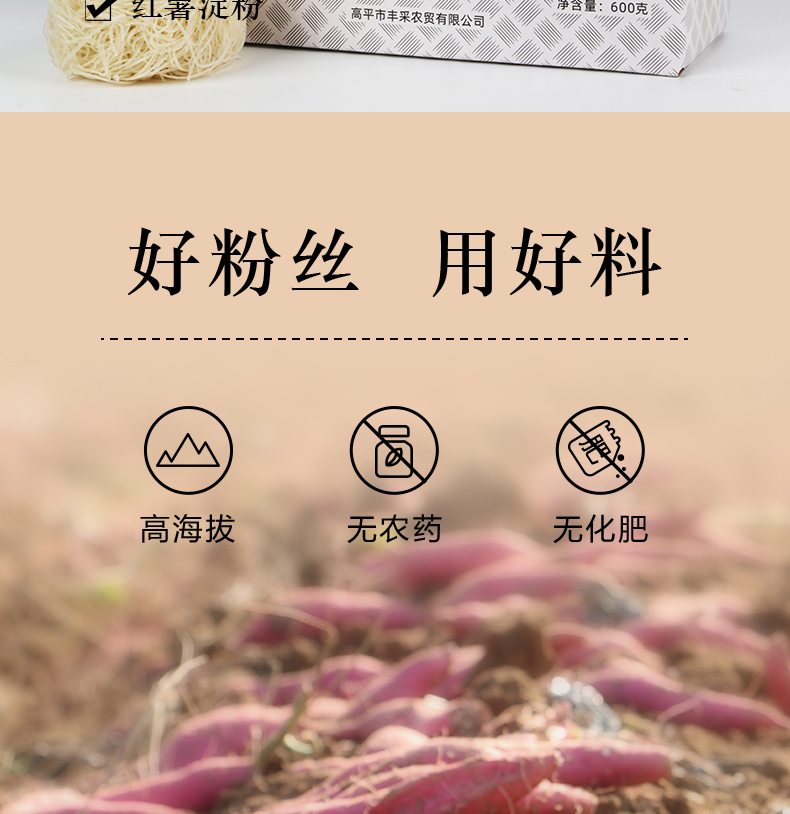 包邮【厂商直发】晋宝绿珍有机红薯粉丝饼600g有机认证无明矾无明胶吃的放心