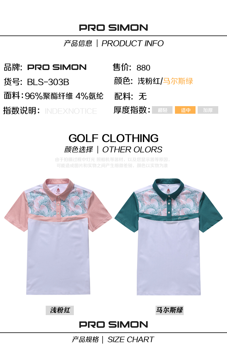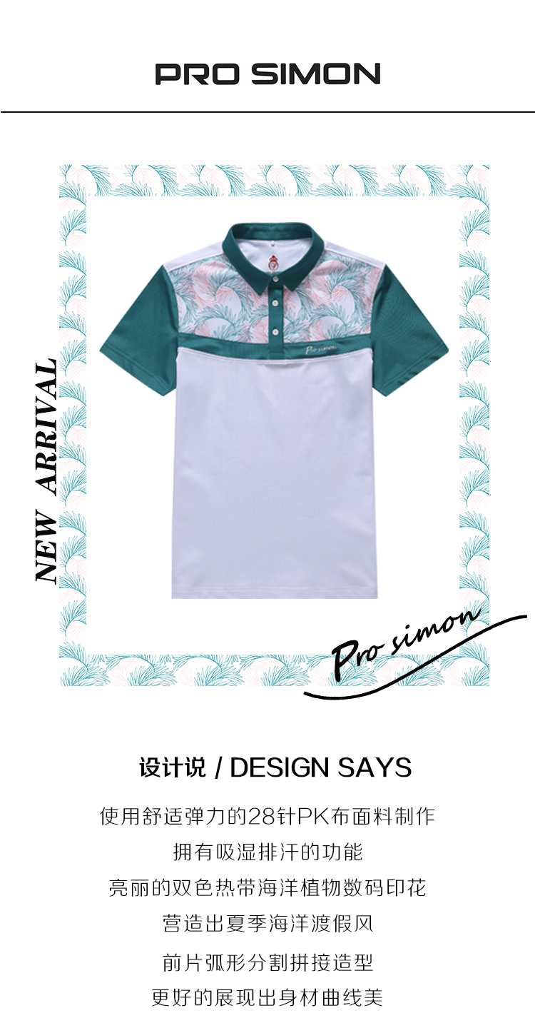 BLS-303B(PROSIMON高尔夫女款春夏短袖印花拼接翻领Polo衫