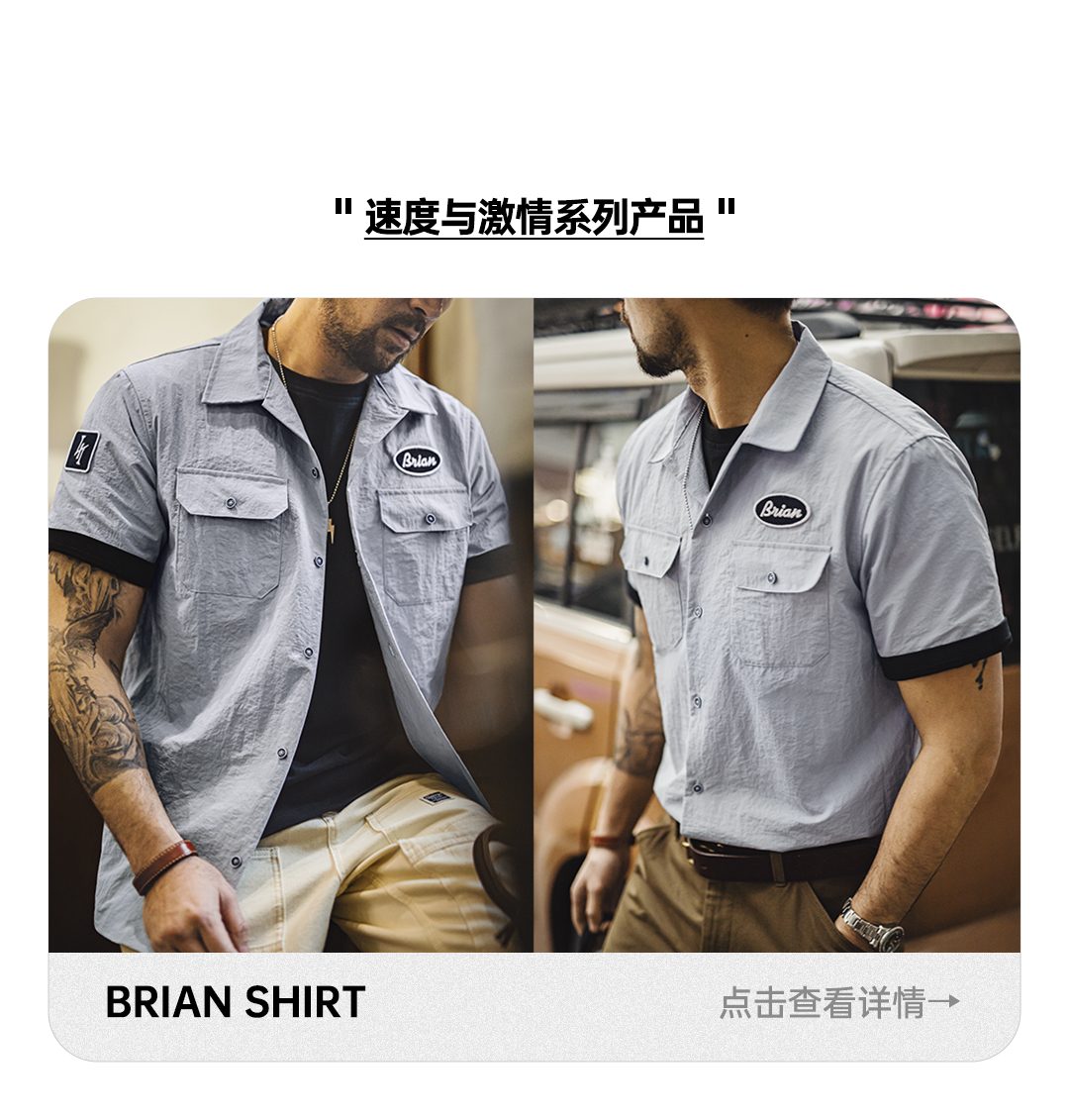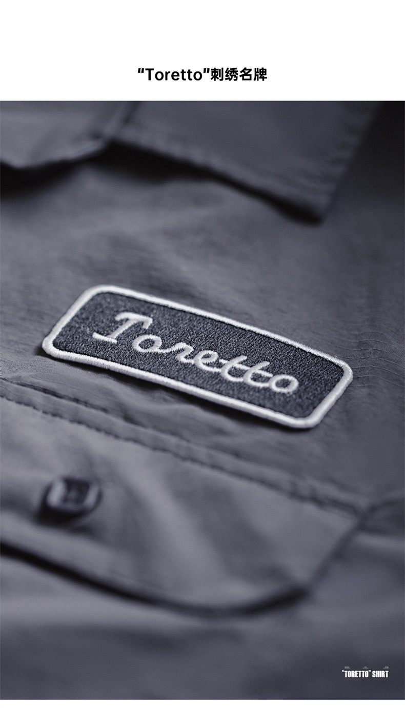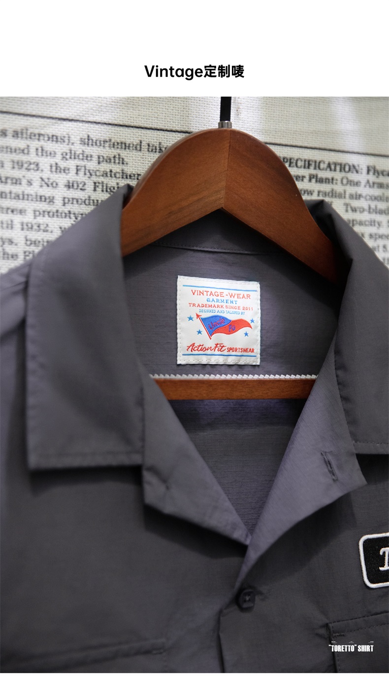 工装优选 美式复古Toretto硬汉短袖衬衫深灰色翻领薄款衬衣男夏季