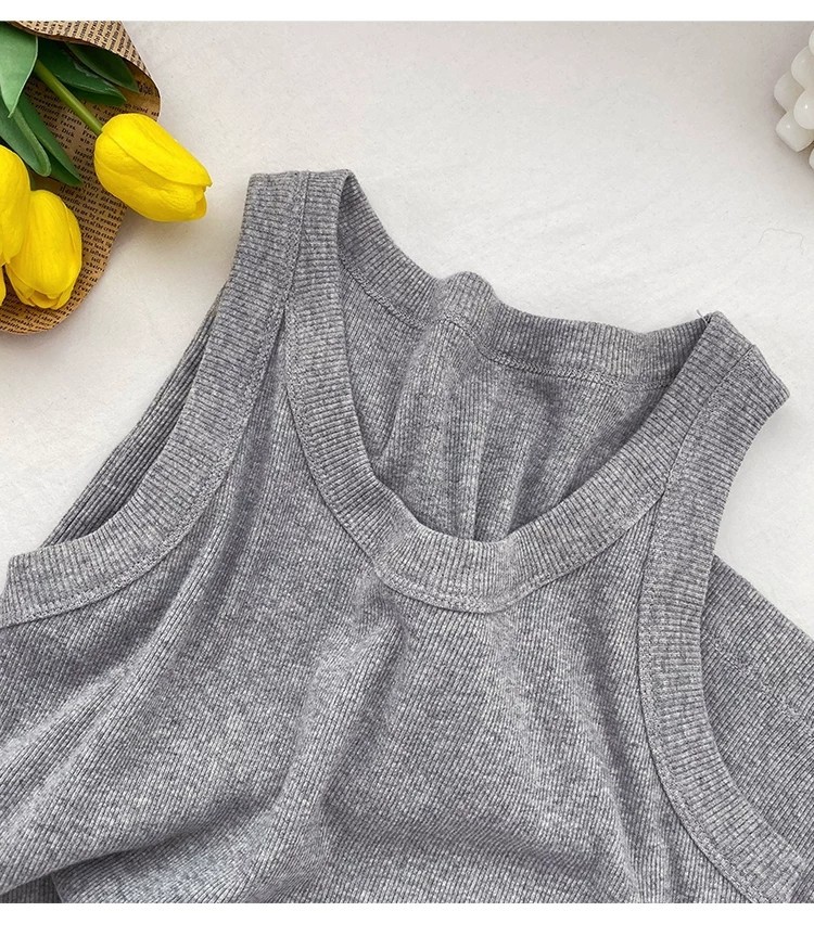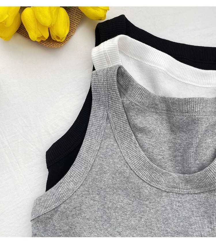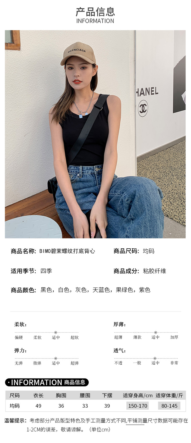 【买1送1】49元两件!维多利亚螺纹打底背心 时尚百搭,简约修身,舒适面料,背心肩部设计刚好的肩袖弧度呈现出性感和时髦
