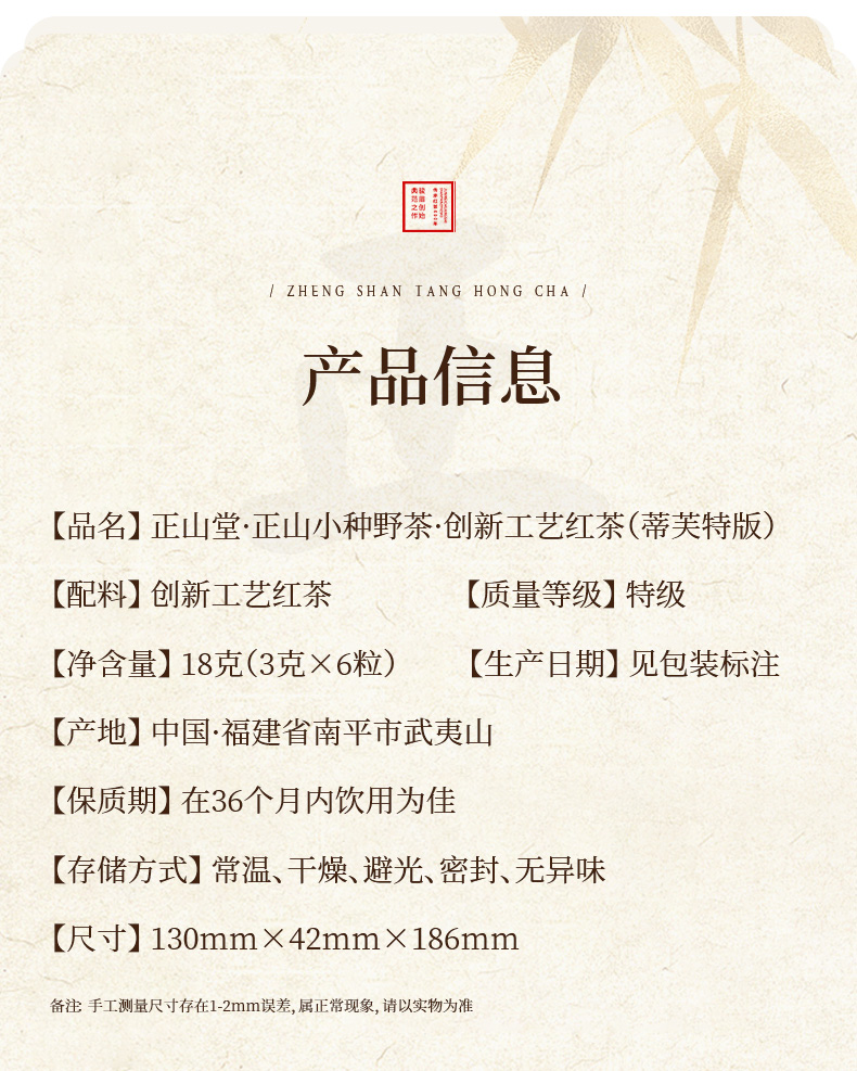正山堂 正山小种野茶 红茶茶叶特级正宗蒂芙特版小袋装试饮便携18g