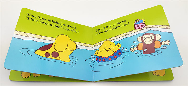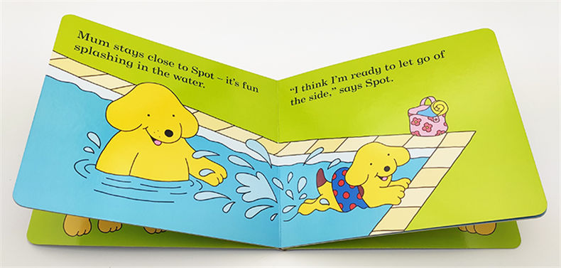 At first he feels a little nervous, but with a bit of support from Mum and friends, soon Spot is splashing about and having a whale of a time.