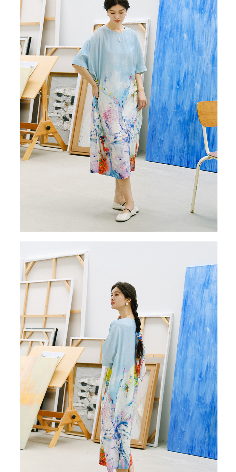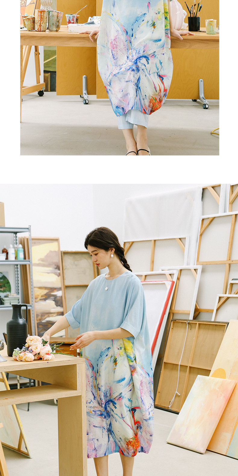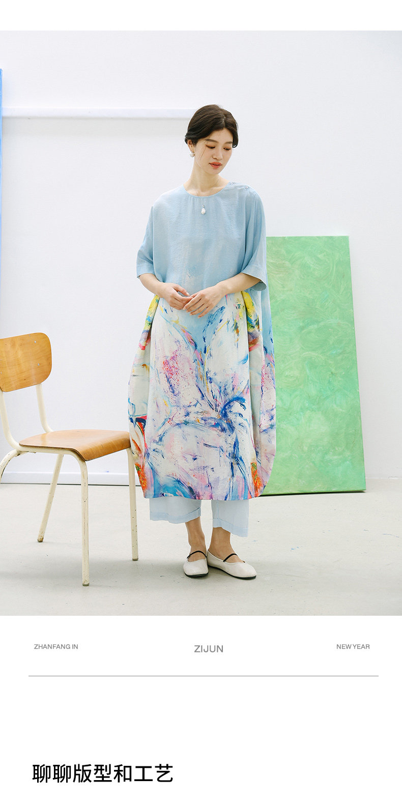 绽放176朵/「余味-1」连衣裙*zijun联名系列干丝底印花茧型长裙子