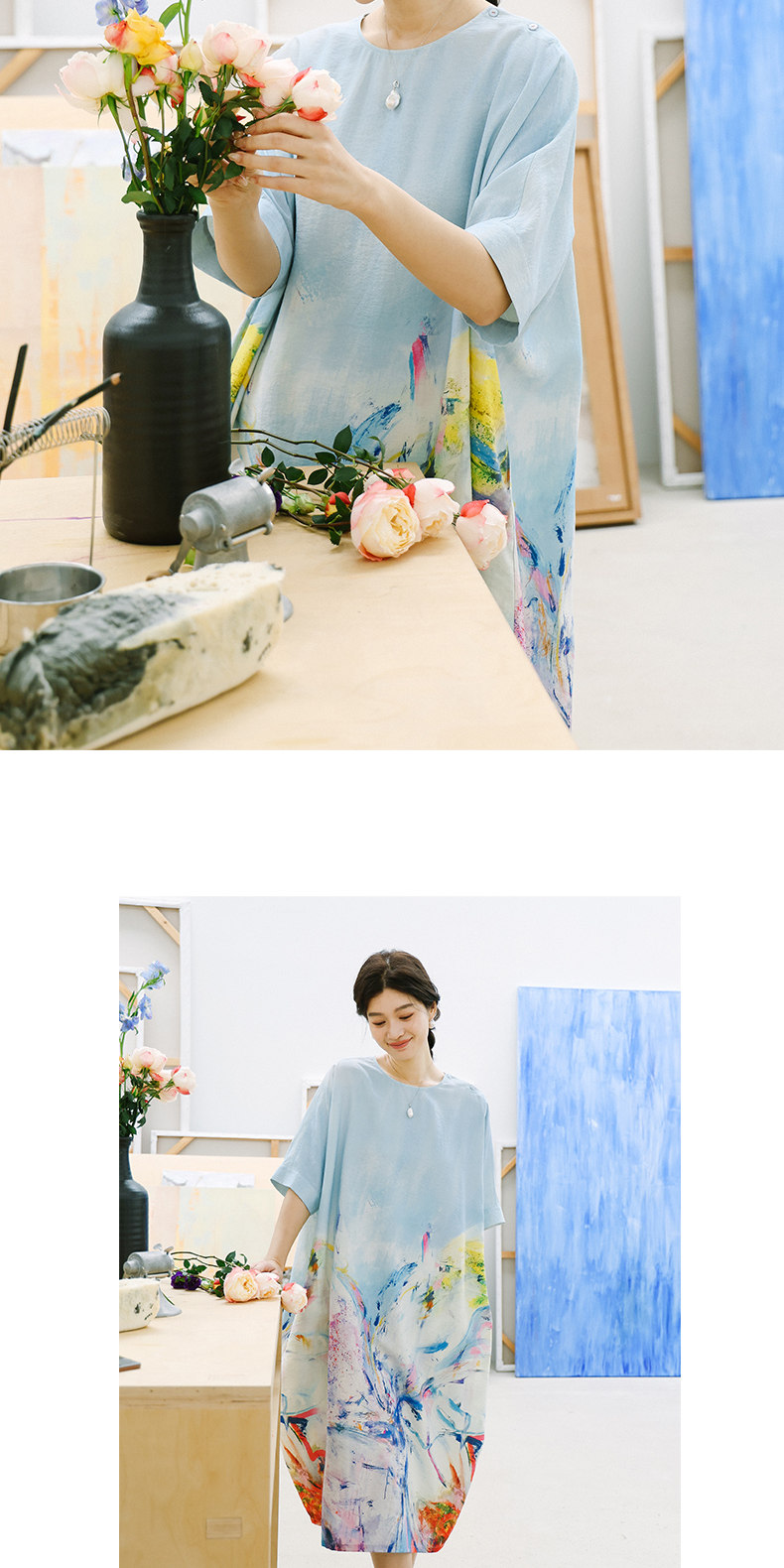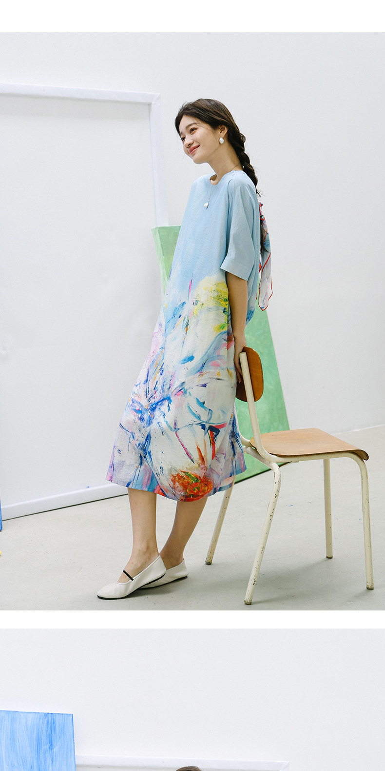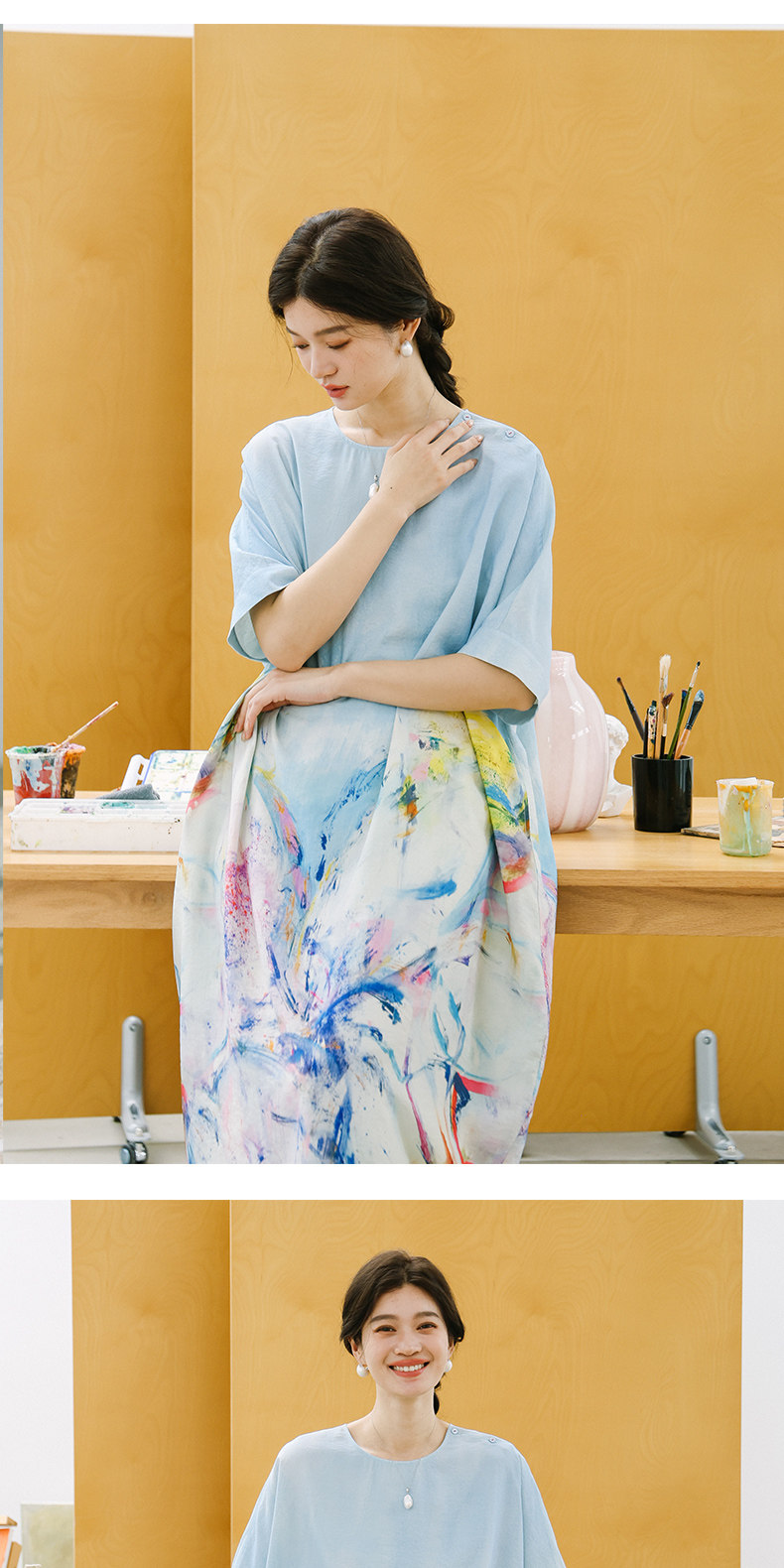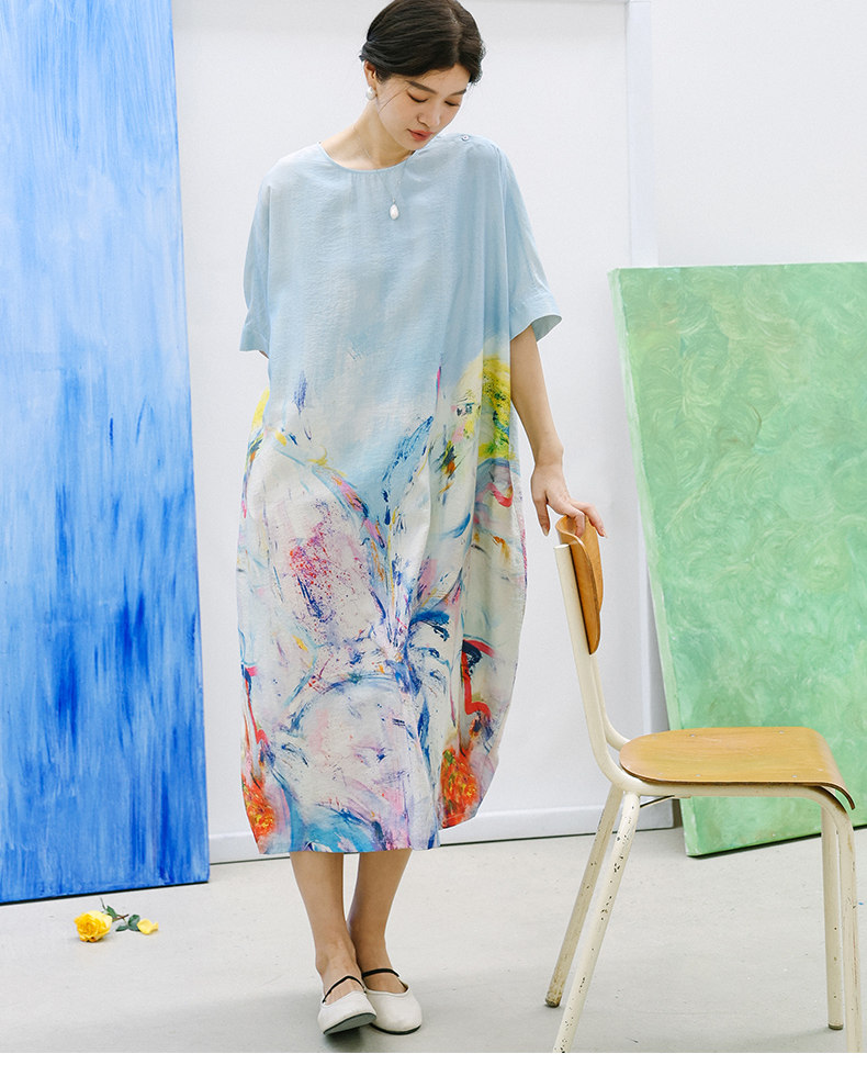 绽放176朵/「余味-1」连衣裙*zijun联名系列干丝底印花茧型长裙子