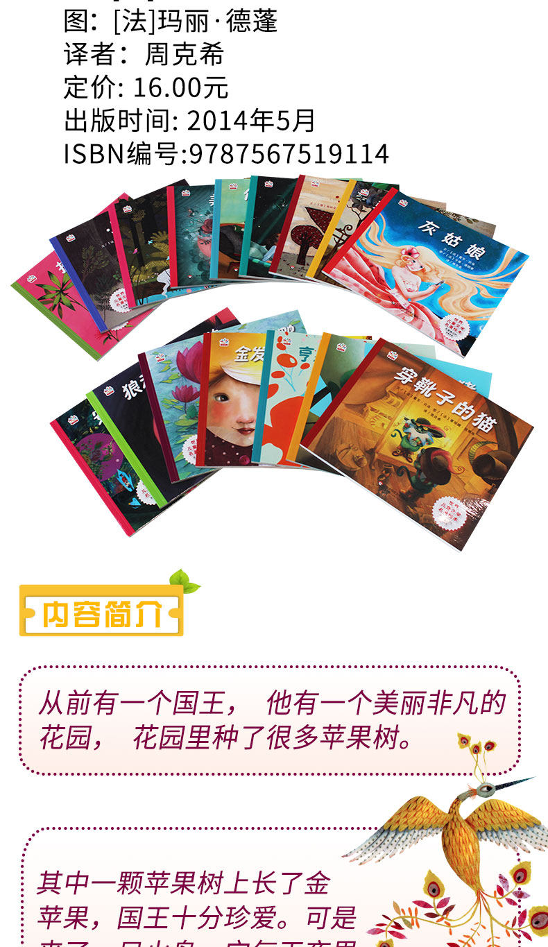 一样的经典,不一样的绘图。法国当代最顶尖的儿童插画师,近千幅精美手绘插图,唯美浪漫、童趣盎然、清新自然、古朴细腻……画风多元,无限想象越纸而出;关注细节,连发丝都清晰可见;色彩鲜明,对应不同情境心理。提高审美、艺术熏陶,这里的图片自己会说话哦!