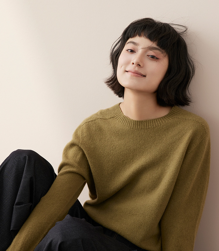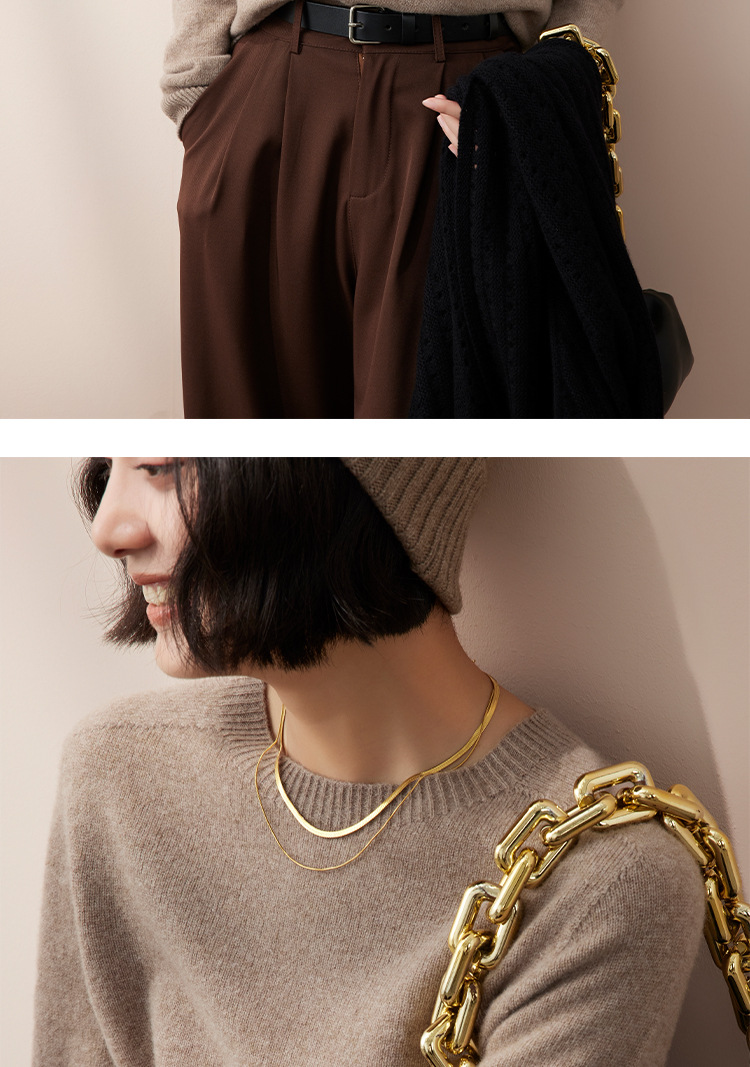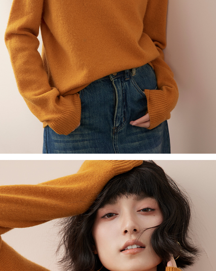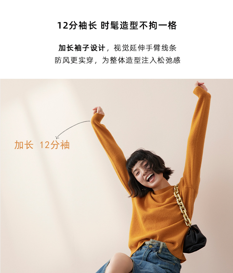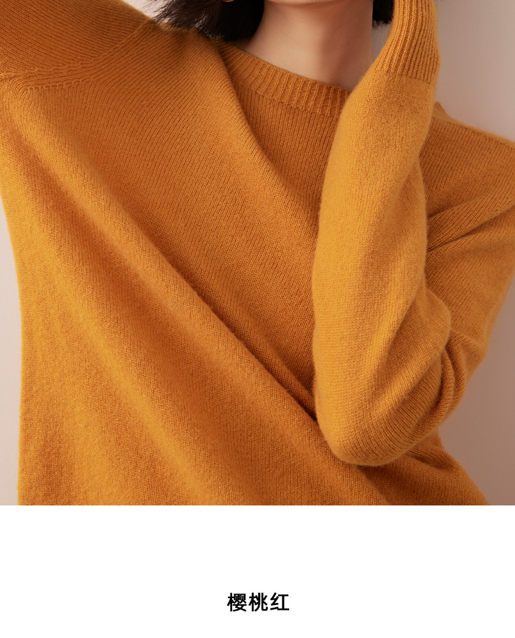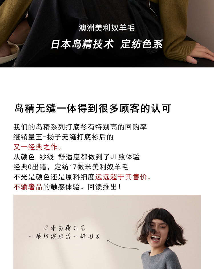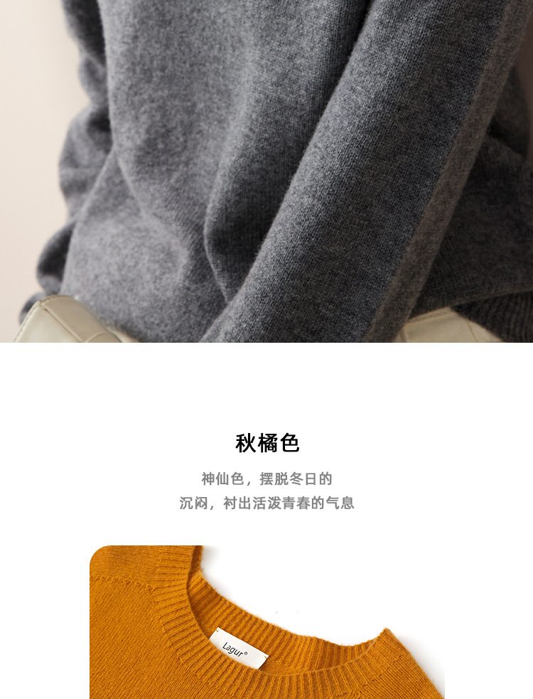 重磅推出!100%纯羊毛定纺织打底衫上衣套头毛衣纯色秋冬季女高级!