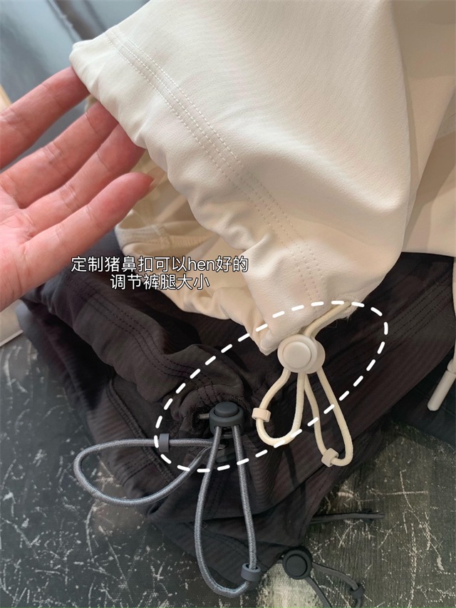 膝盖口袋两侧有隧道抽绳 都是人工穿线