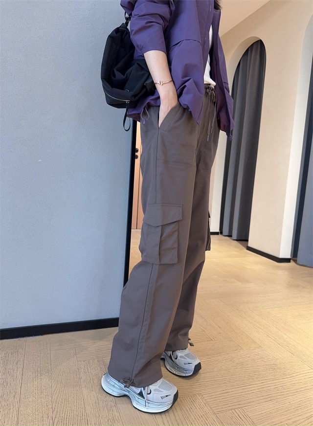 裤脚位置松开抽绳是直筒裤,系紧抽绳是收口裤,