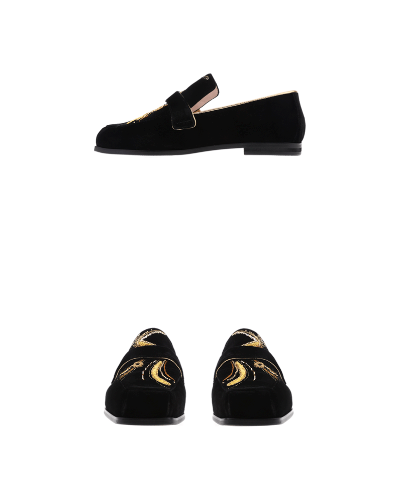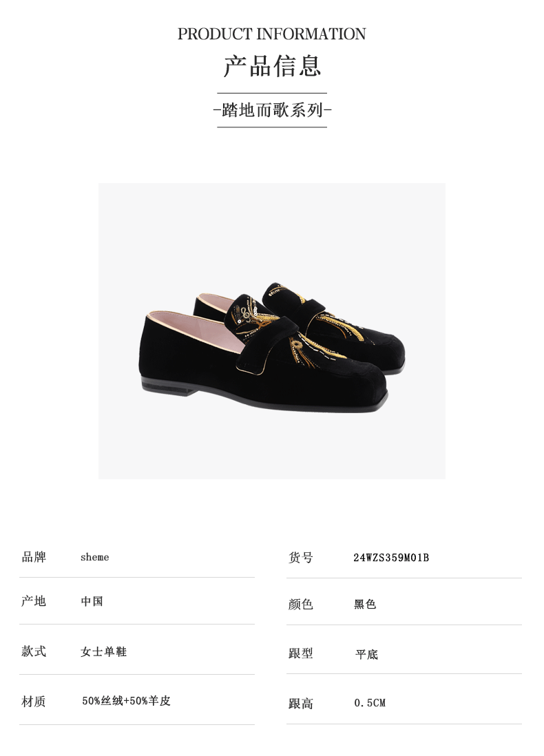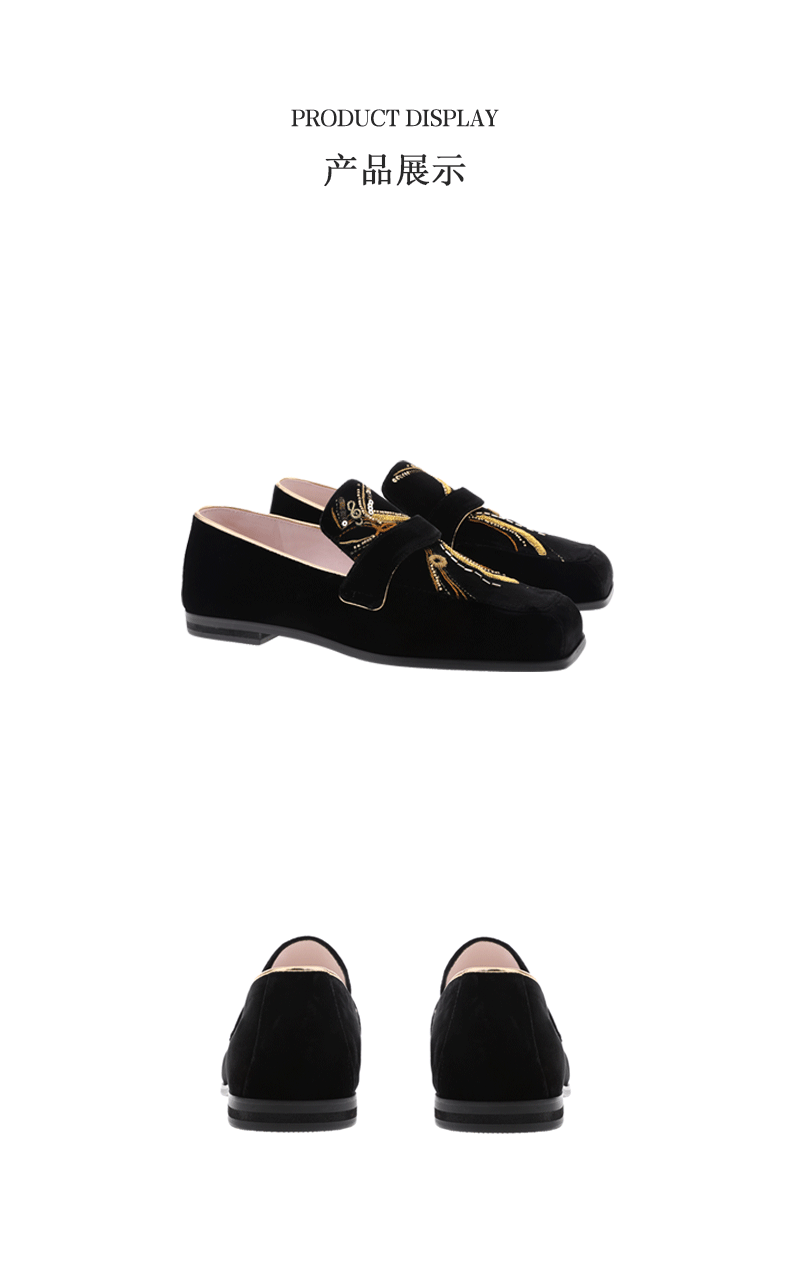 sheme踏地而歌系列丝绒搭配刺绣休闲时尚新中式女士乐福鞋可定制