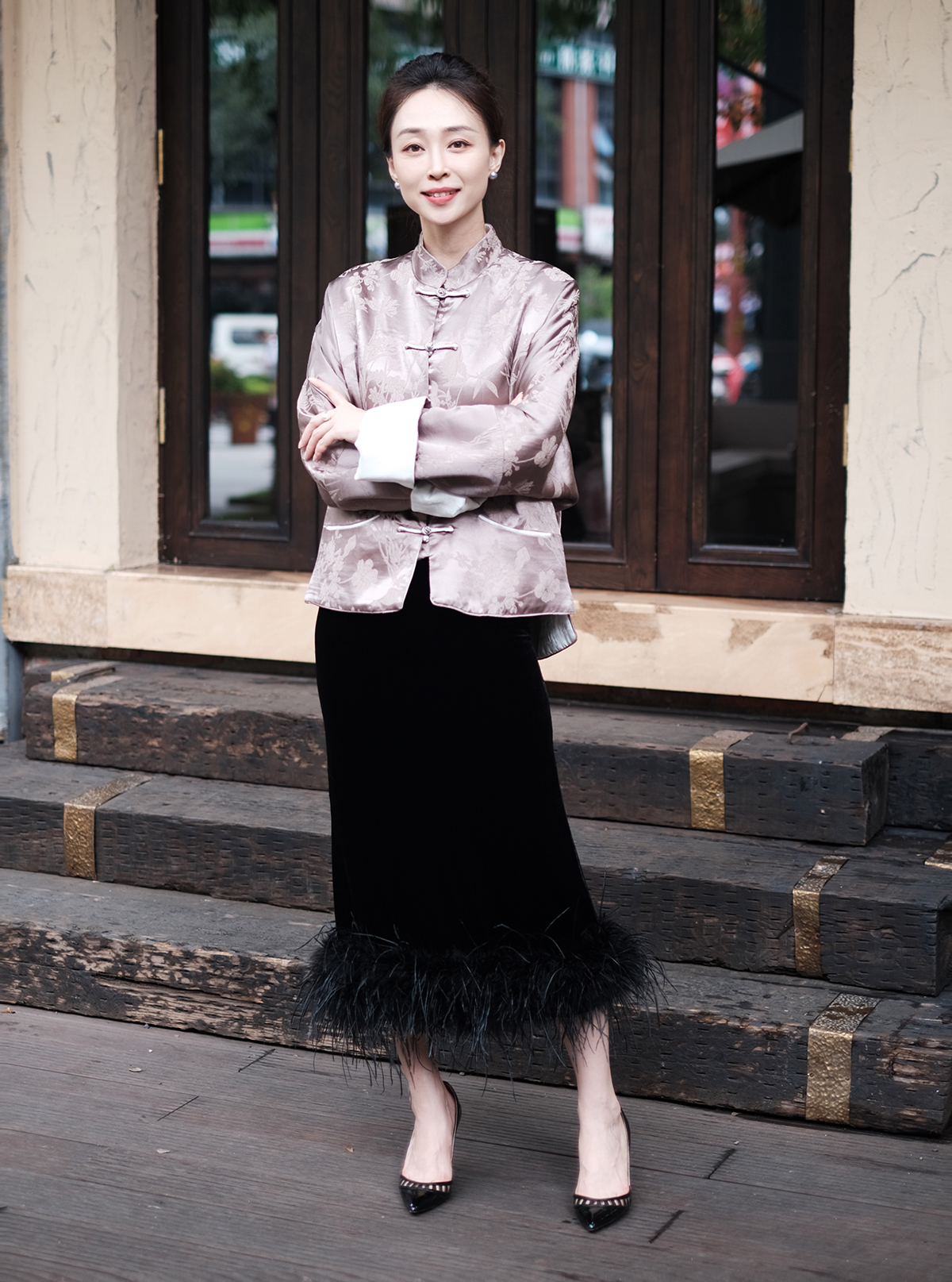 盛唐牡丹 | 真丝绸缎圆领上衣