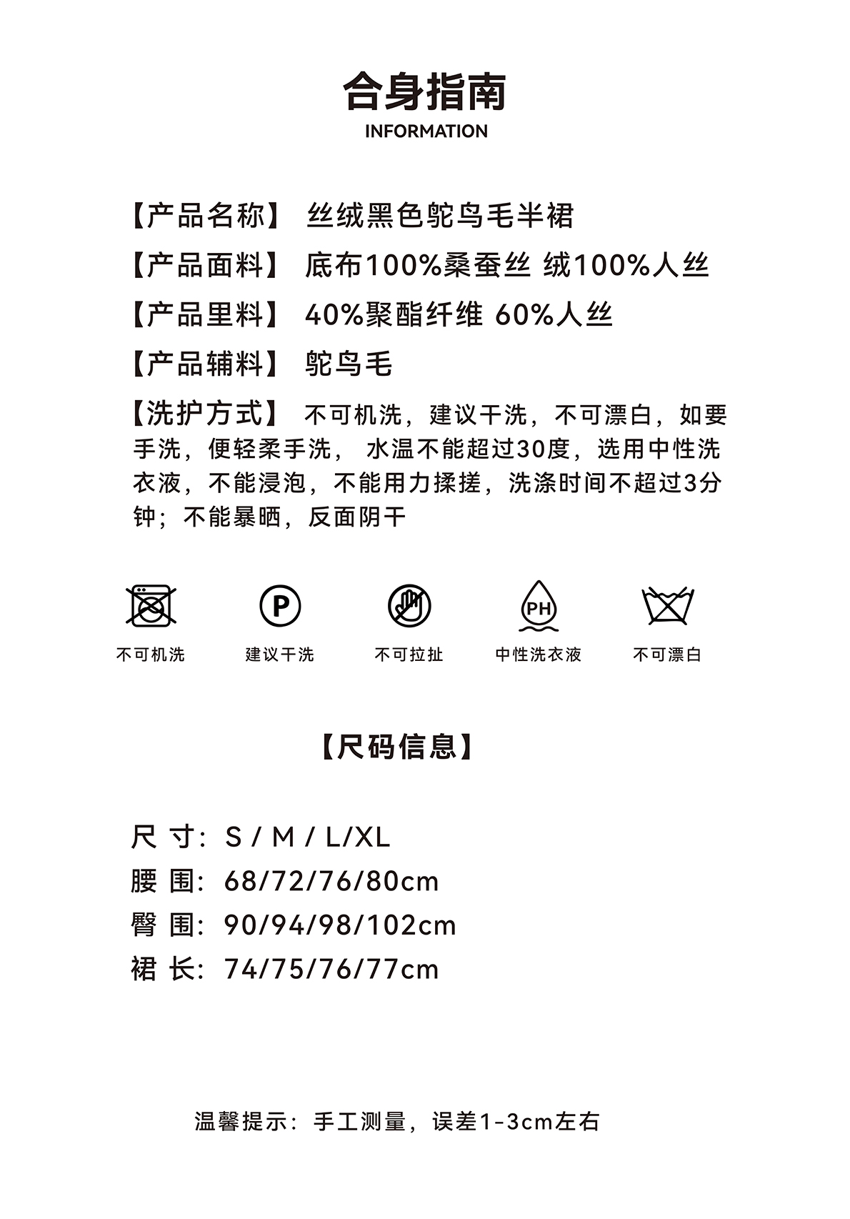 盛唐牡丹|丝绒黑色鸵鸟毛半裙(鸵鸟毛可拆卸)