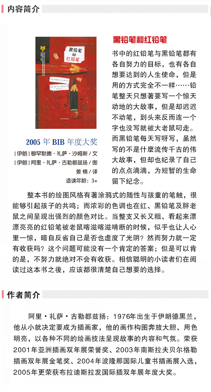 黑铅笔和红铅笔 布拉迪斯拉发国际插画双年展(BIB)获奖书系 正版精装绘本 国际插画大师作品 3-8岁儿童读物