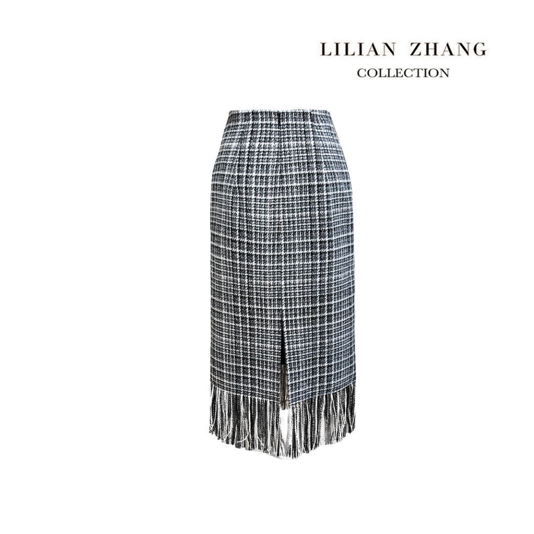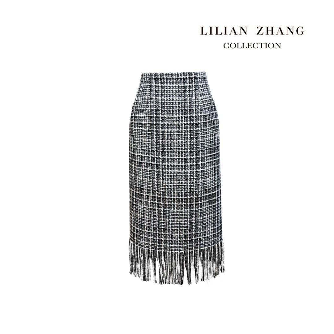复古英伦风潮-格纹流苏 长款半裙-优雅包臀秋冬气质 时尚2103039