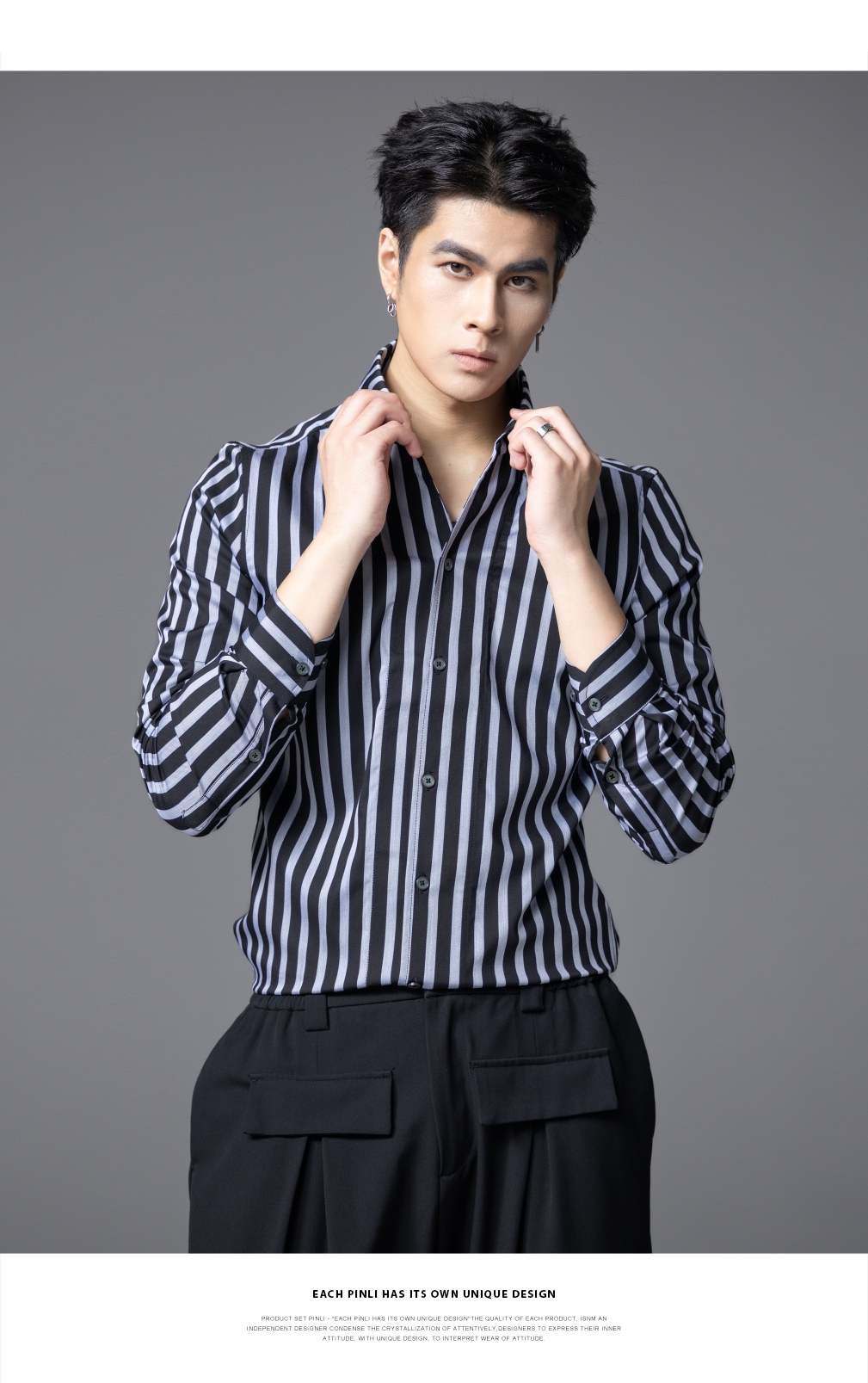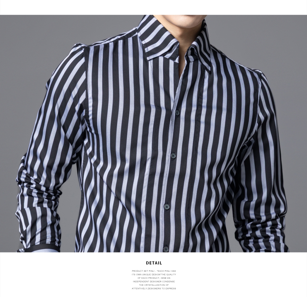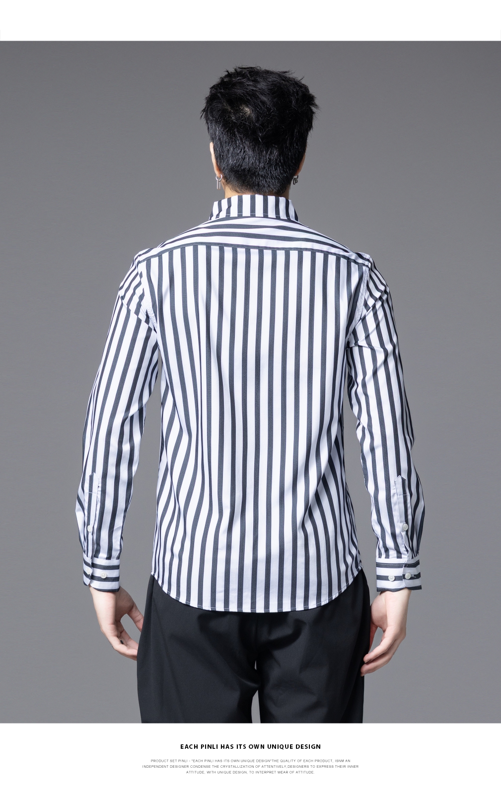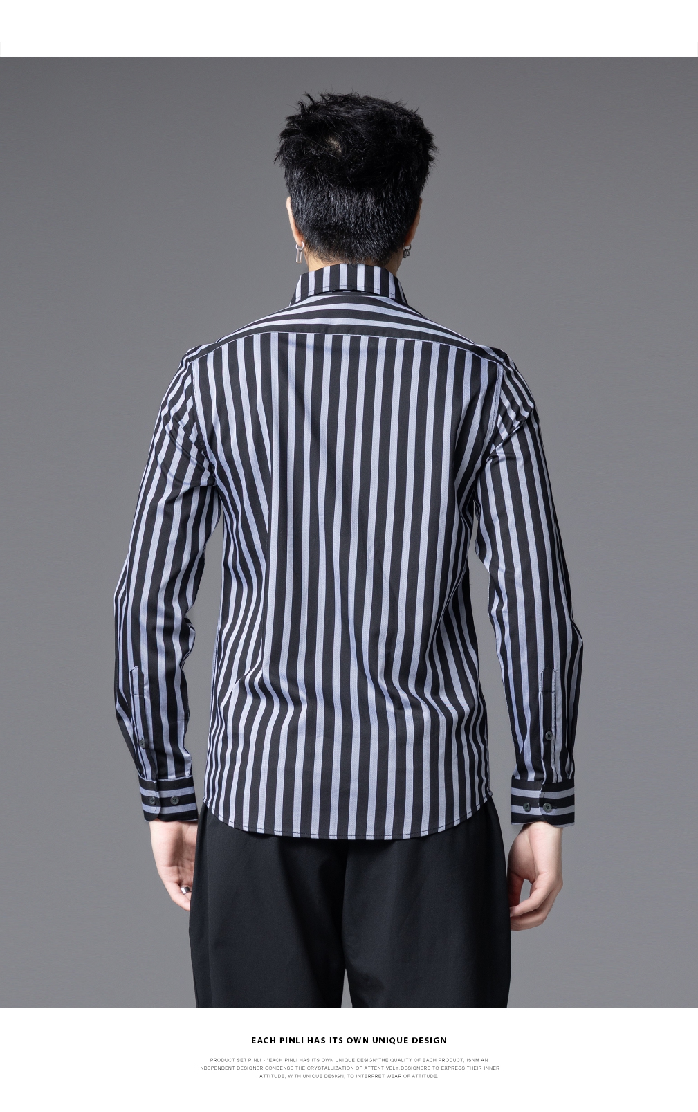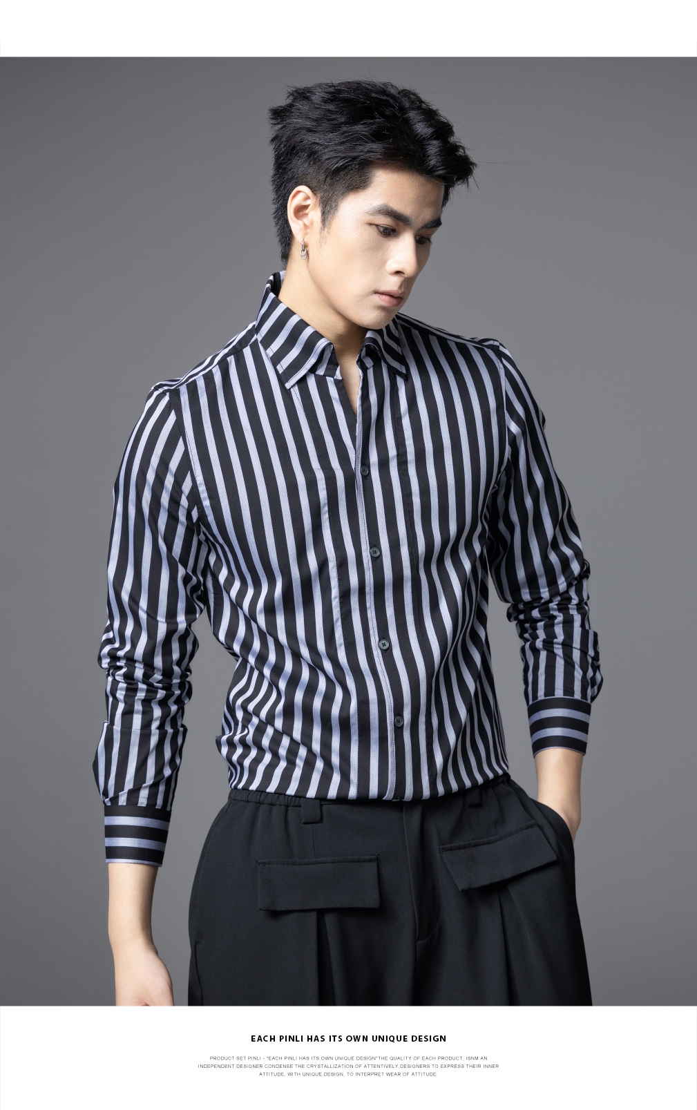 PINLI品立2025秋季新款修身尖领条纹长袖衬衫男商务休闲打底衬衣GD253113059