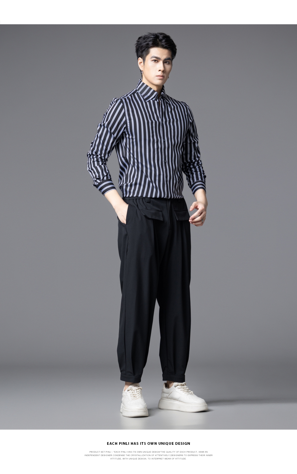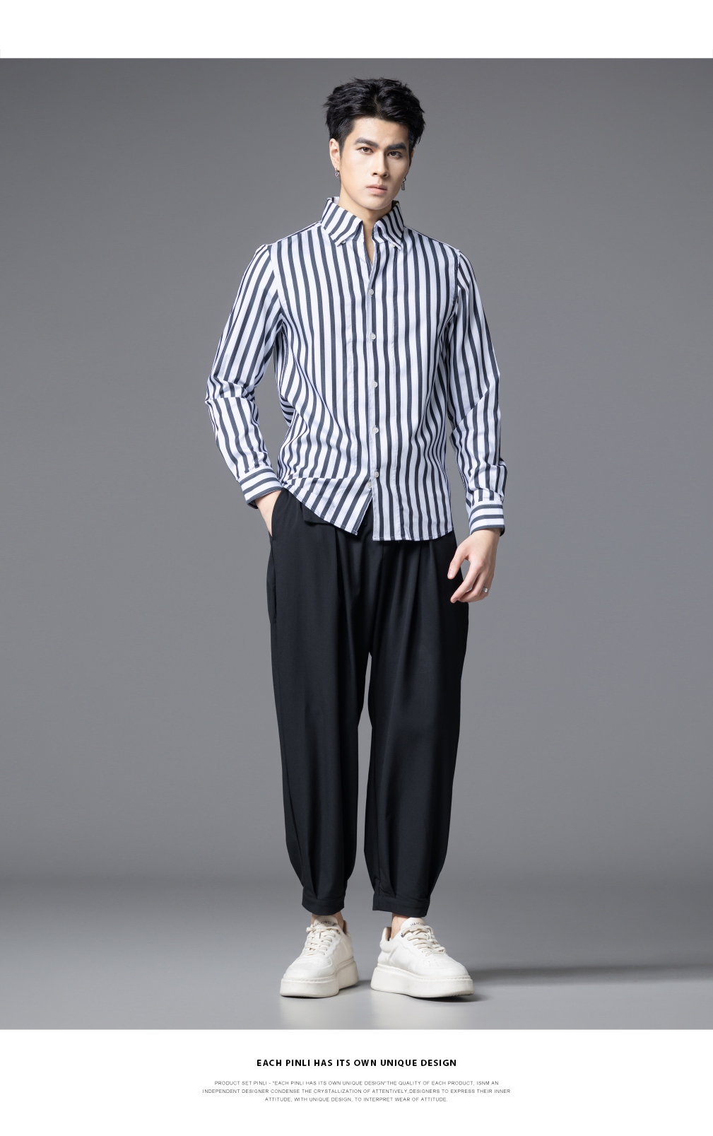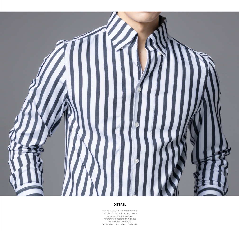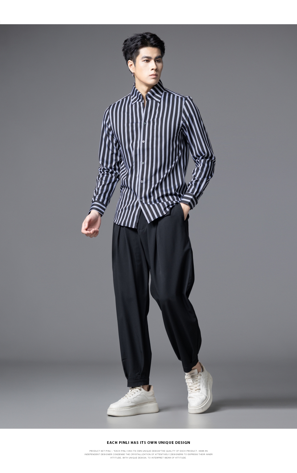 PINLI品立2025秋季新款修身尖领条纹长袖衬衫男商务休闲打底衬衣GD253113059