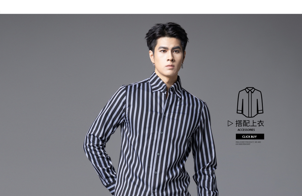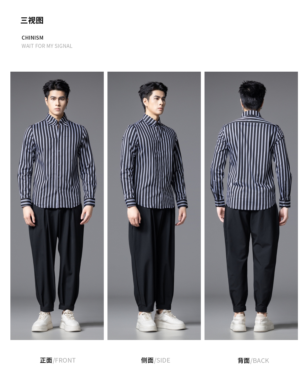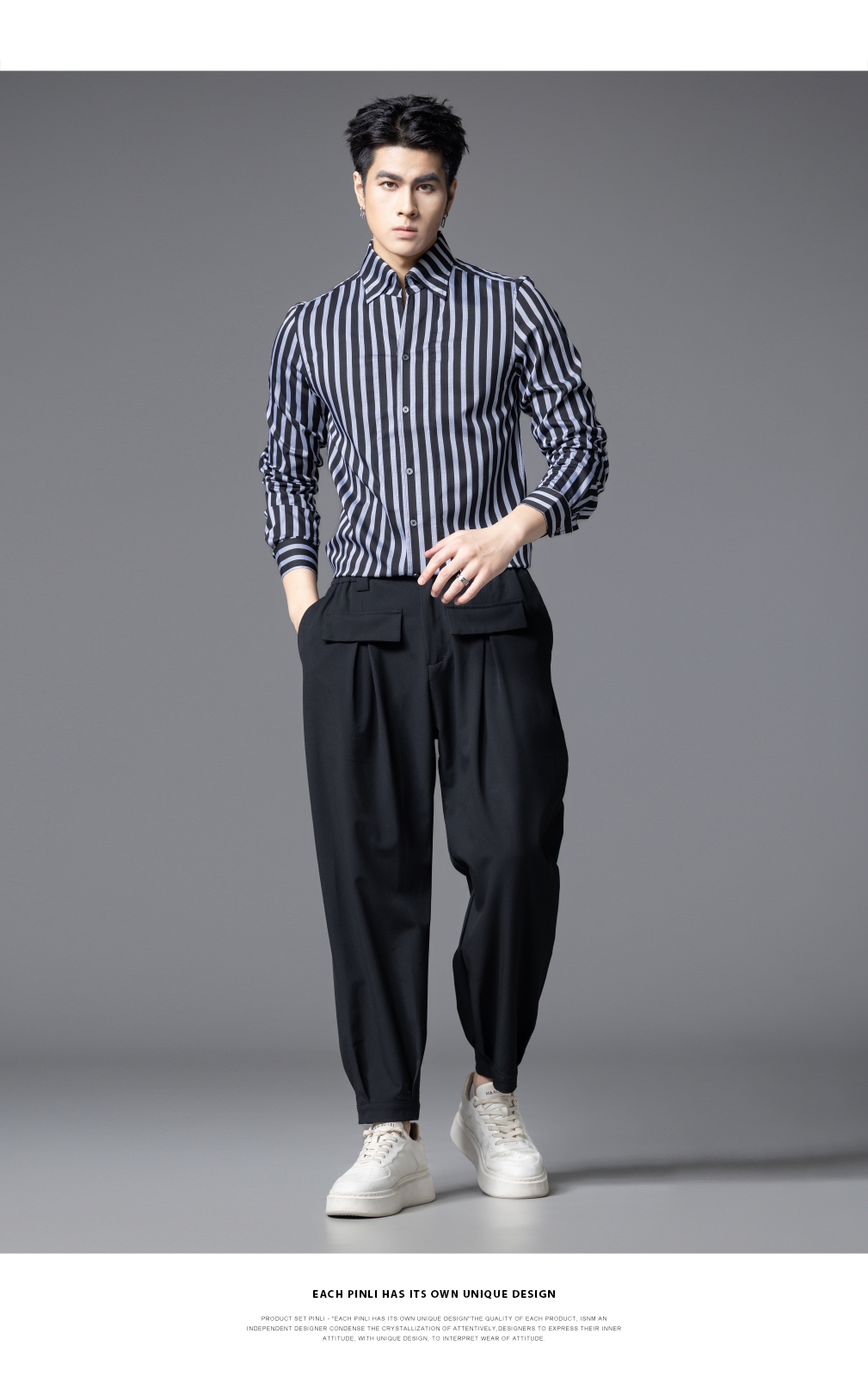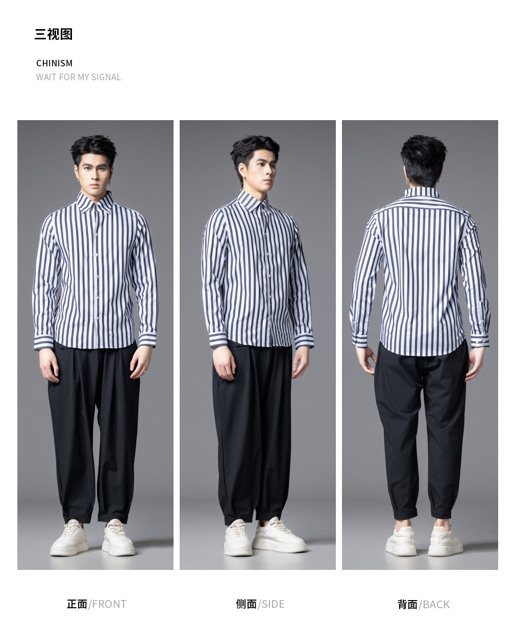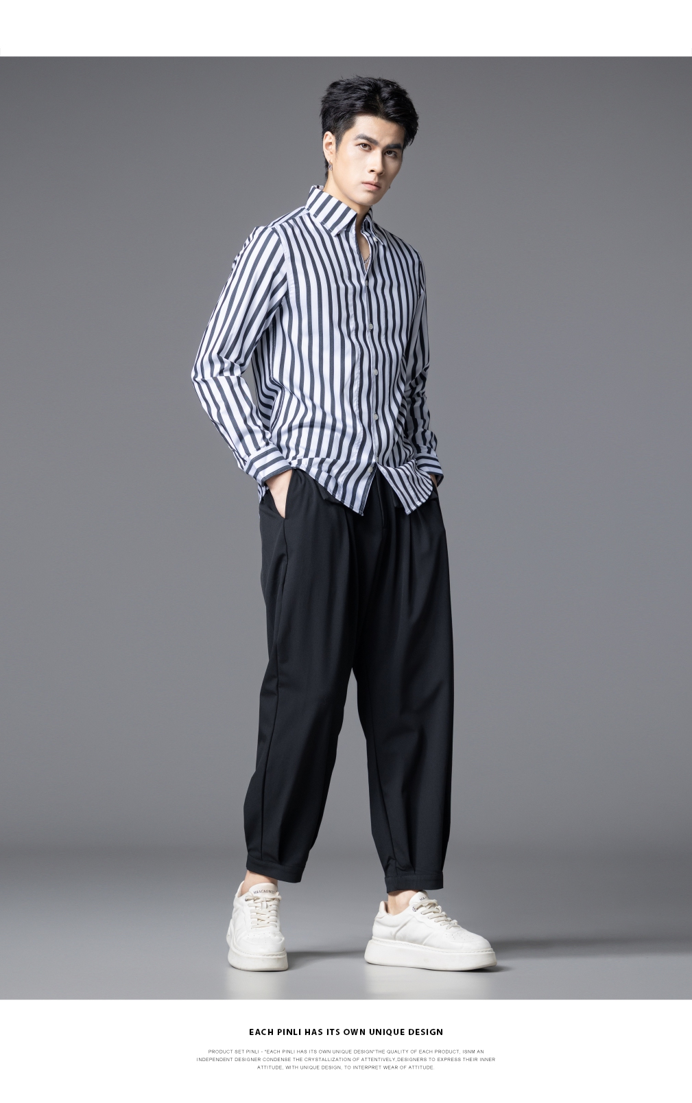 PINLI品立2025秋季新款修身尖领条纹长袖衬衫男商务休闲打底衬衣GD253113059