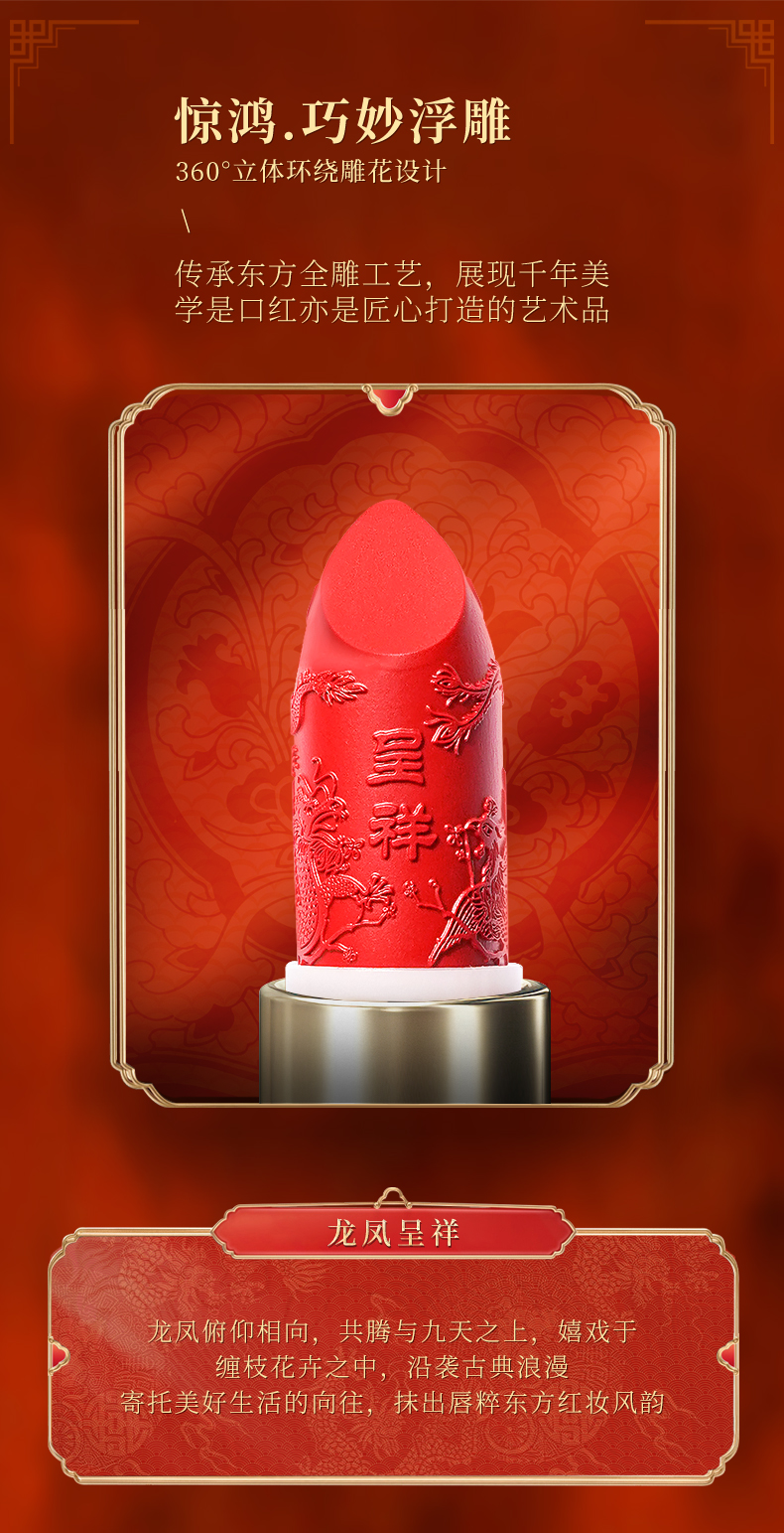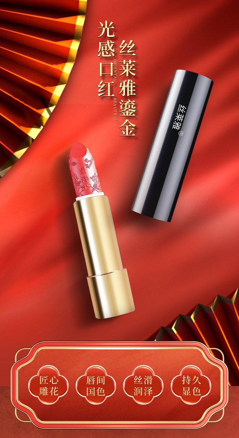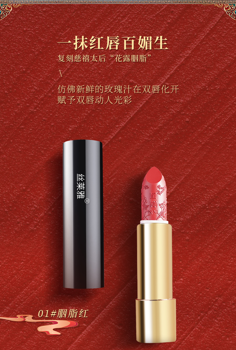 【自营】丝莱雅 鎏金光感口红胭脂红 龙凤呈祥复古雕花