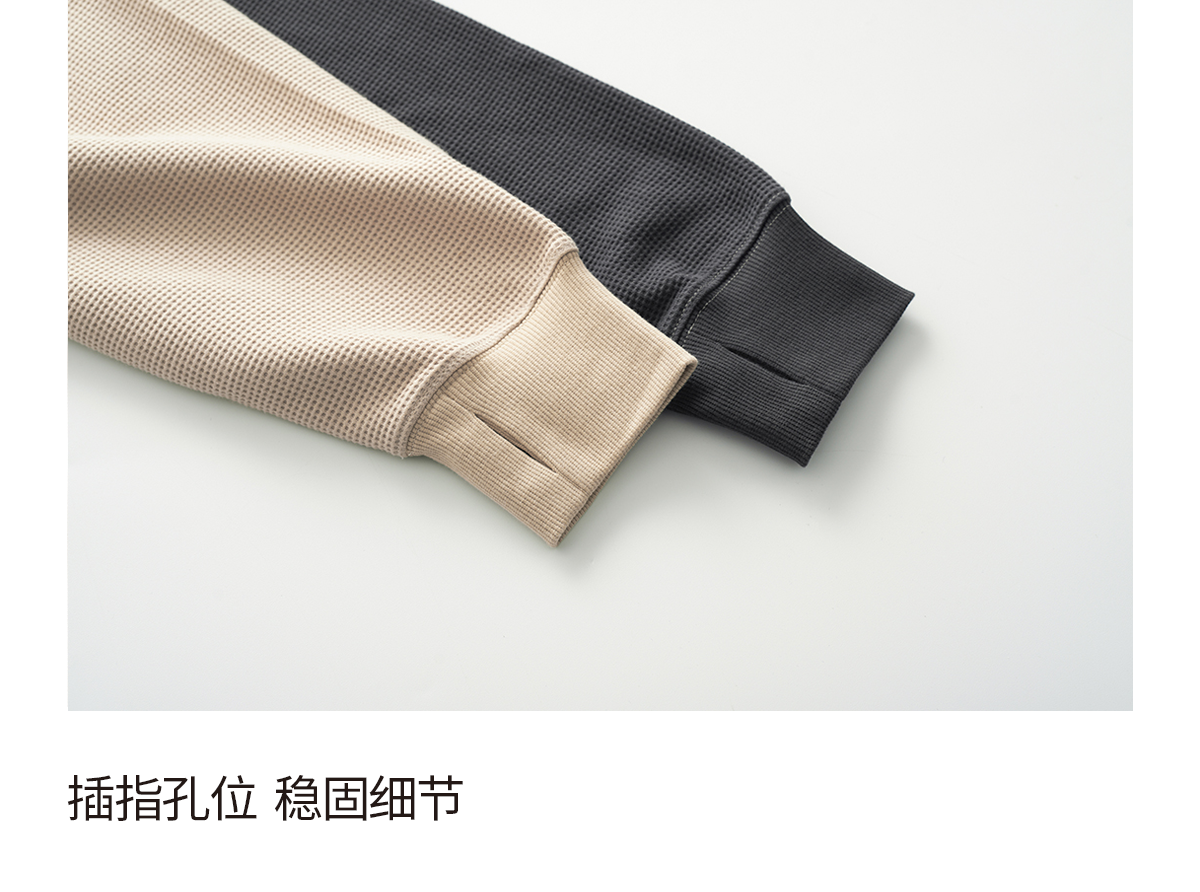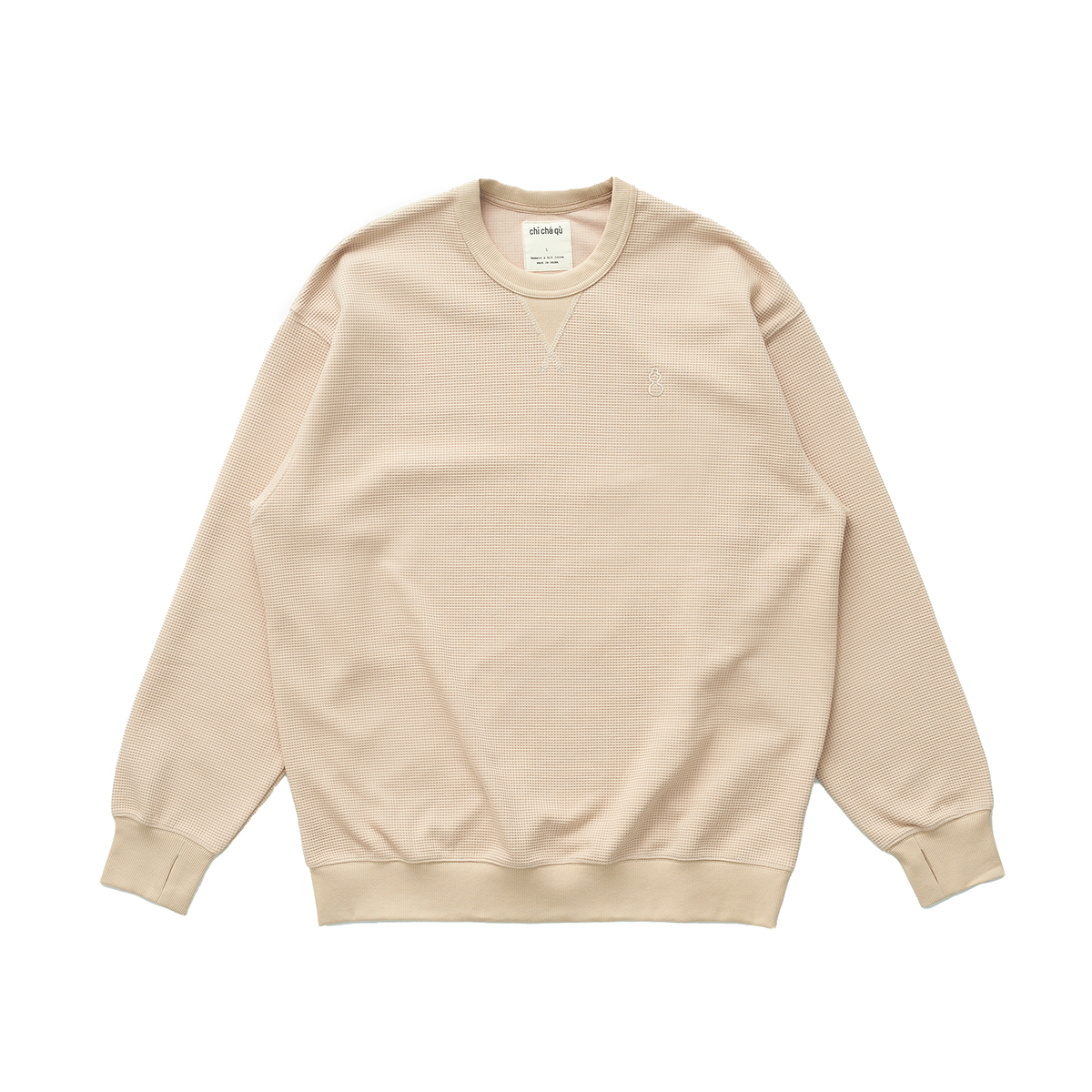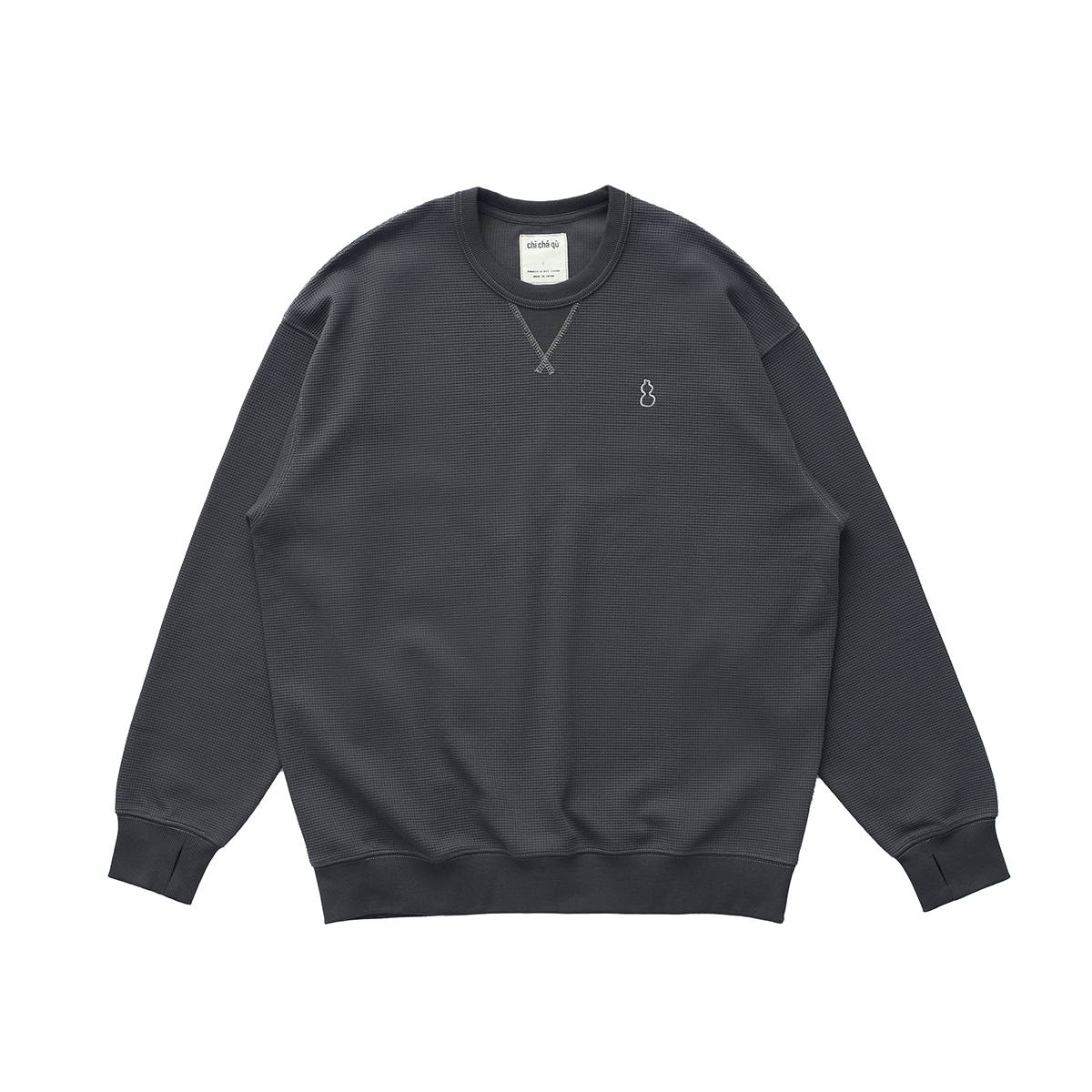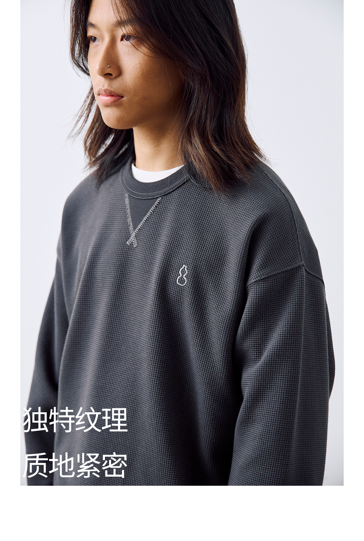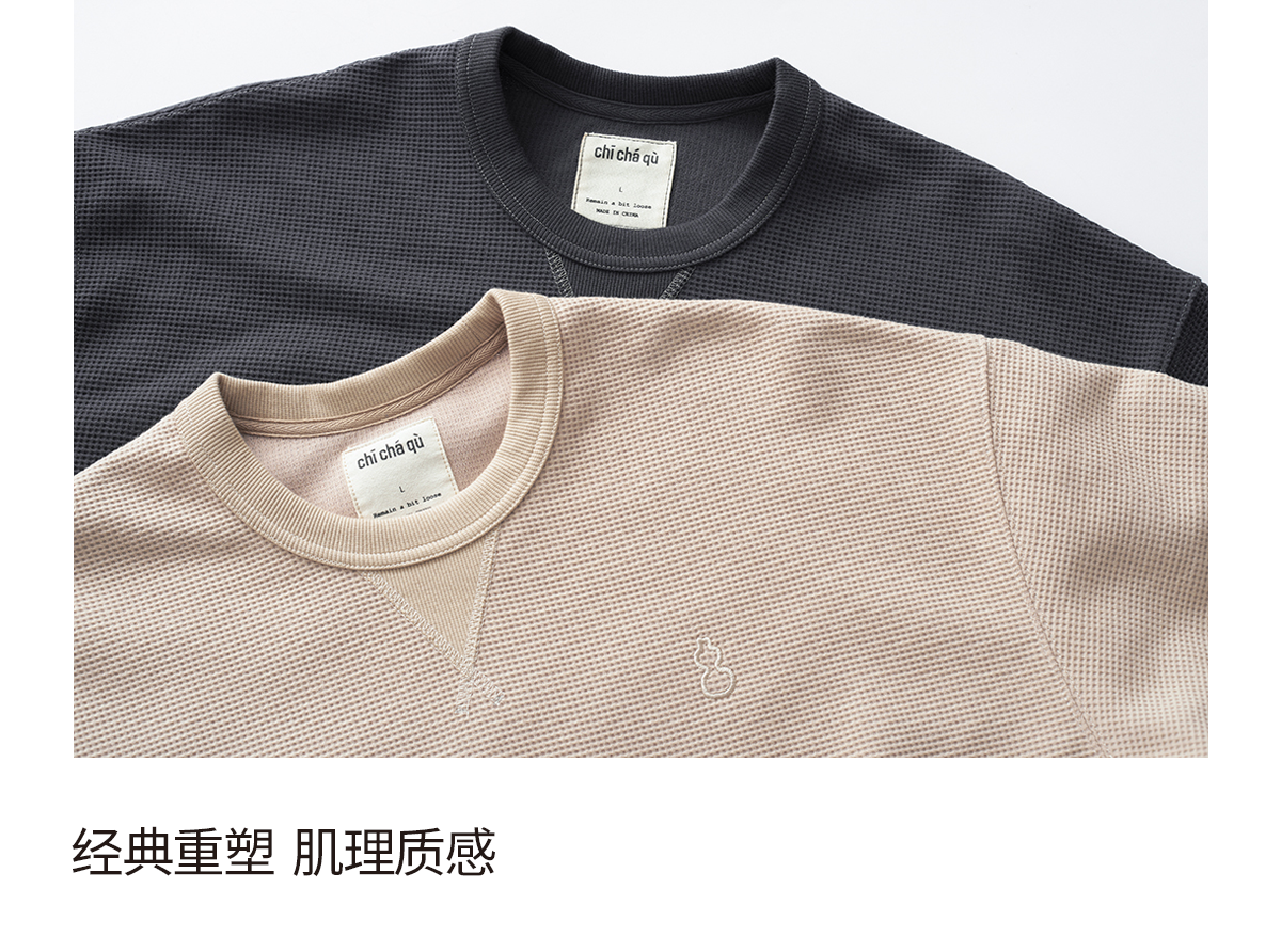 吃茶去chichaqu2024宽松复古华夫格刺绣圆领卫衣休闲运动百搭