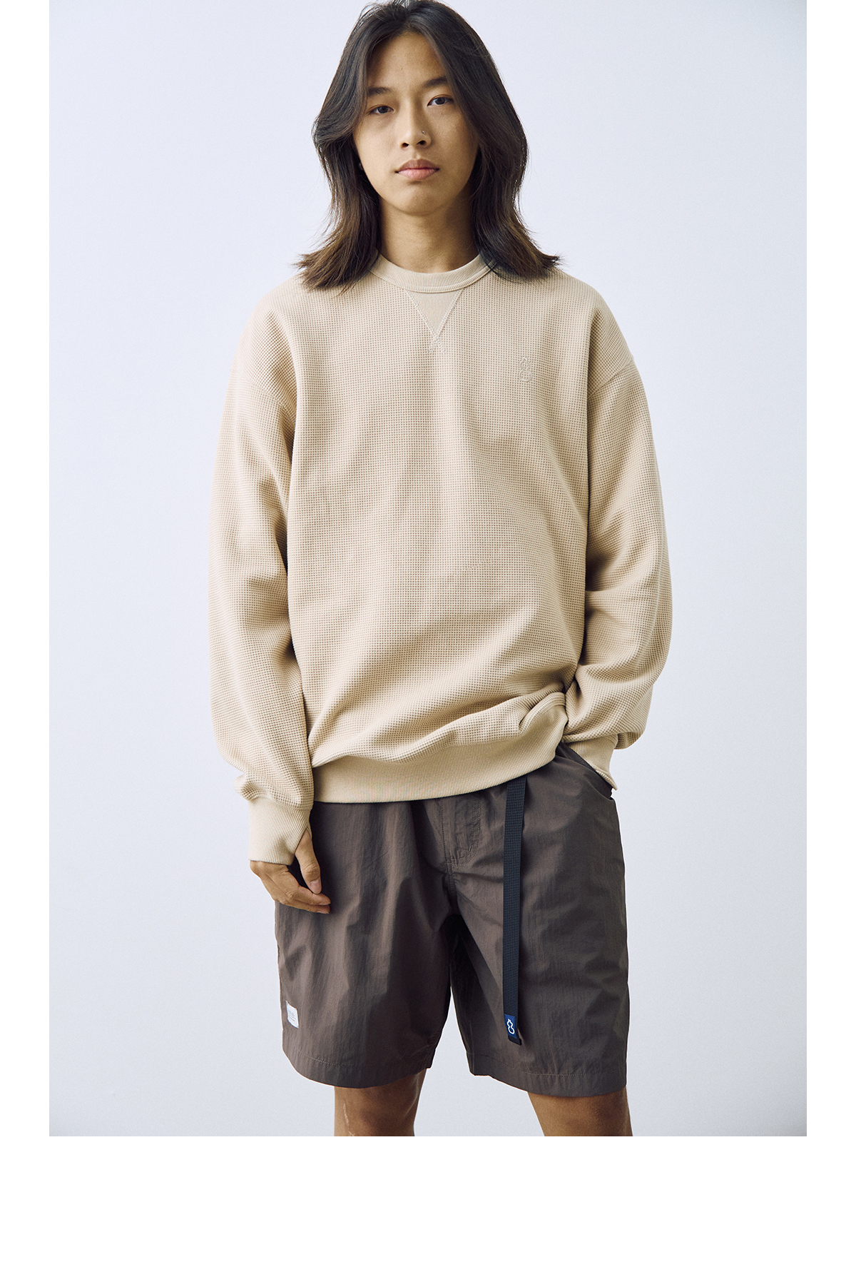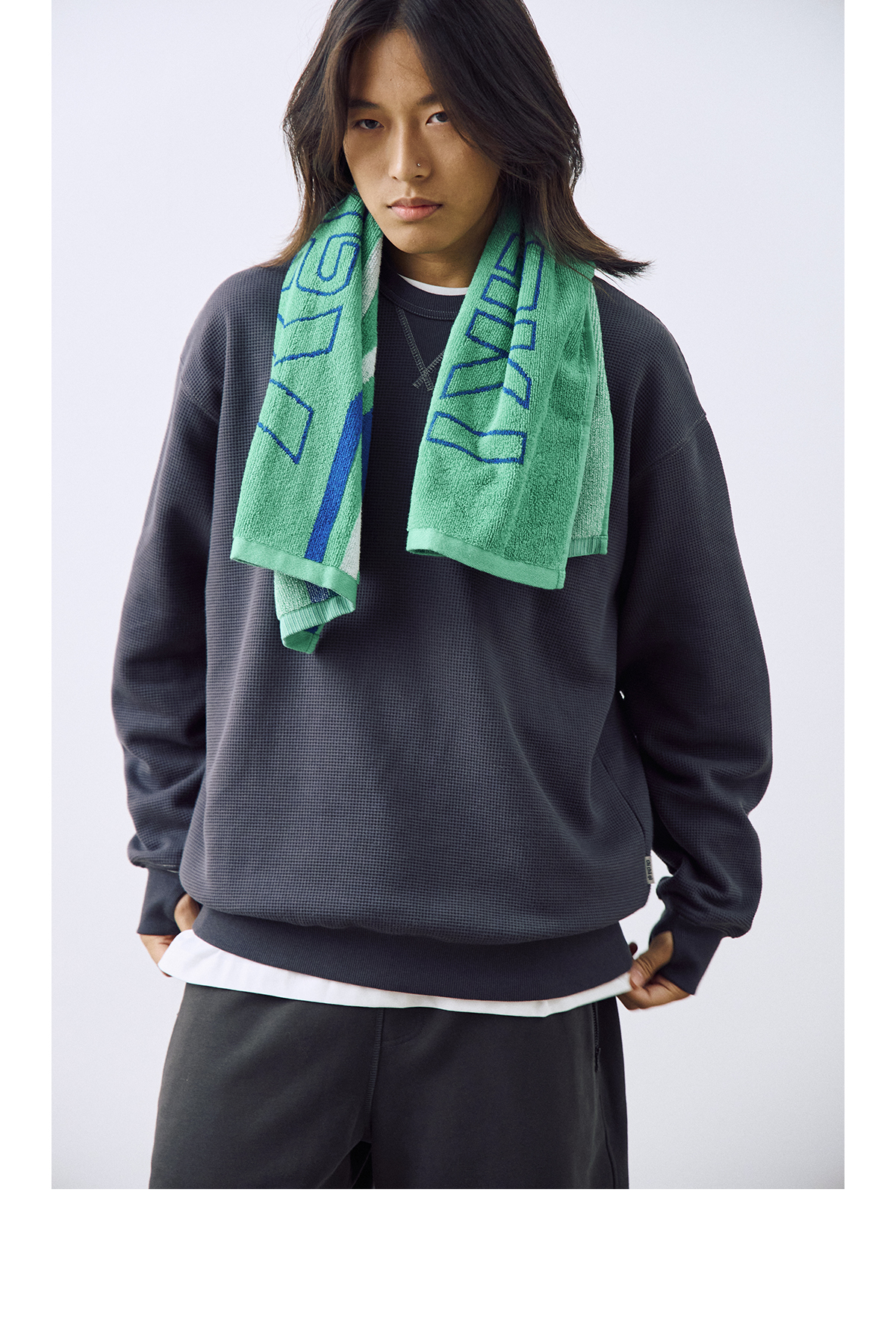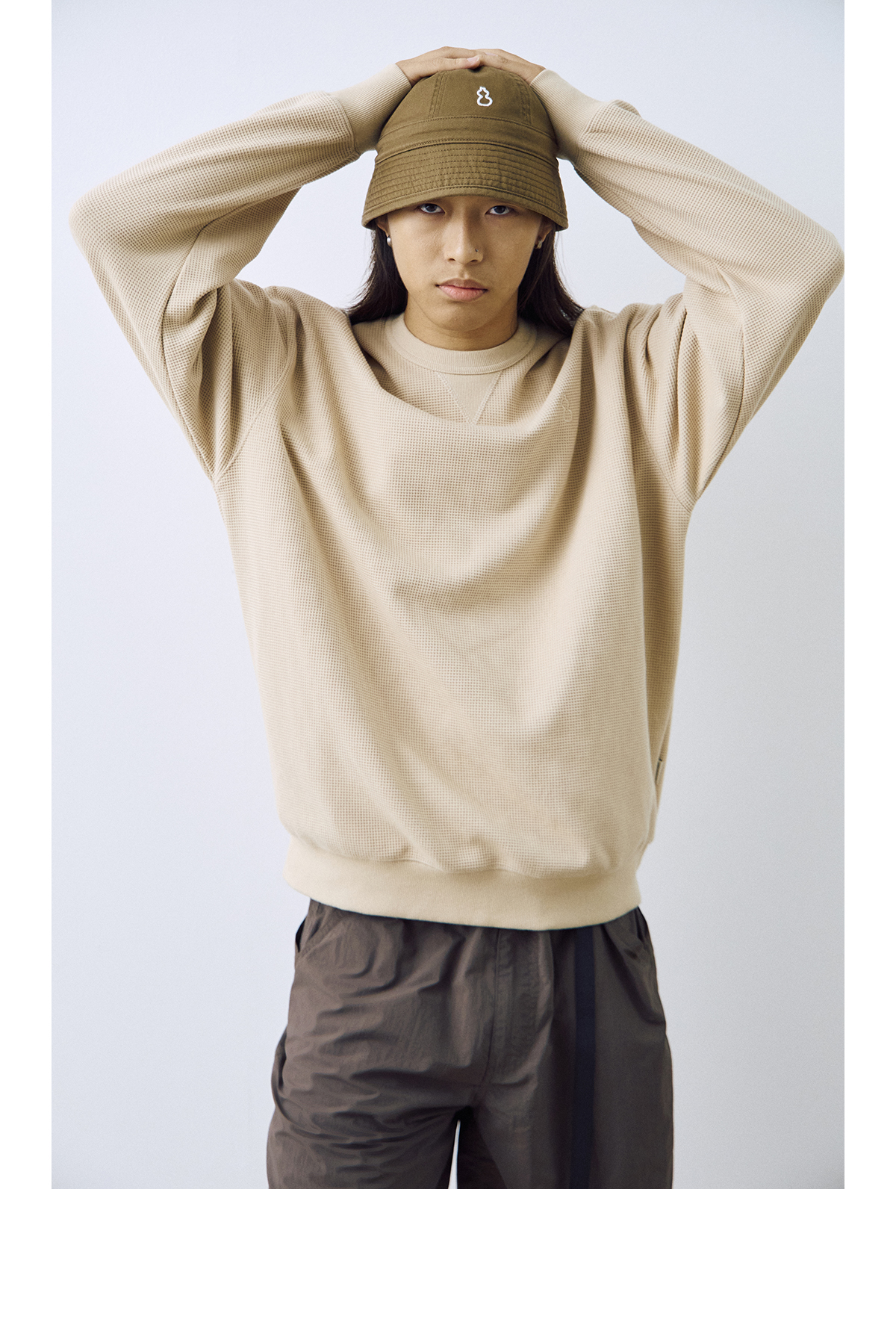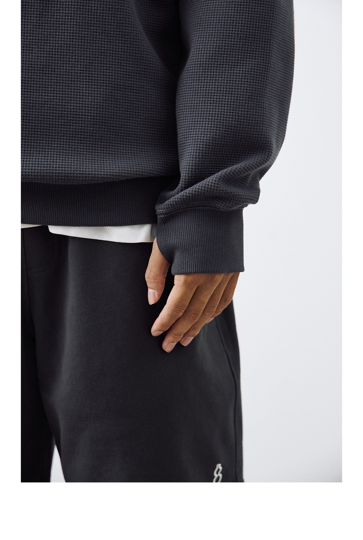 吃茶去chichaqu2024宽松复古华夫格刺绣圆领卫衣休闲运动百搭