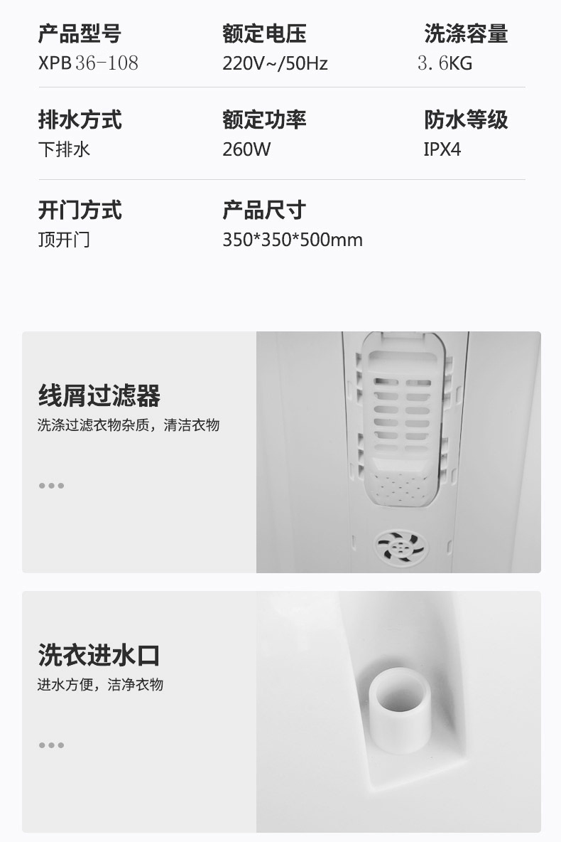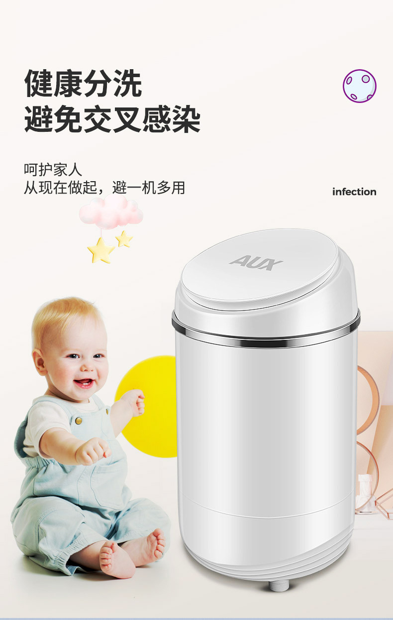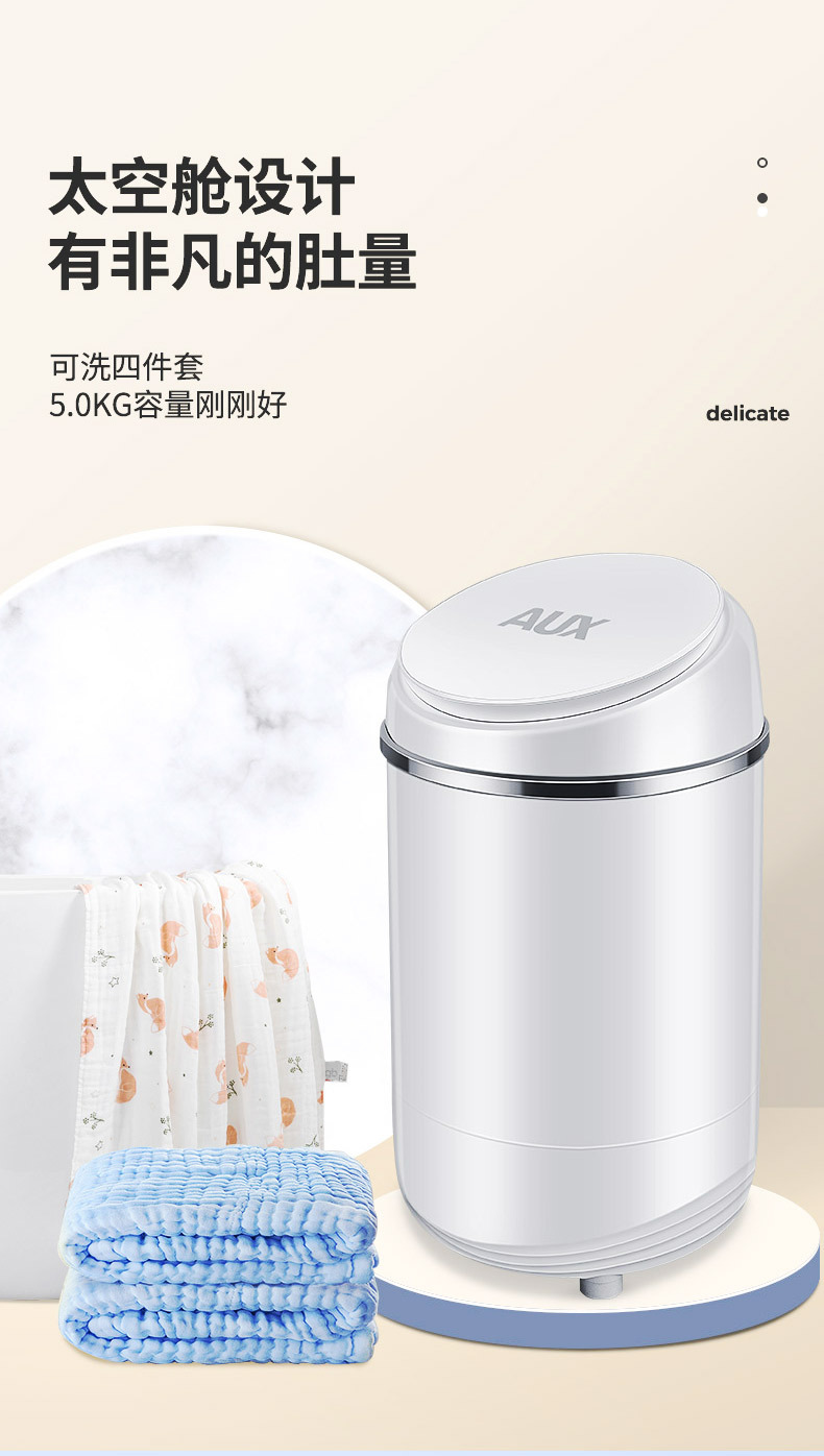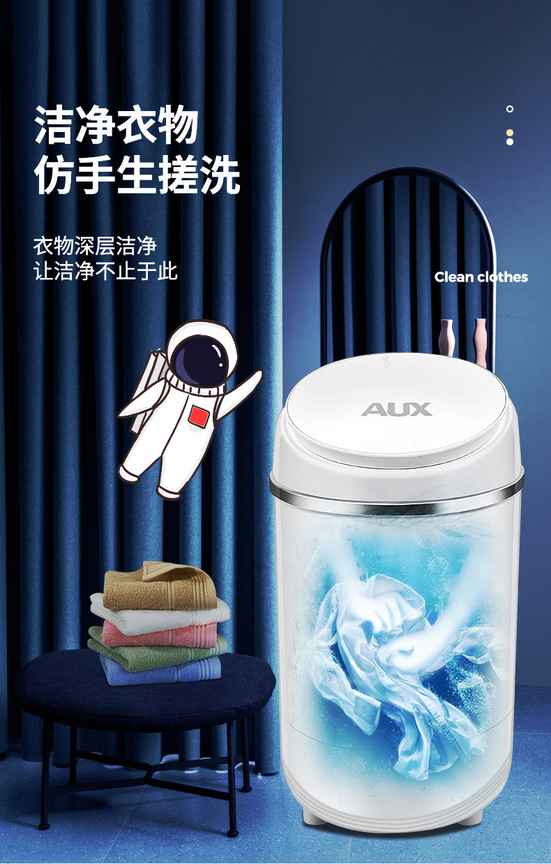 奥克斯小型家用半自动洗脱一体宿舍宝宝婴儿童衣物专用迷你洗衣机