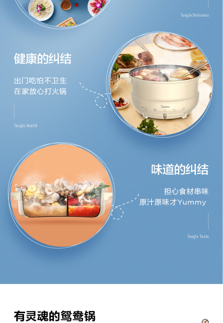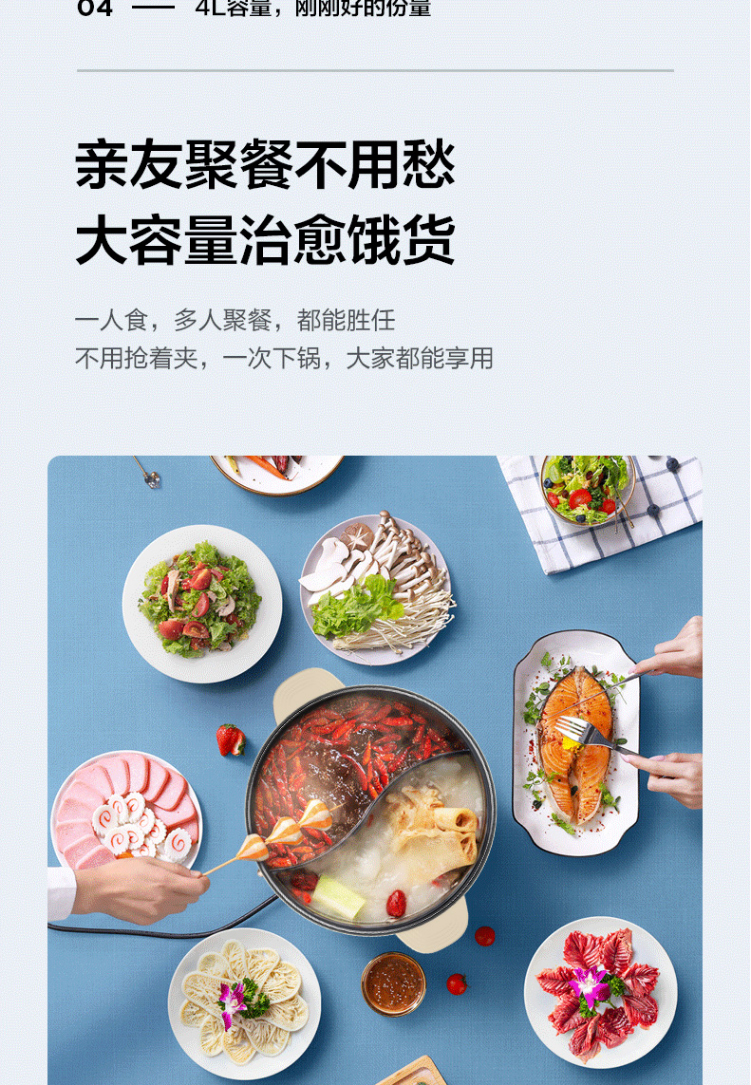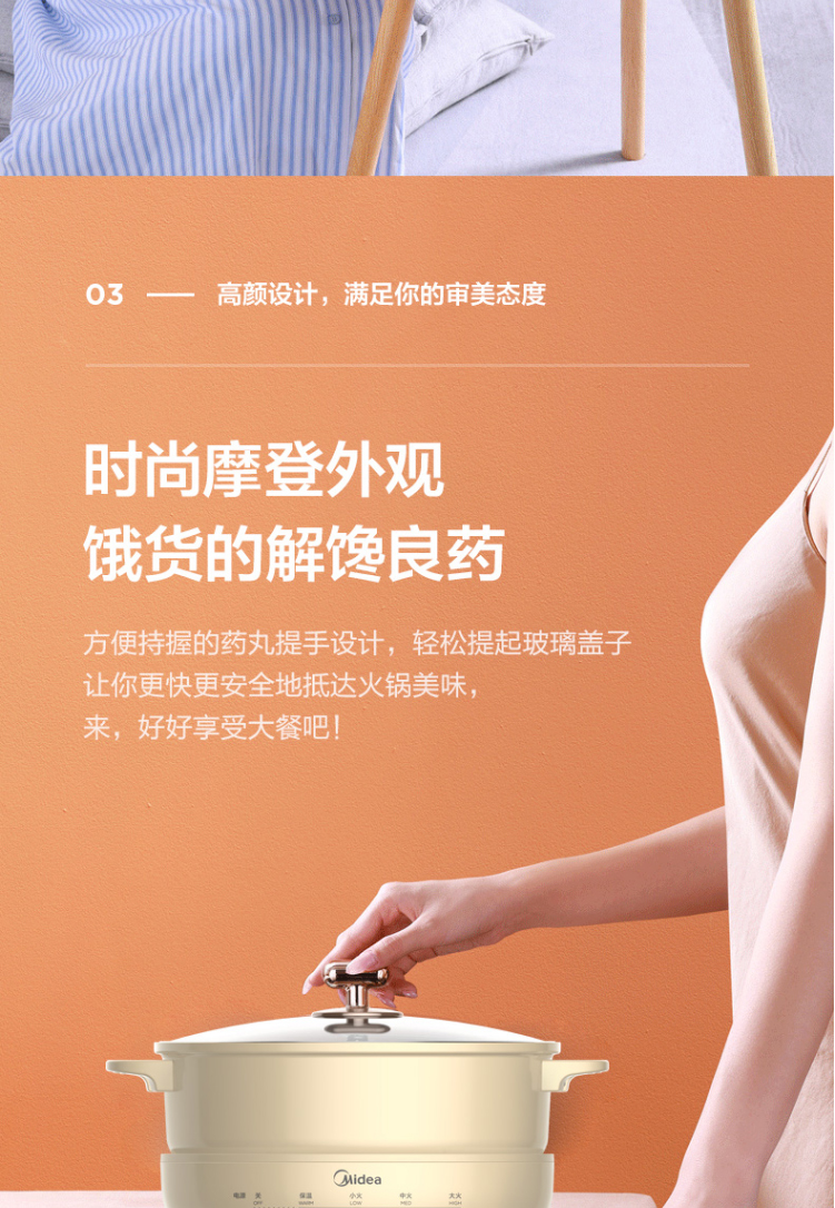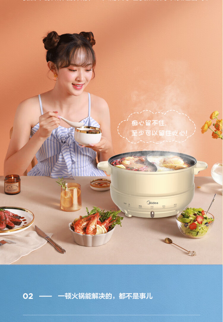 美的电火锅鸳鸯锅电热锅保温分离式家用4L不粘锅DH2602Y联保可换锅MC-DY26P402 浅黄色