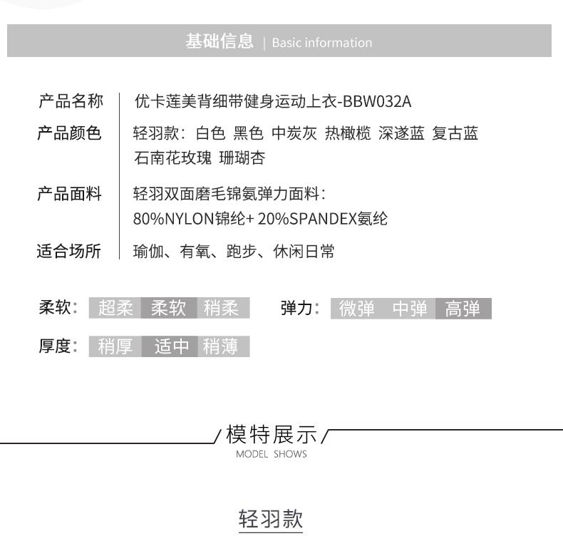 优卡莲轻羽BBW032A瑜伽薄款健身运动背心秋细带上衣贴合防震胸垫