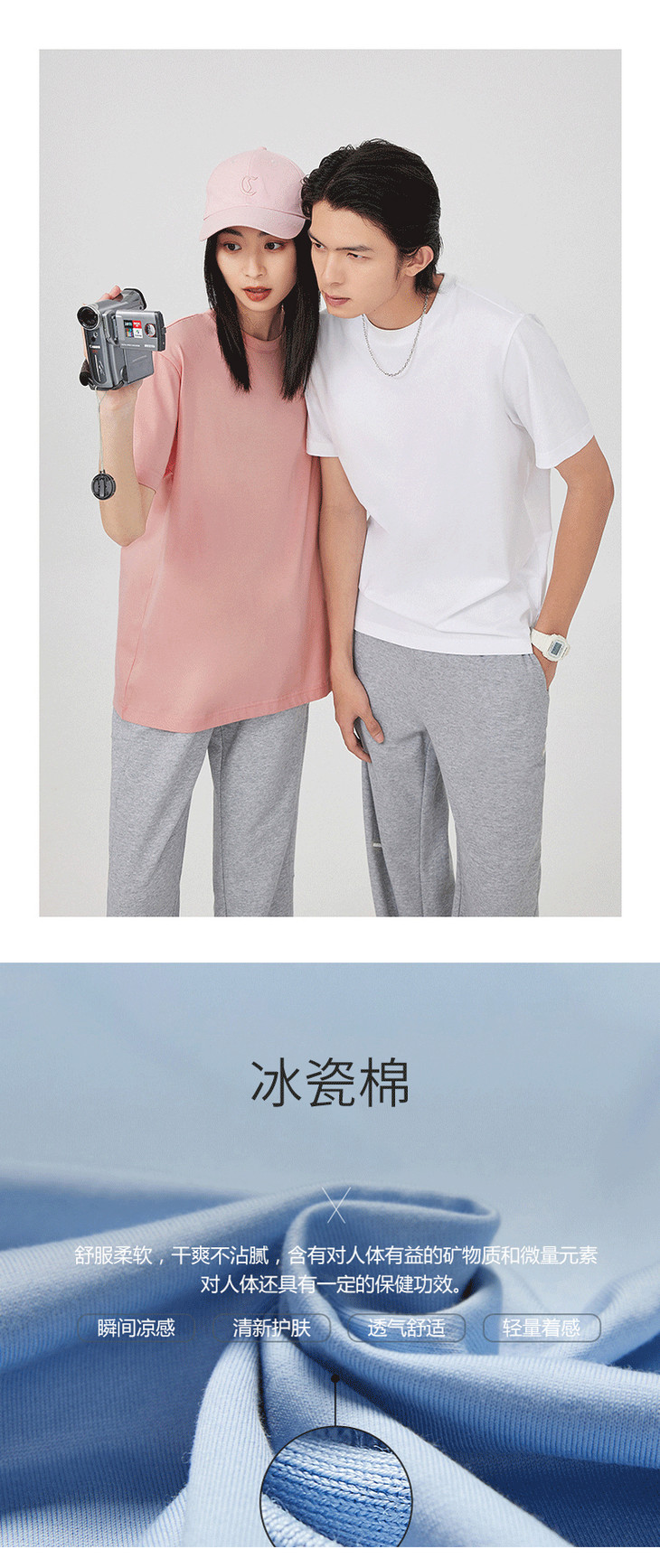 夏季新品男女情侣款亲水冰瓷棉短袖T恤