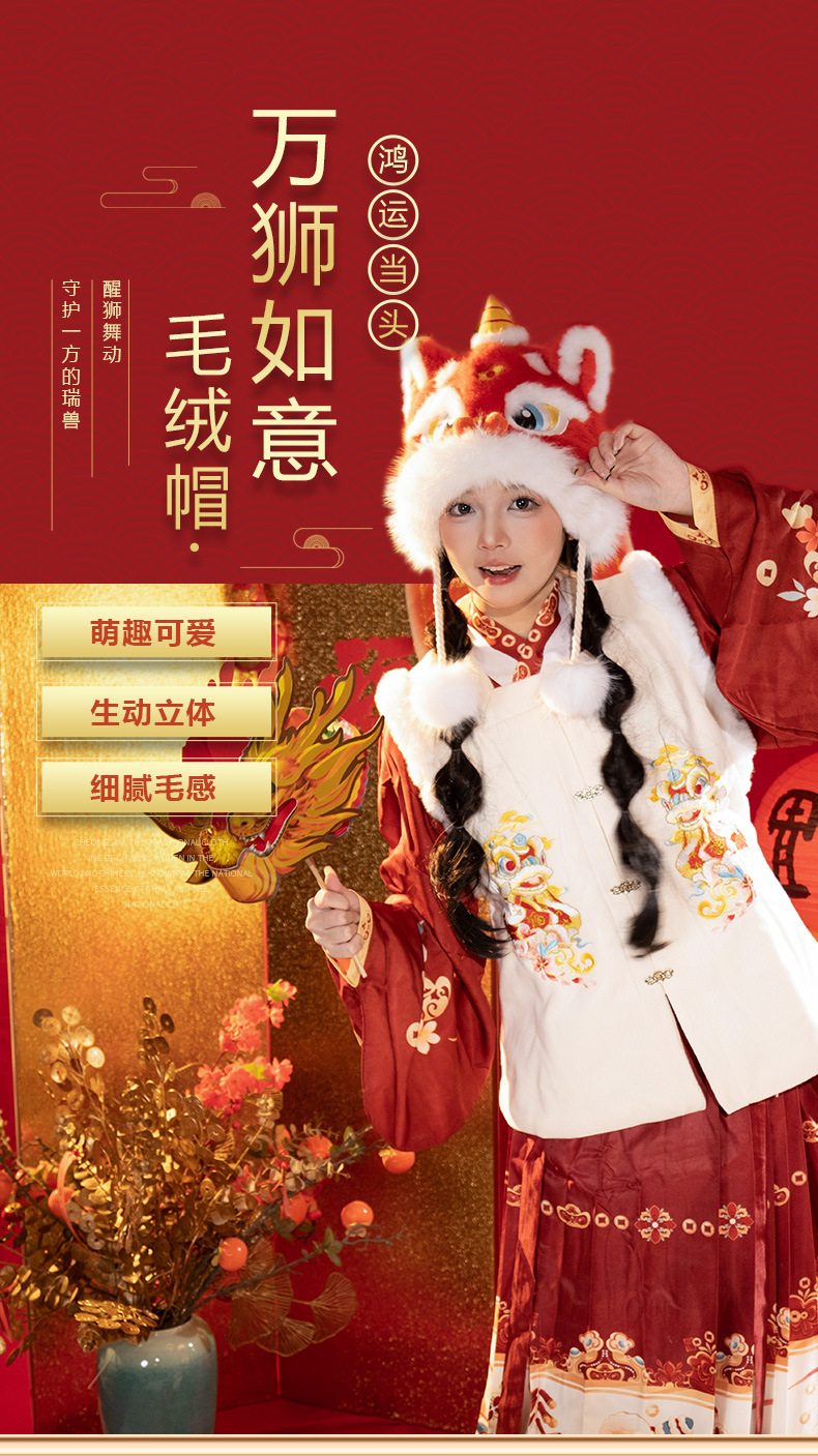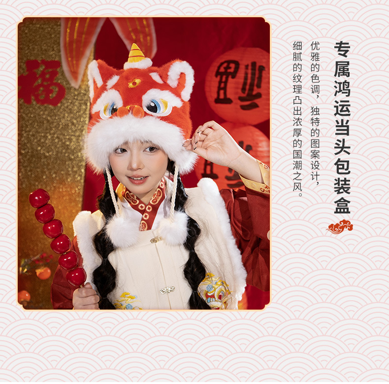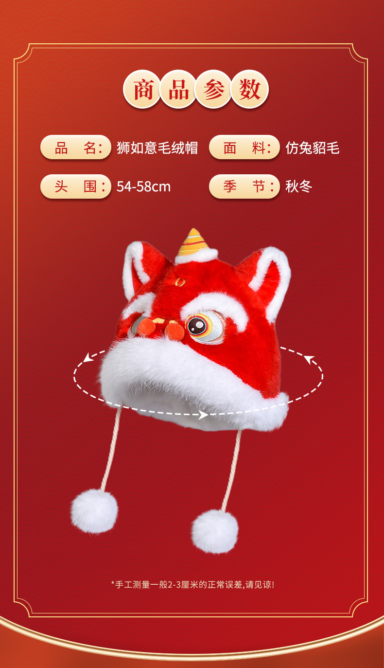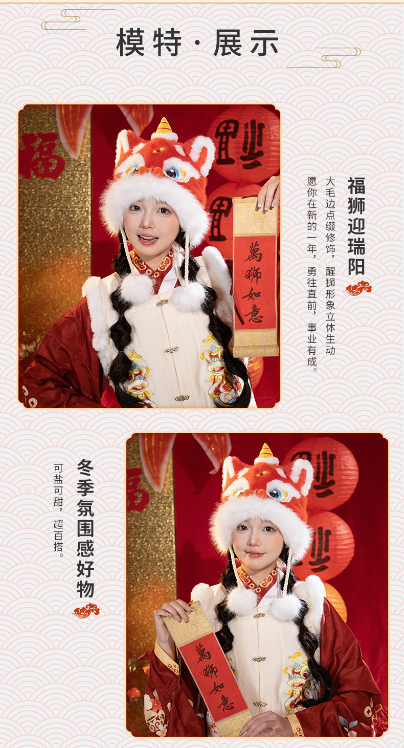 【鸿运当头❗️新年毛绒醒狮帽】春节就要戴新帽,马年秋冬女保暖帽子红色可爱虎头帽卡通龙头雷锋帽年货围巾