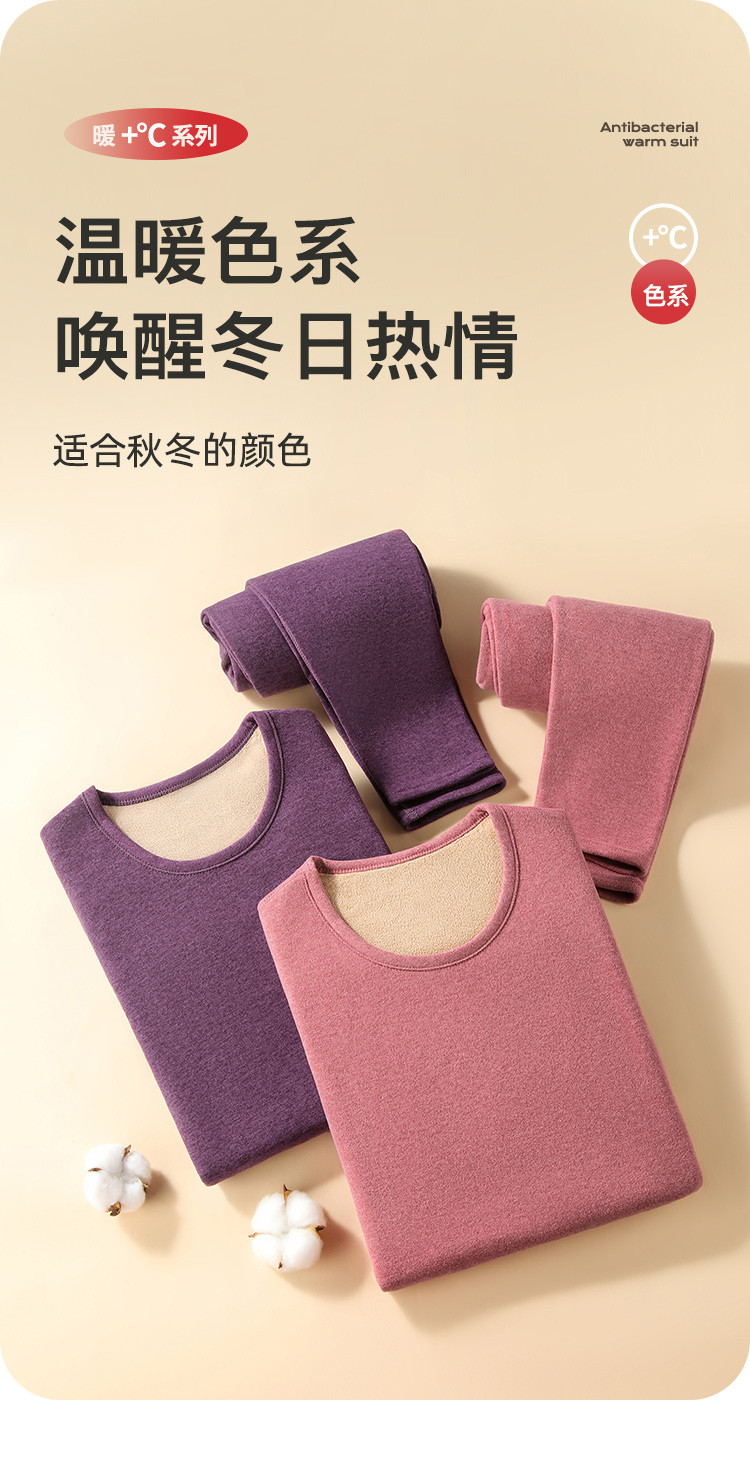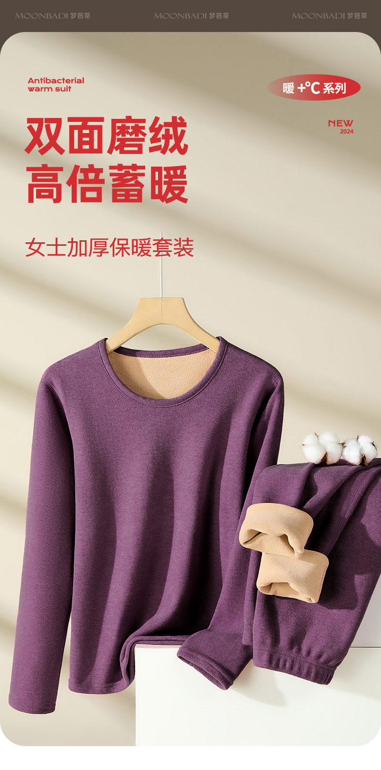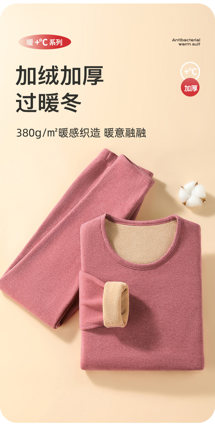 【双面暖绒】380g加厚女士保暖内衣套装秋衣秋裤女无痕圆领女士奥利保暖套装