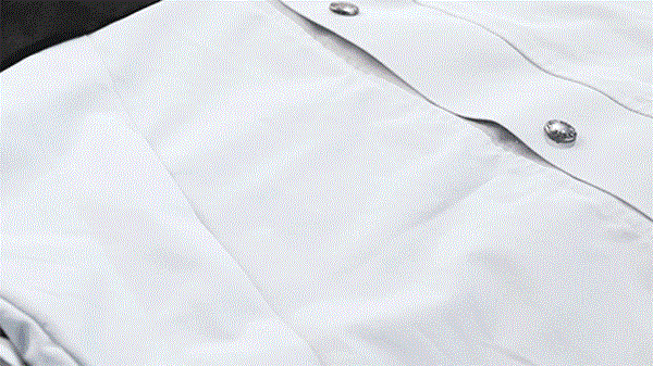而北面采用的GORE-TEX 面料,表面分布着无数个微孔,孔径比液态水滴小20000倍,可以让水分凝聚成珠,从衣物上滚落。