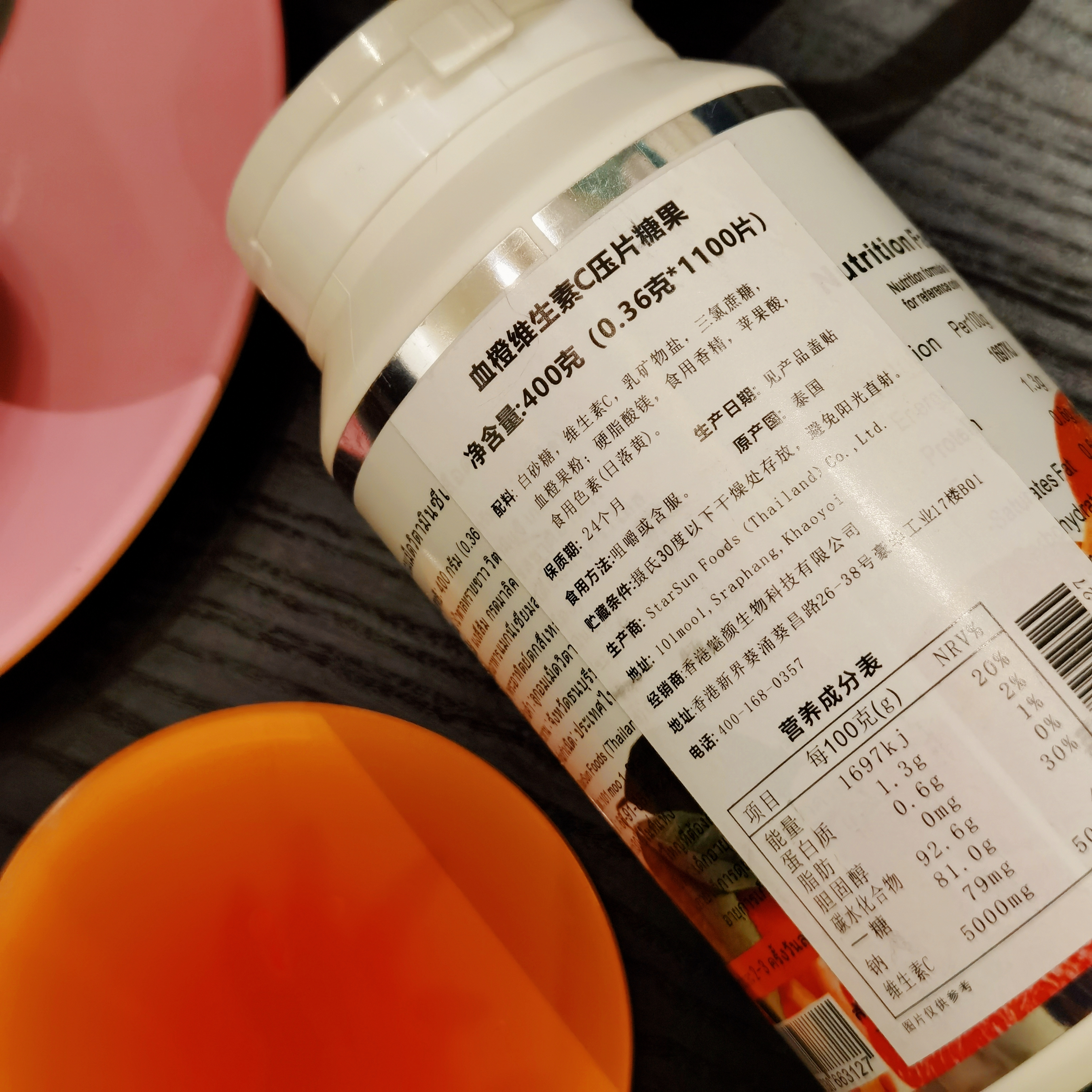 [屁侠推荐]泰国进口 酸甜口感 高浓度 血橙维生素C 压片糖果 VC片 1100片/瓶