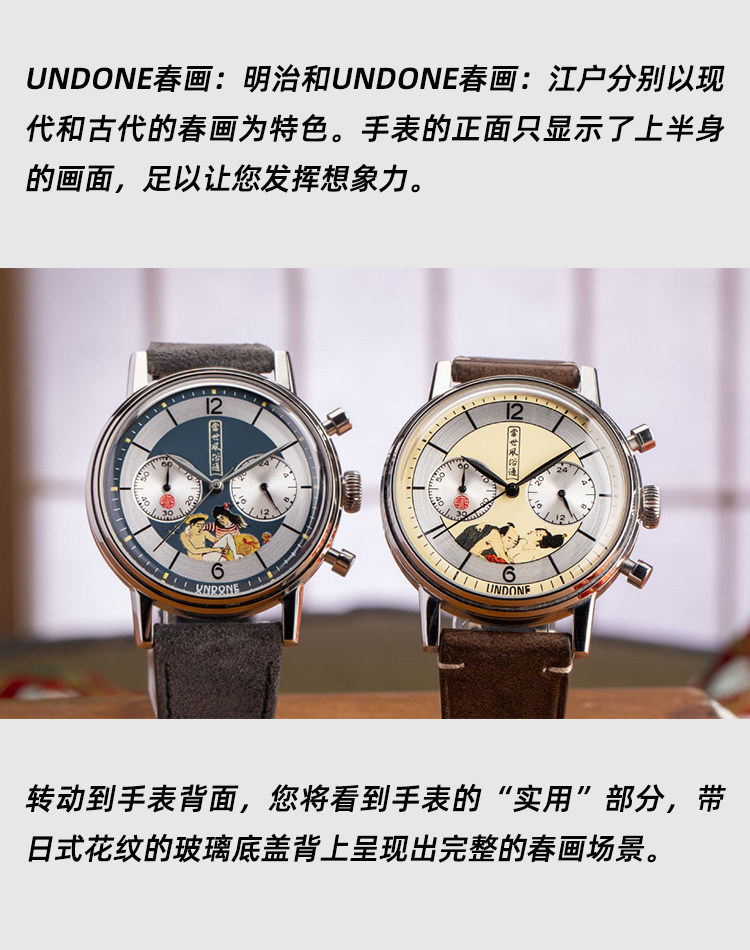 现货UNDONE春画石英计时手表Shunga联名限量版皮带防水复古小众